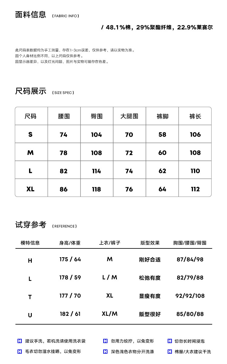 | 材質成分 | 棉48.1% 聚酯纖維29% 萊賽爾纖維(萊賽爾)22.9% |