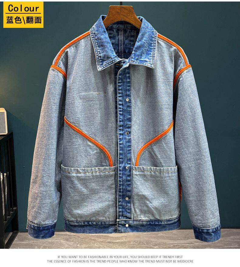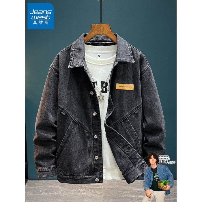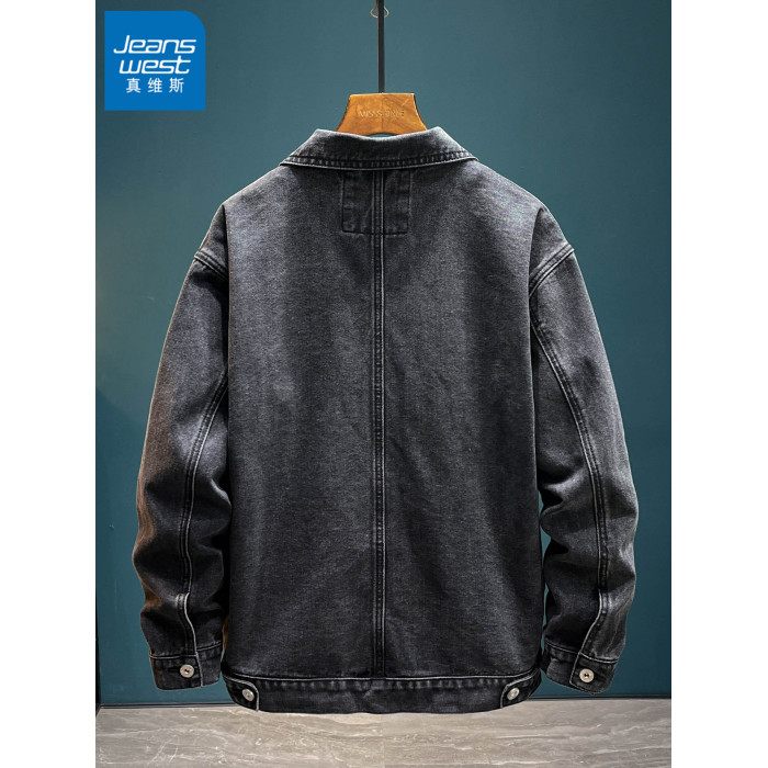 真維斯加絨牛仔夾克男秋冬2025新款潮流休閒上衣百搭男士工裝外套