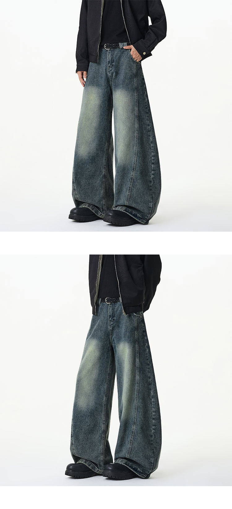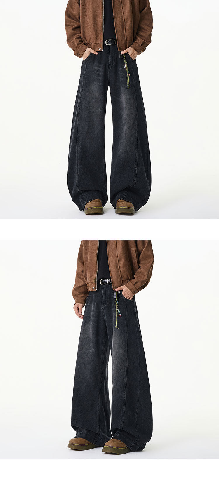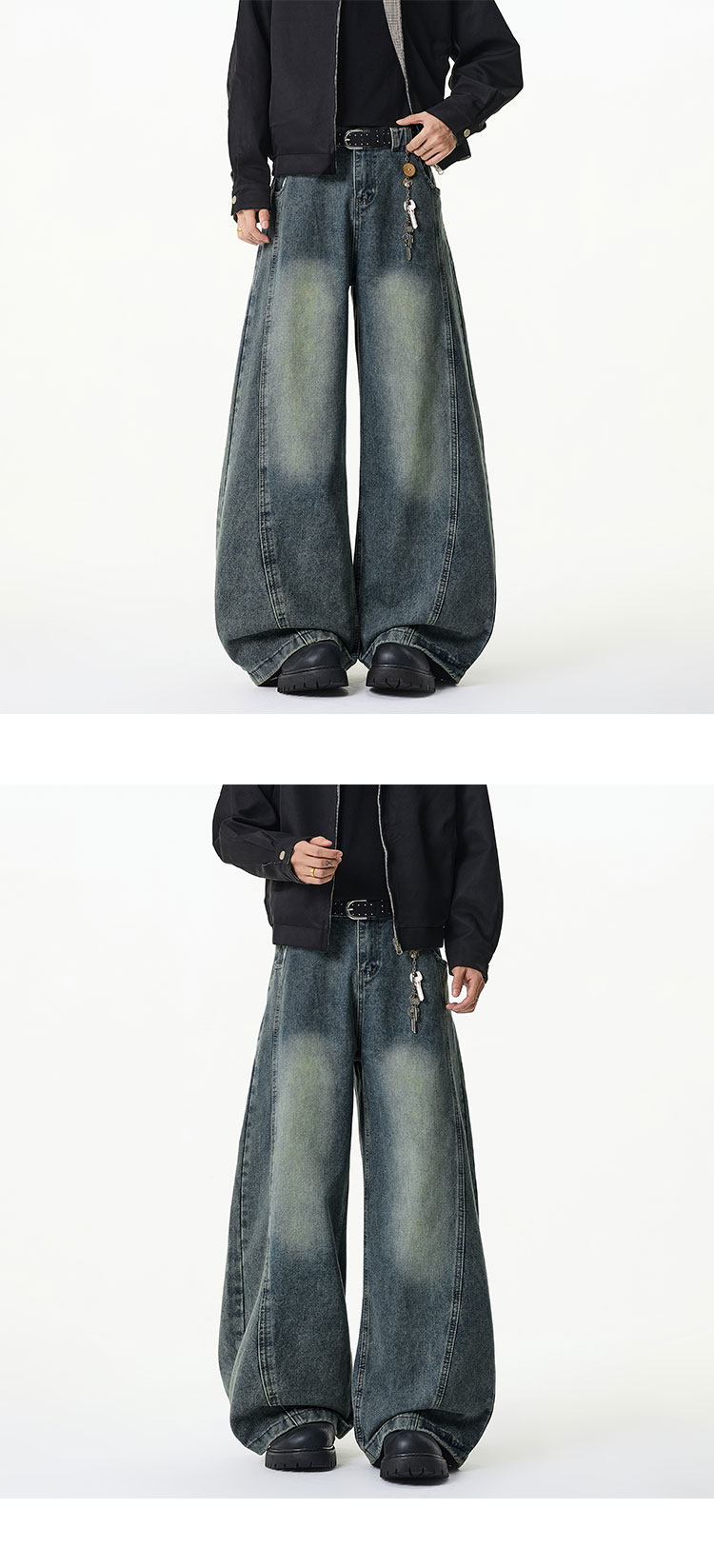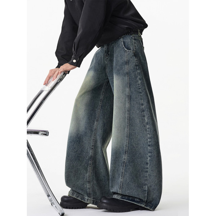 濶腿牛仔褲男士春秋款美式復古大碼長褲寬鬆直筒男生水洗工裝褲子