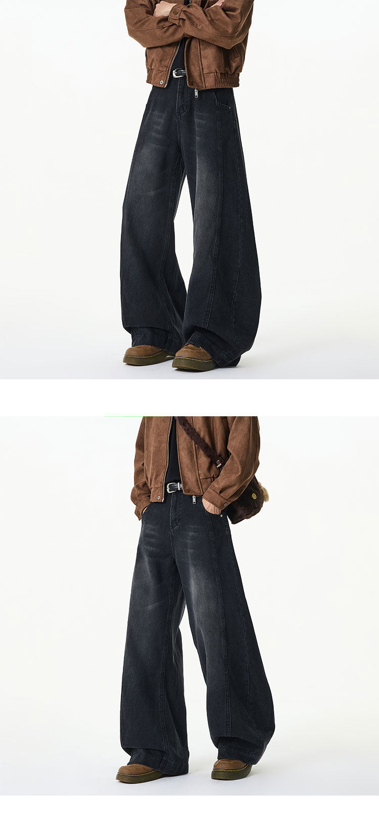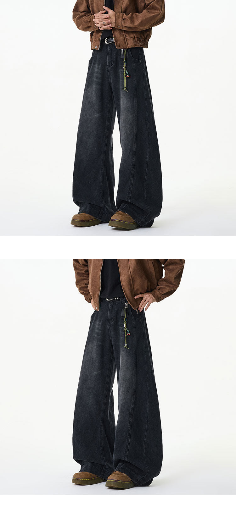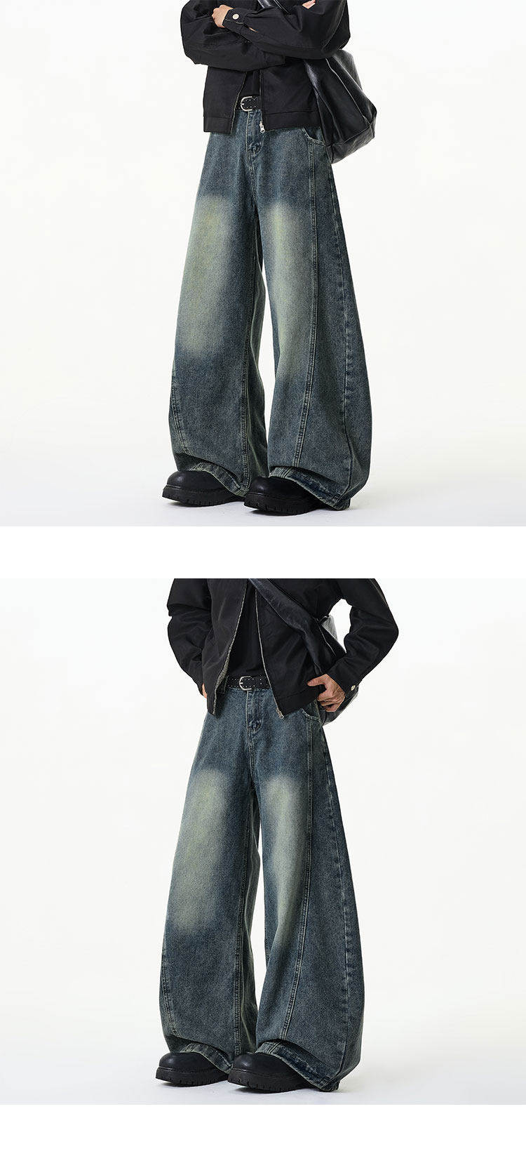 濶腿牛仔褲男士春秋款美式復古大碼長褲寬鬆直筒男生水洗工裝褲子