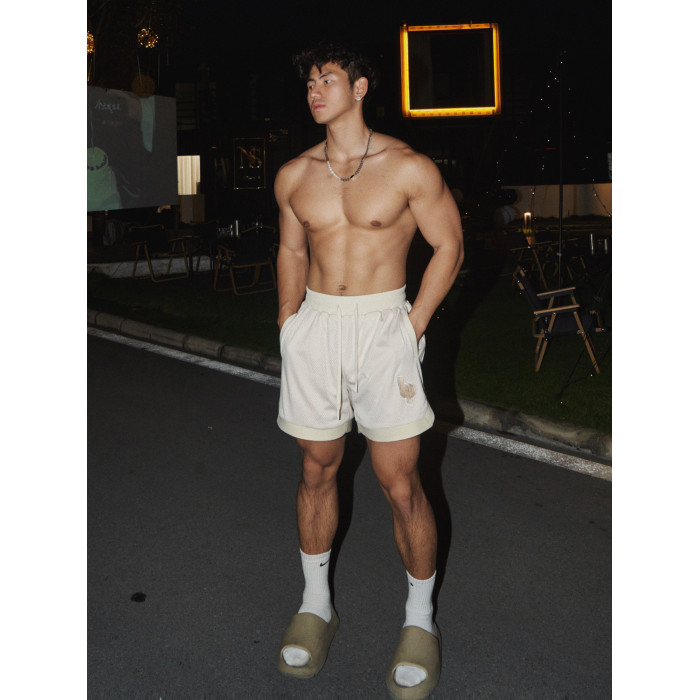lil monster 夏季網眼綉花短褲美式復古雙層重磅寬鬆高街情侶運動