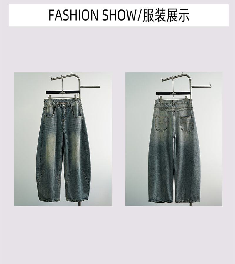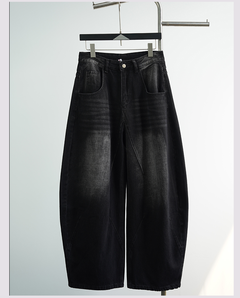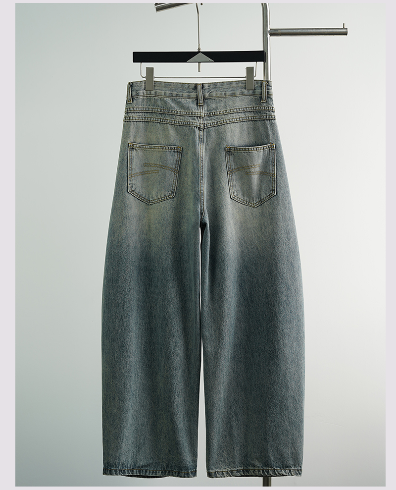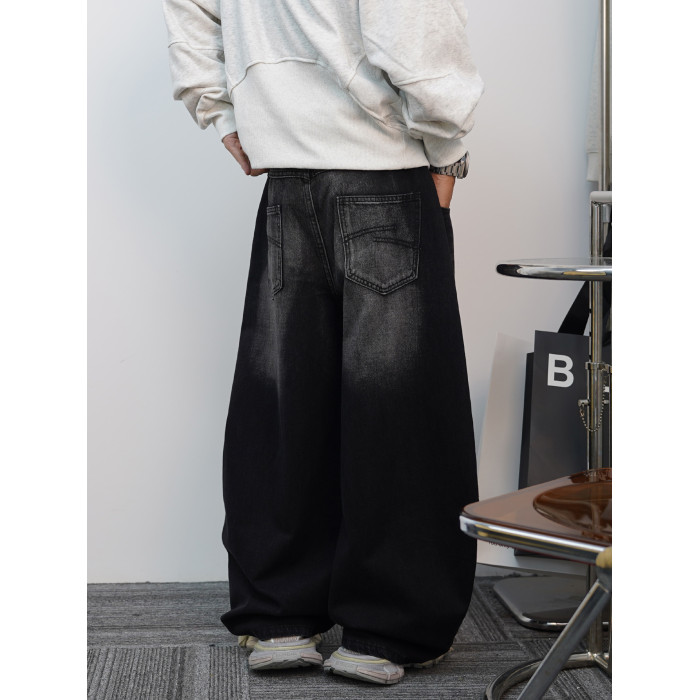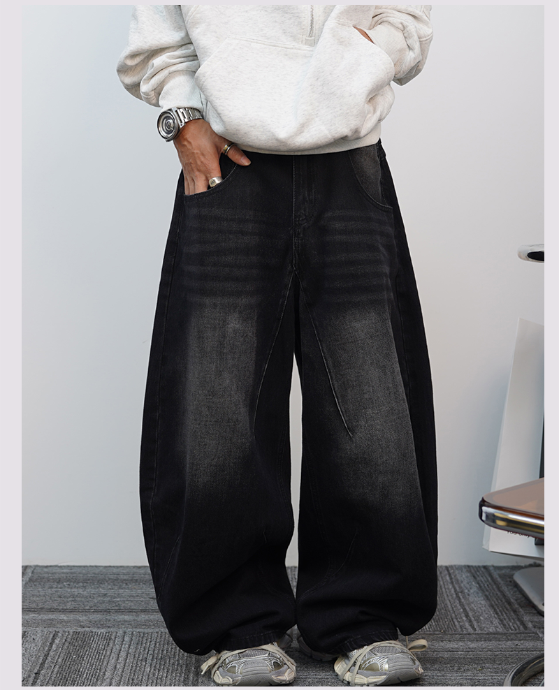 美式彎刀牛仔褲男款高街休閒濶腿褲高級潮流復古水洗男女褲子冬季