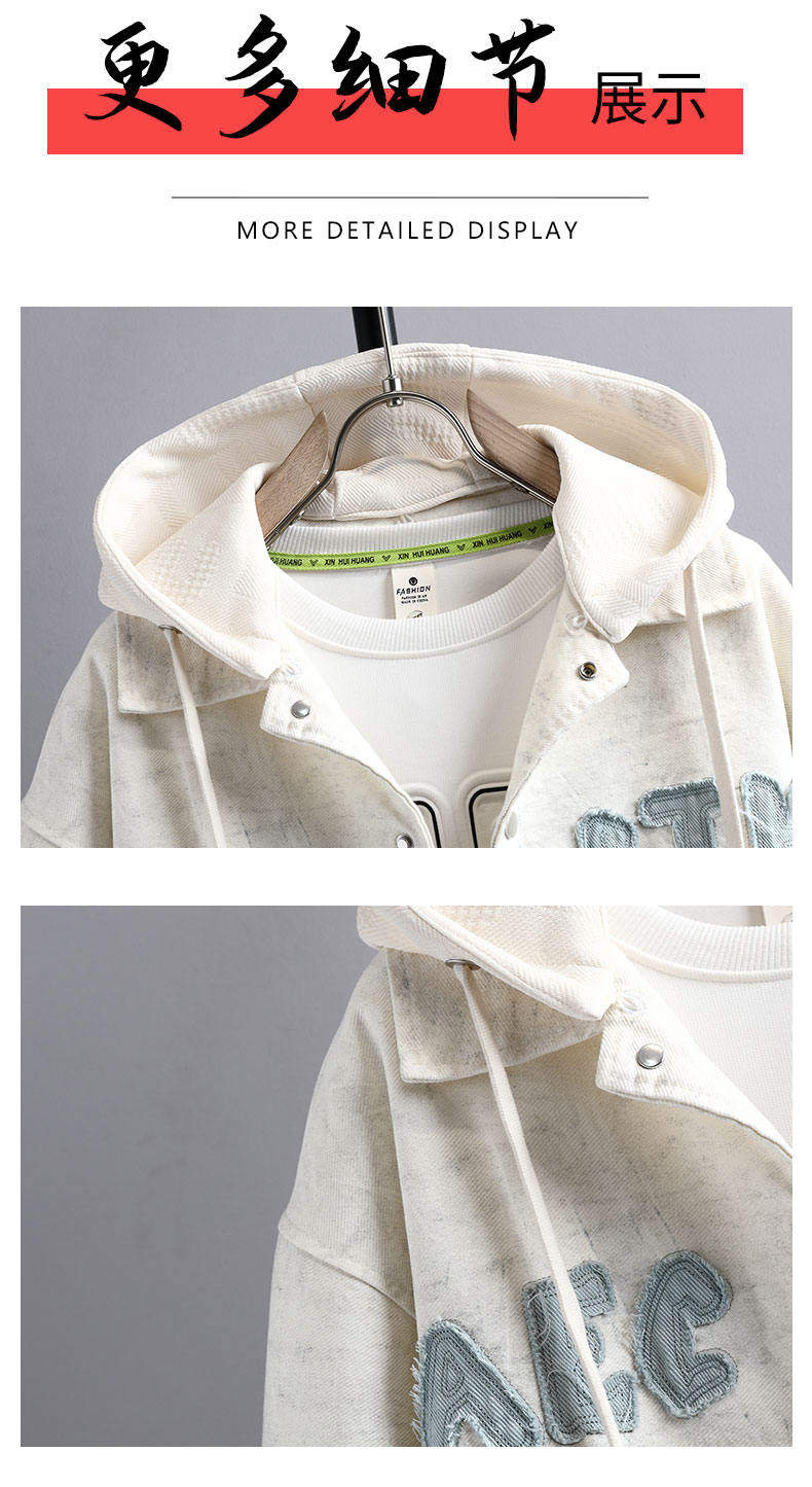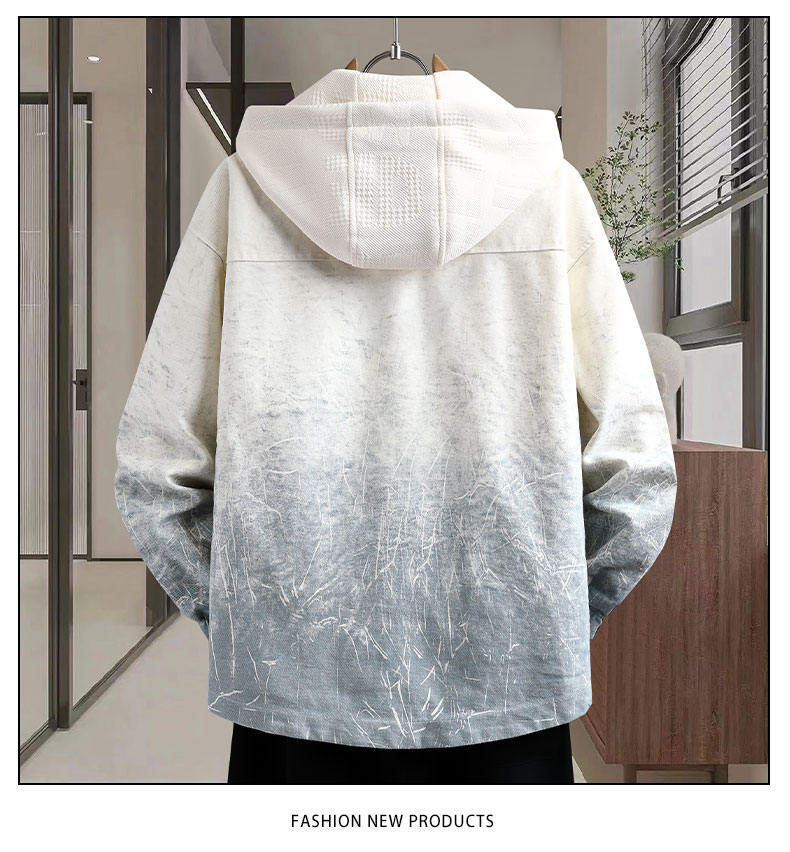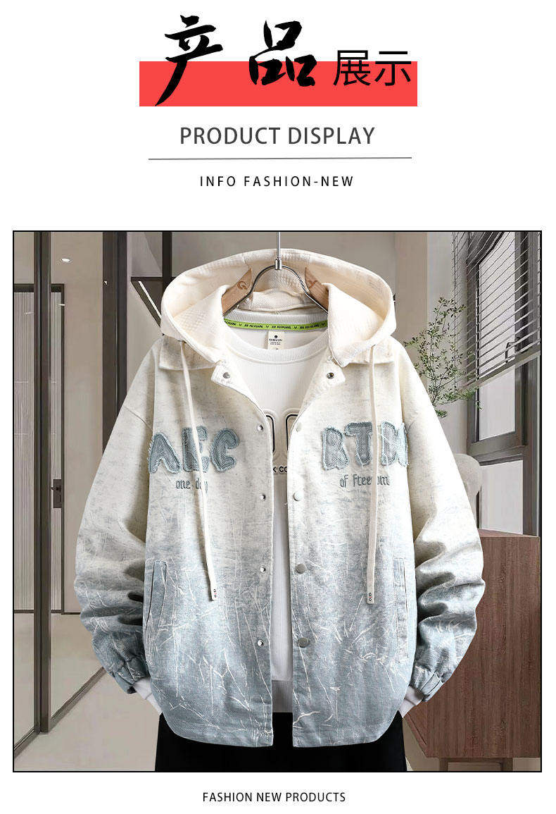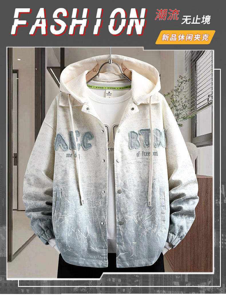 加絨加厚連帽牛仔外套男秋冬季時尚潮流漸變色夾克青少年男孩褂子
