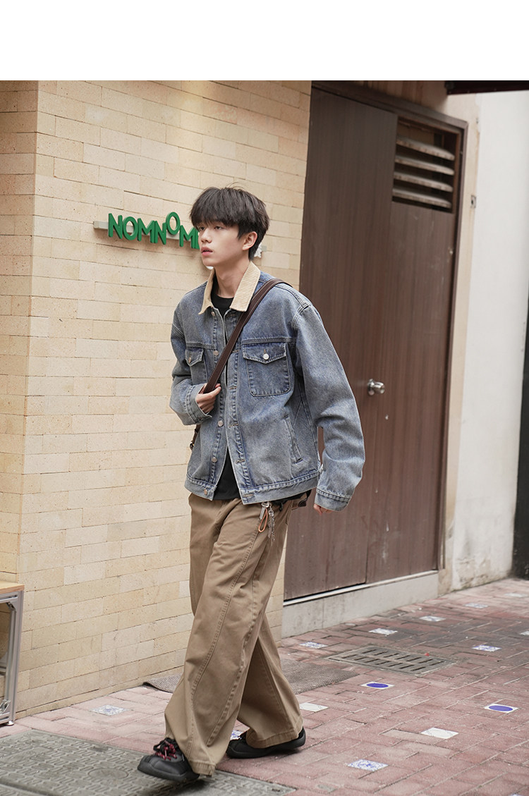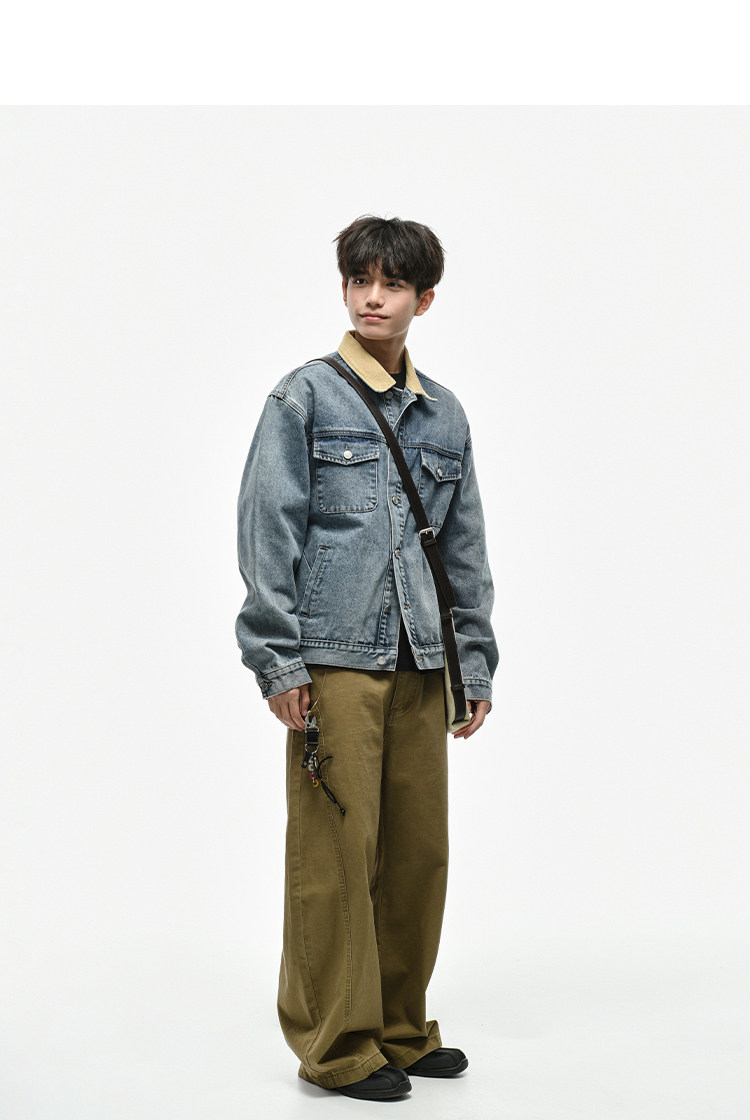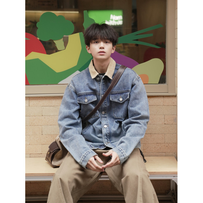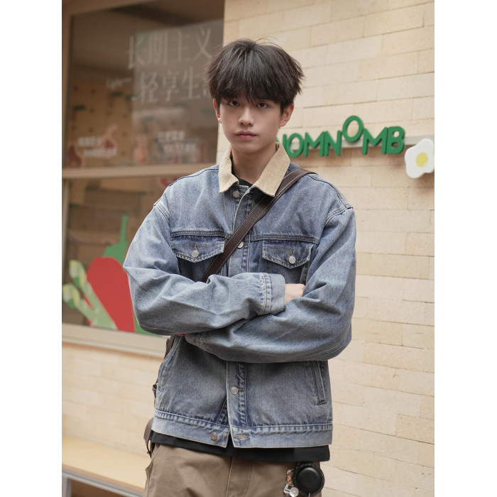 GOGOSOON繙領巴恩風獵裝牛仔外套男2026新款春秋復古工裝短款夾克