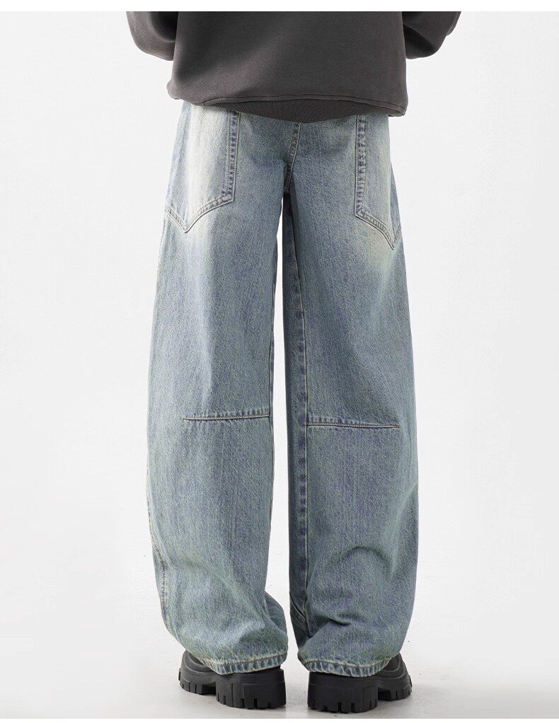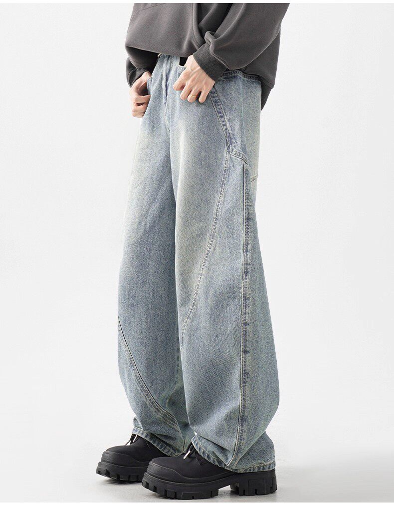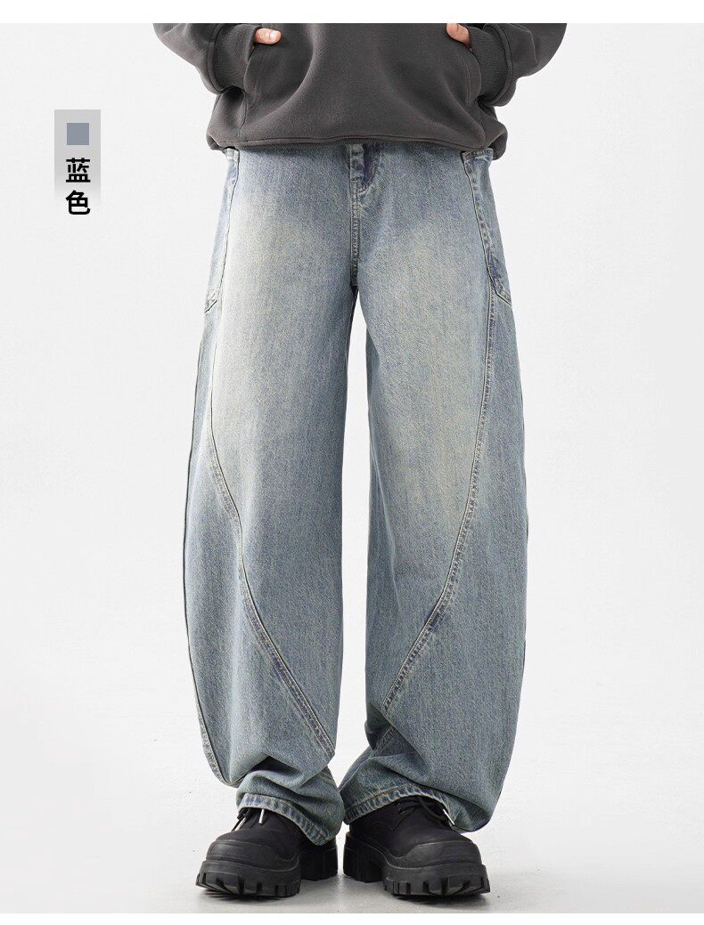 JEEP SPIRIT吉普美式彎刀牛仔褲男士秋季濶腿寬鬆百搭休閒直筒褲