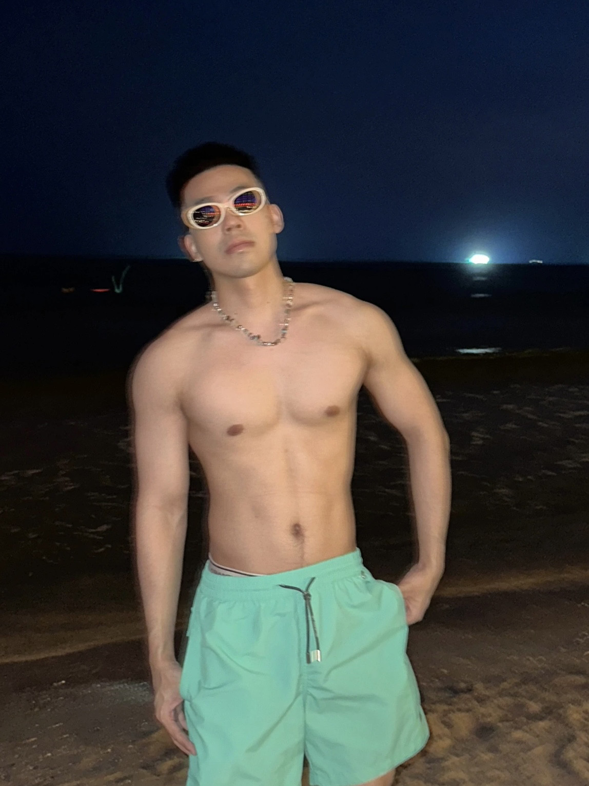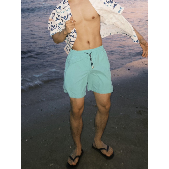夏日海邊沙灘螃蟹刺綉速乾四分褲男美式休閒寬鬆運動不過膝短褲
