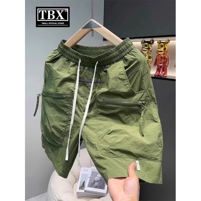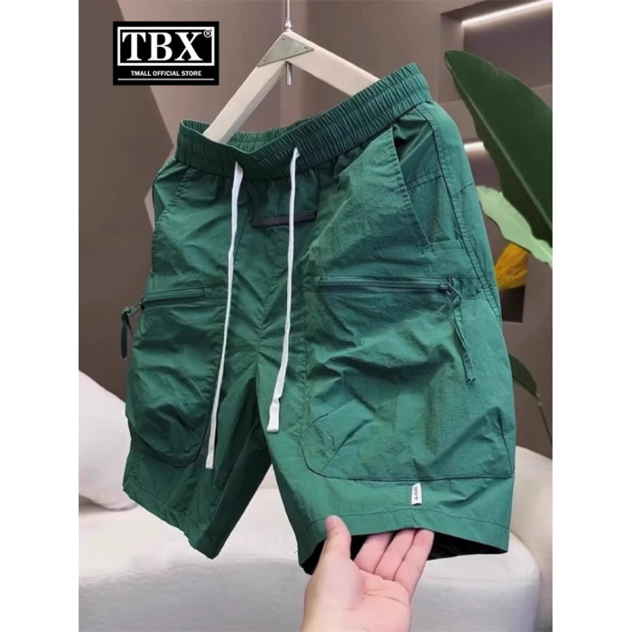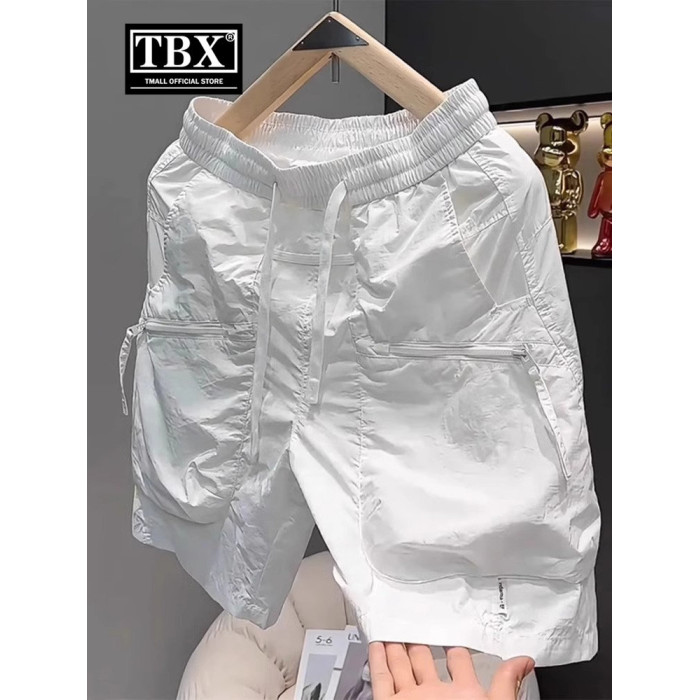 白色冰絲工裝短褲男士夏季2026新款外穿休閒五分褲運動沙灘褲男款