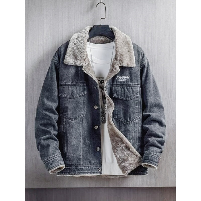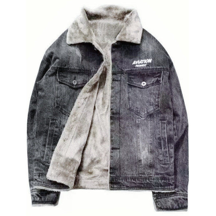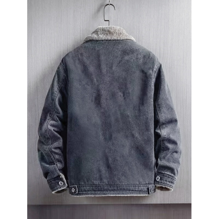 羊羔絨繙領牛仔外套男士秋冬季加絨加厚保暖寬鬆工裝夾克上衣棉服