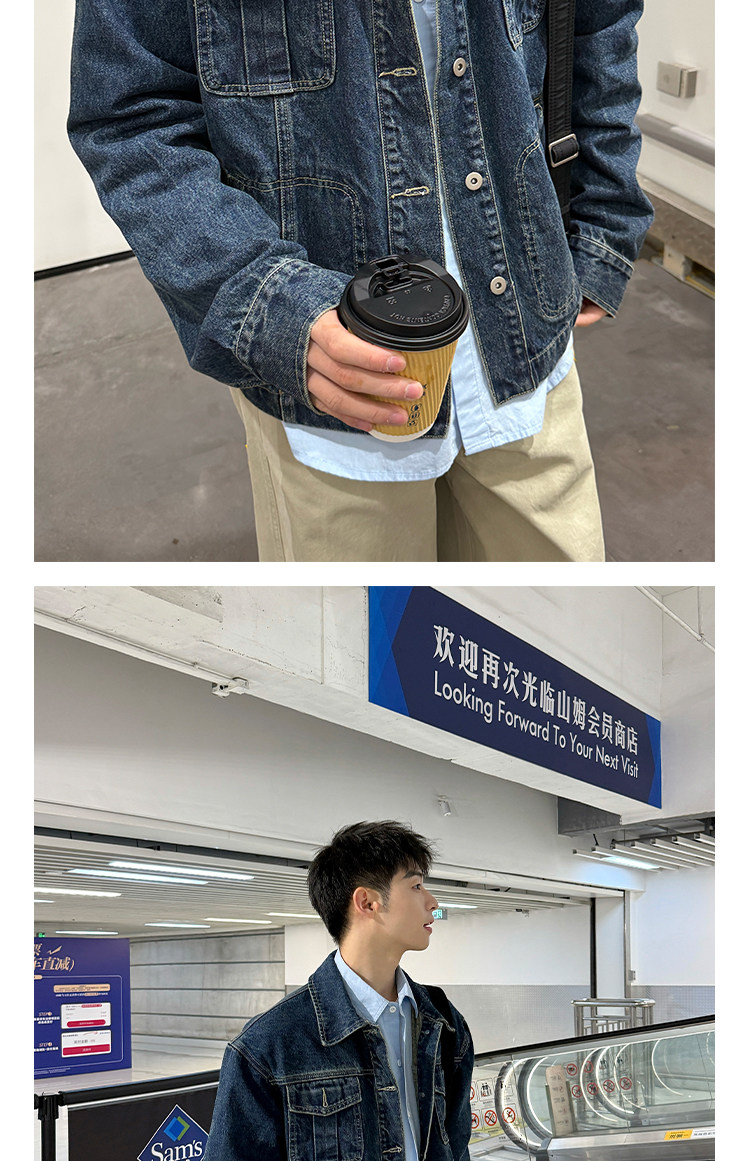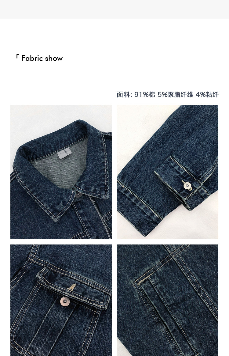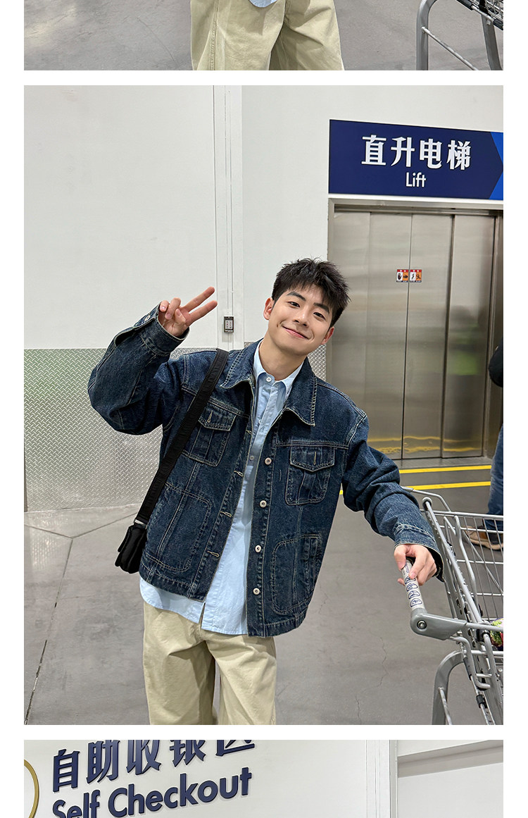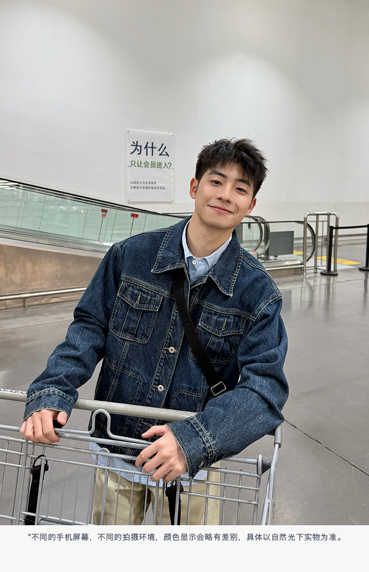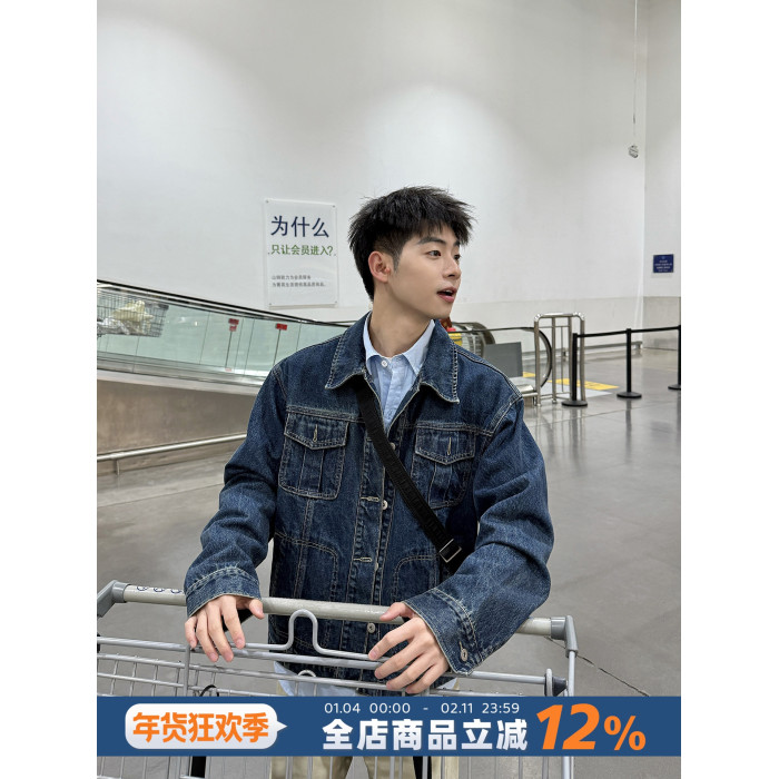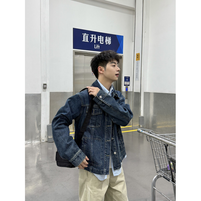 暗物質藍色繙領紐釦牛仔外套男生春季新款寬鬆復古工裝風夾克男