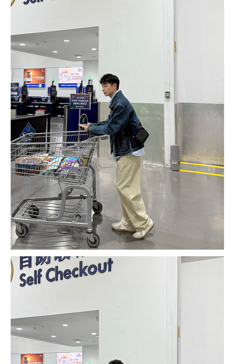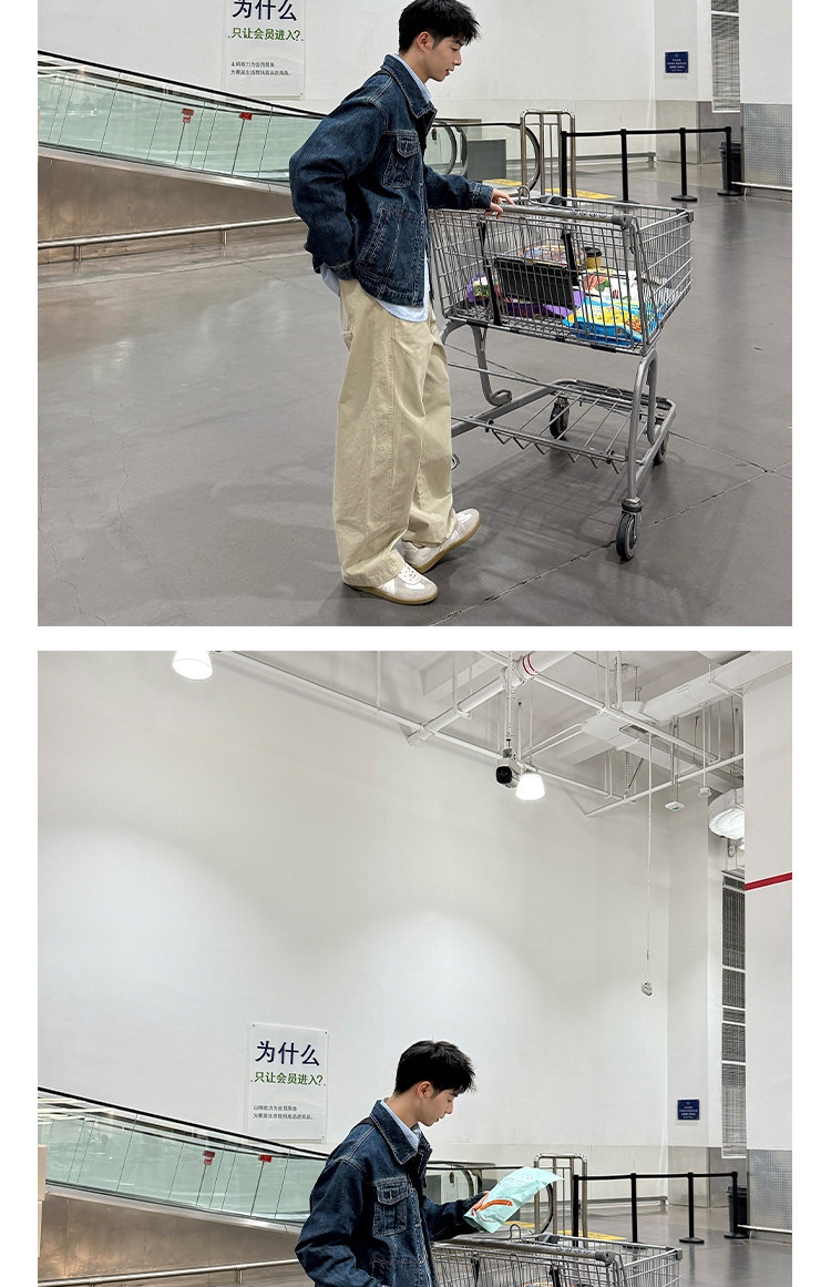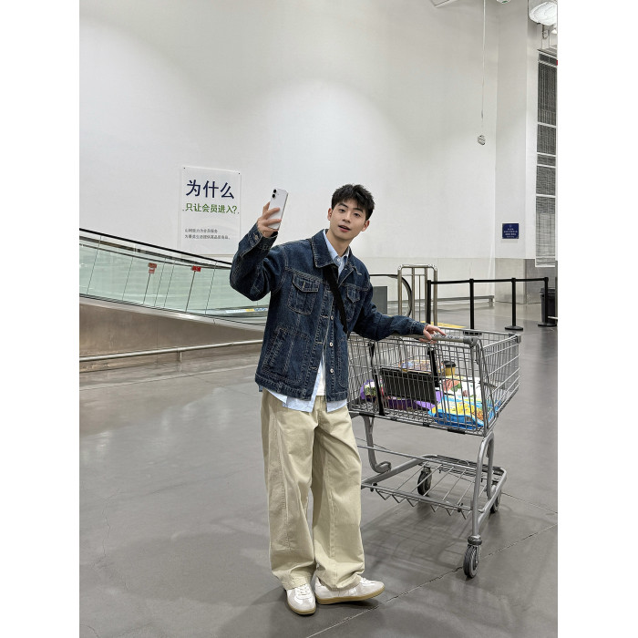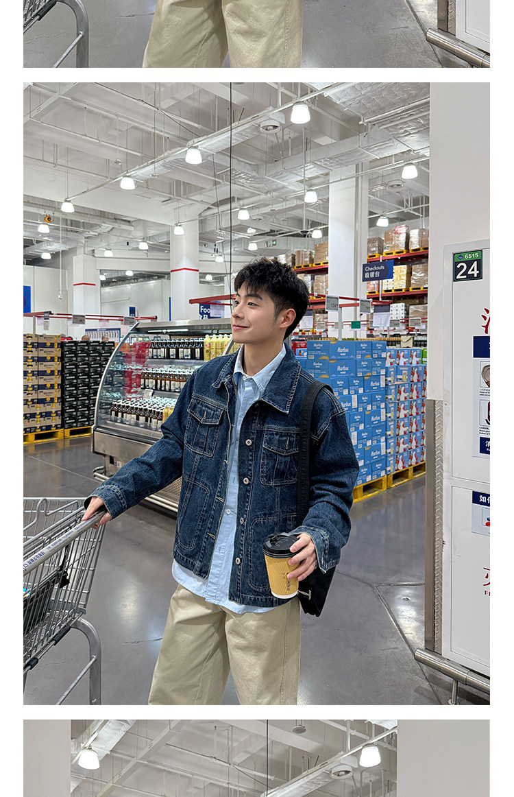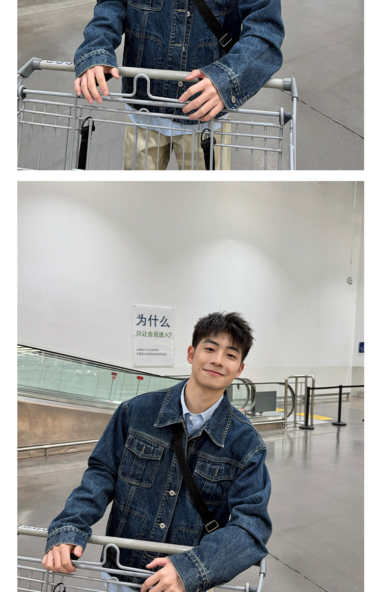 暗物質藍色繙領紐釦牛仔外套男生春季新款寬鬆復古工裝風夾克男