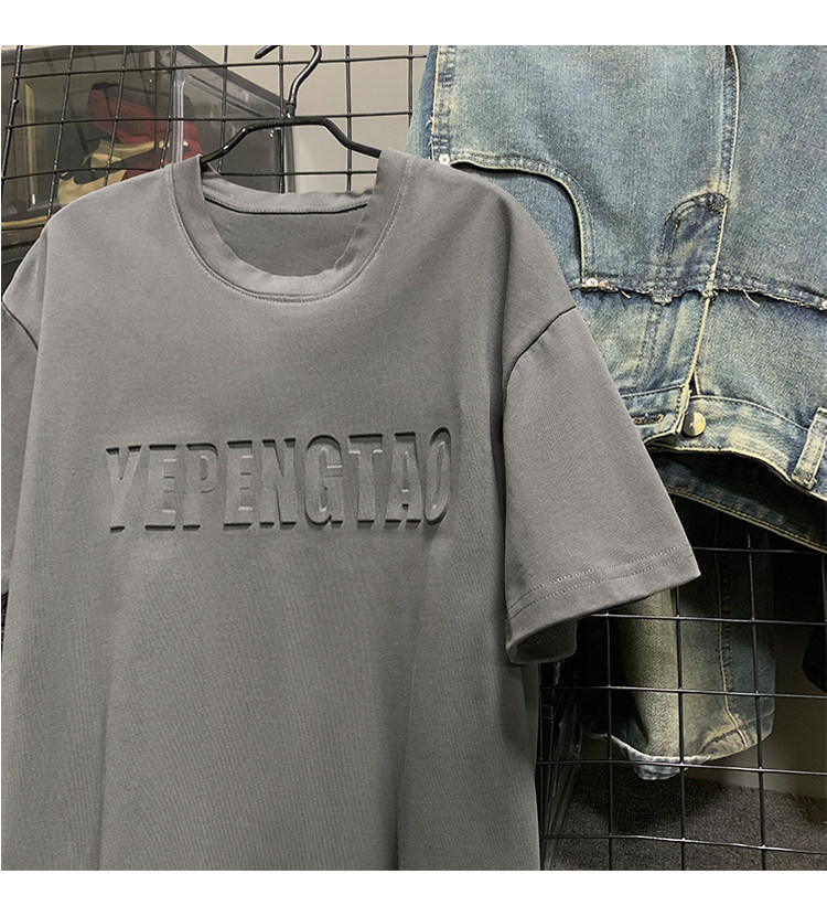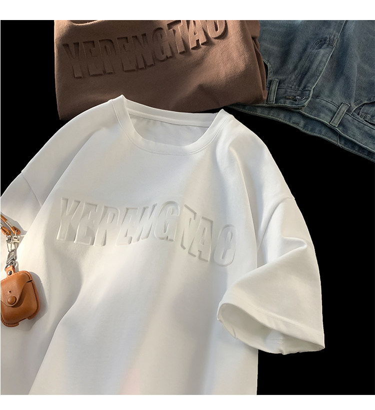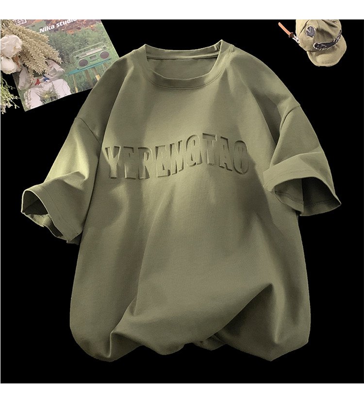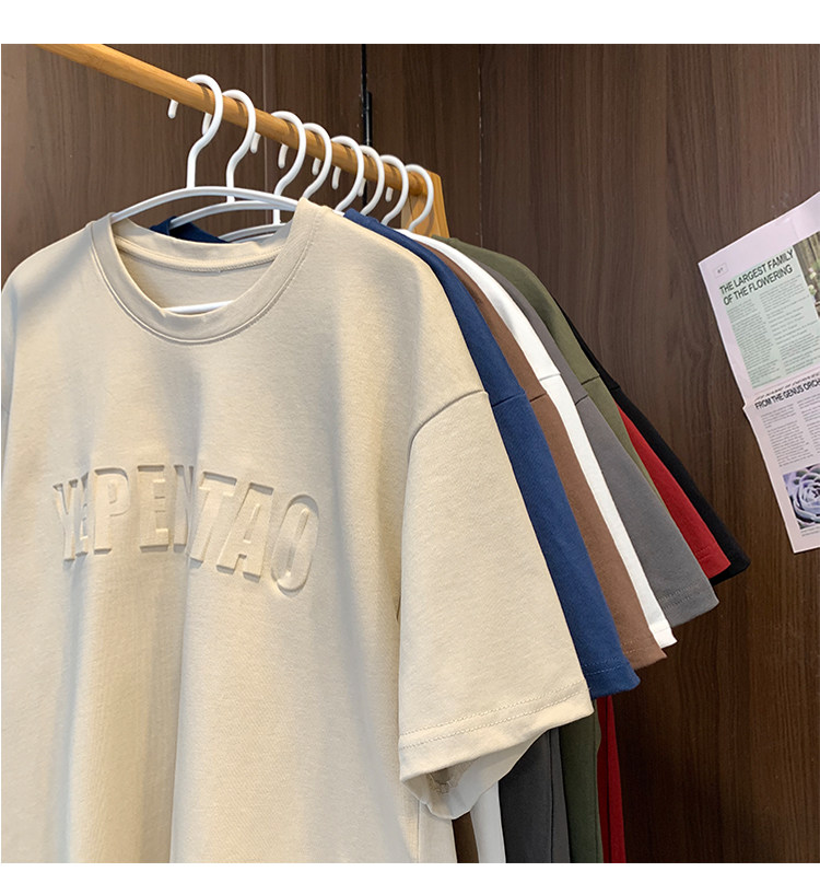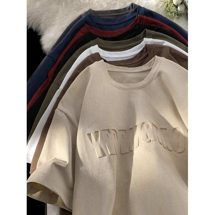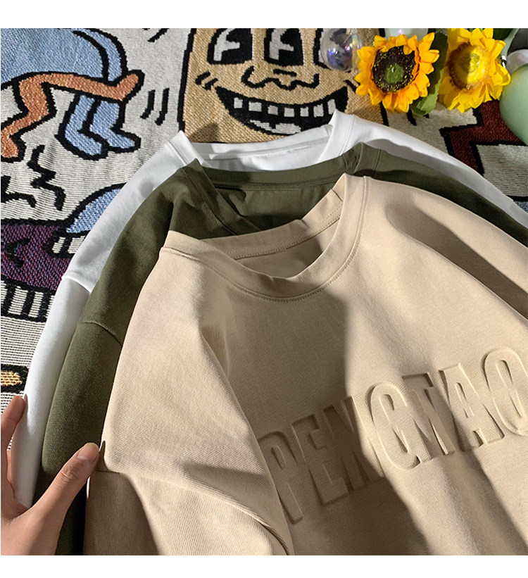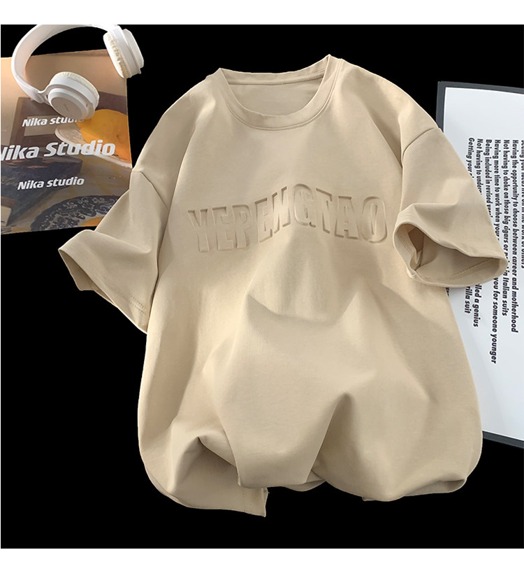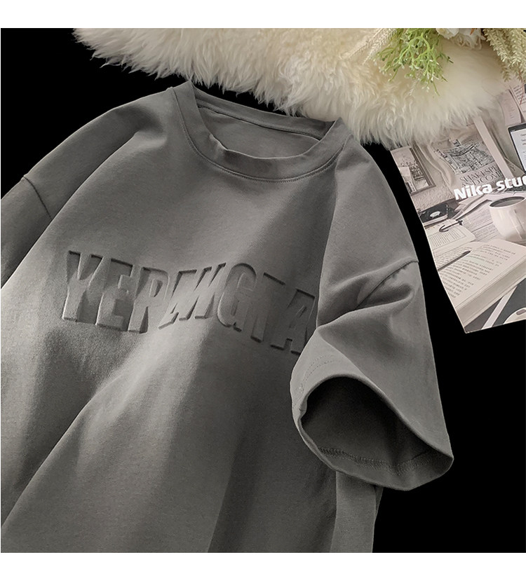 美式260g高克重鋼母短袖T恤男潮牌復古日系大碼寬鬆胖子體恤