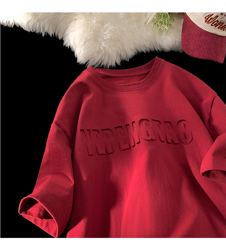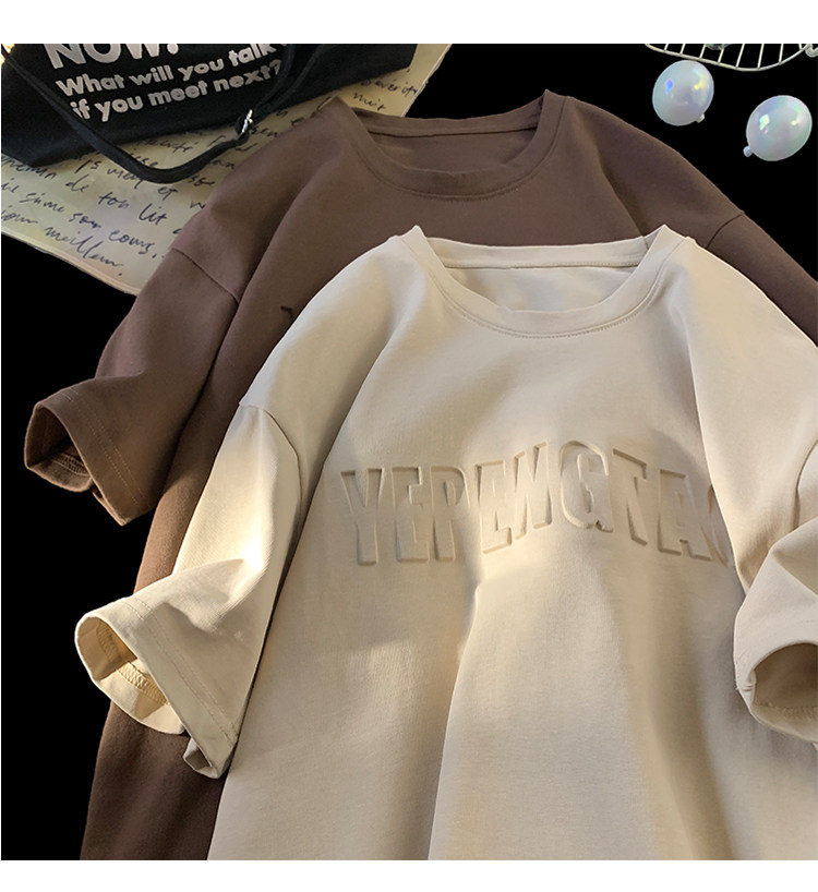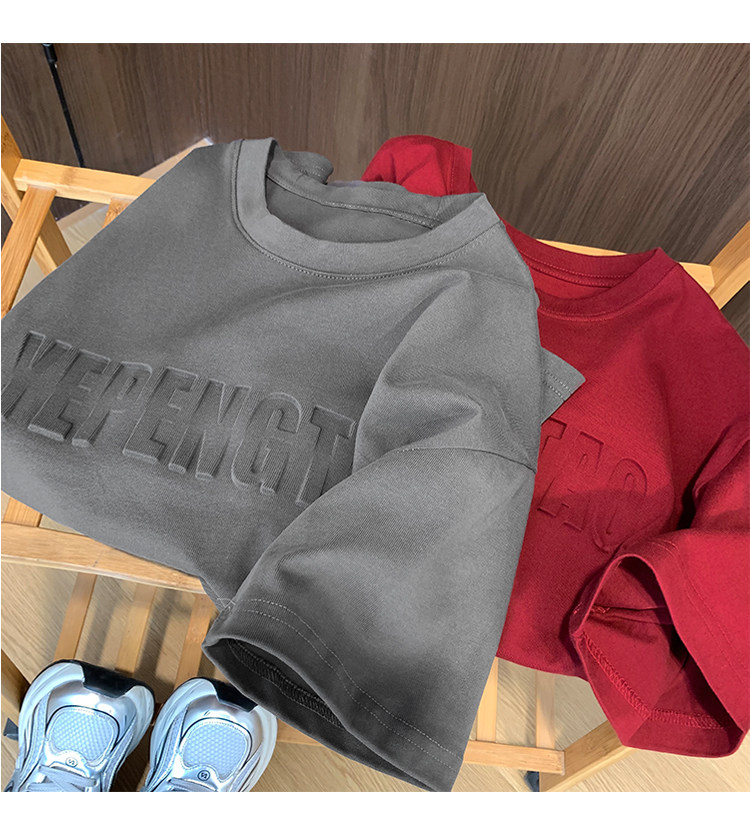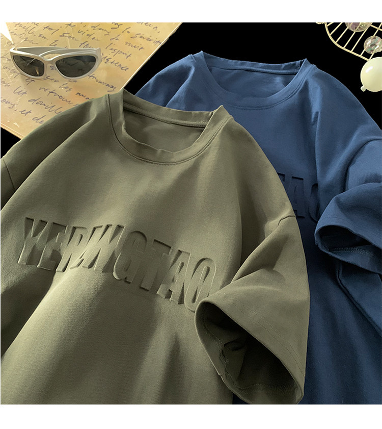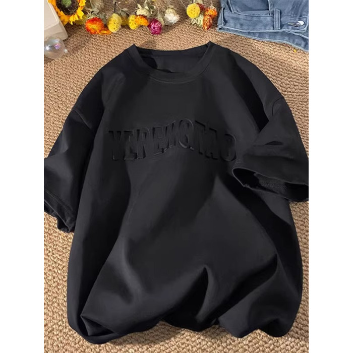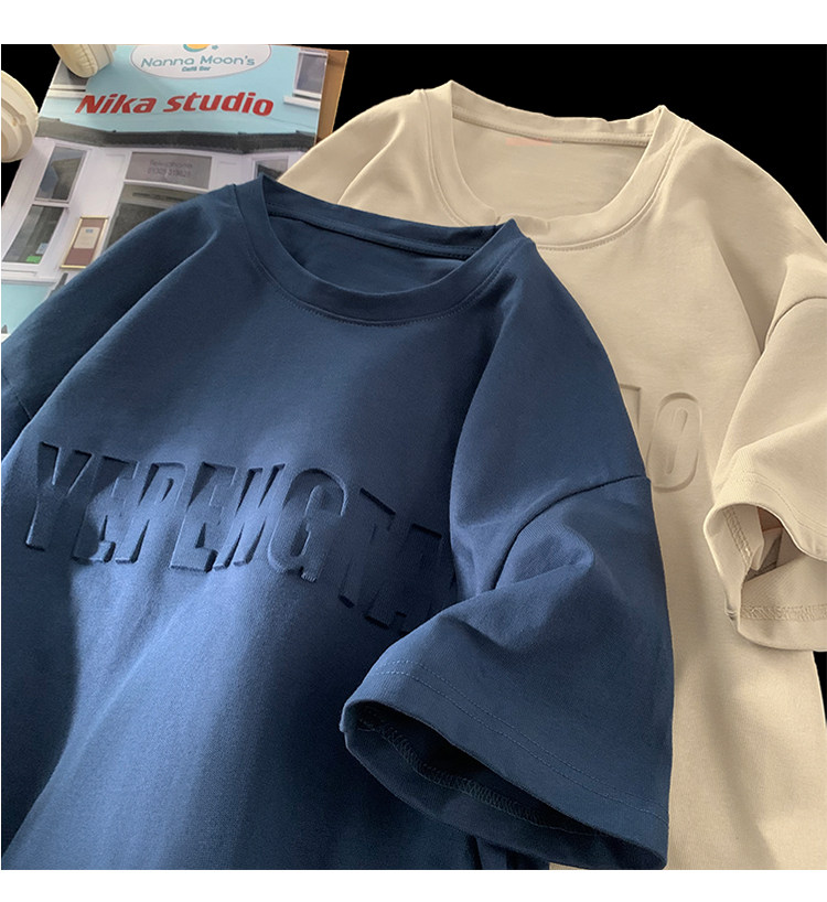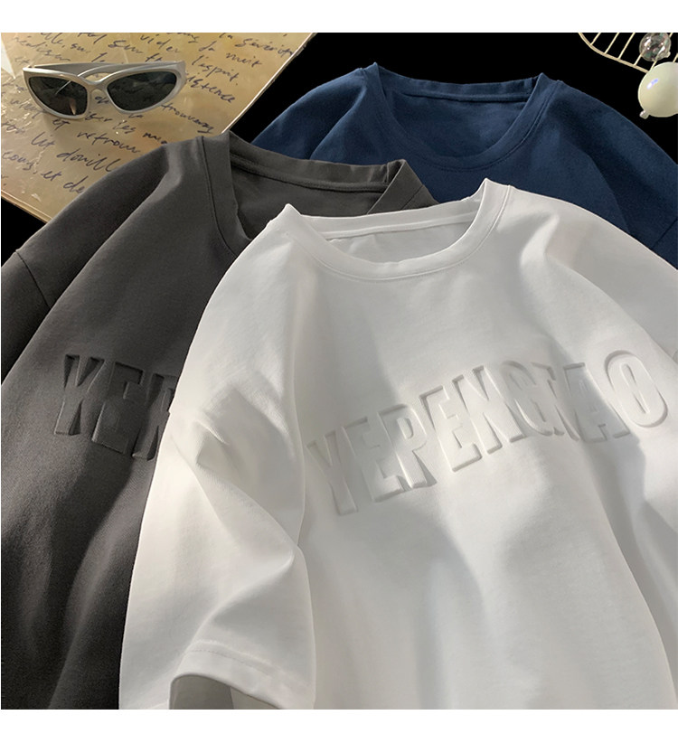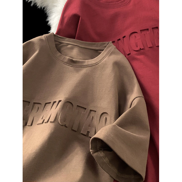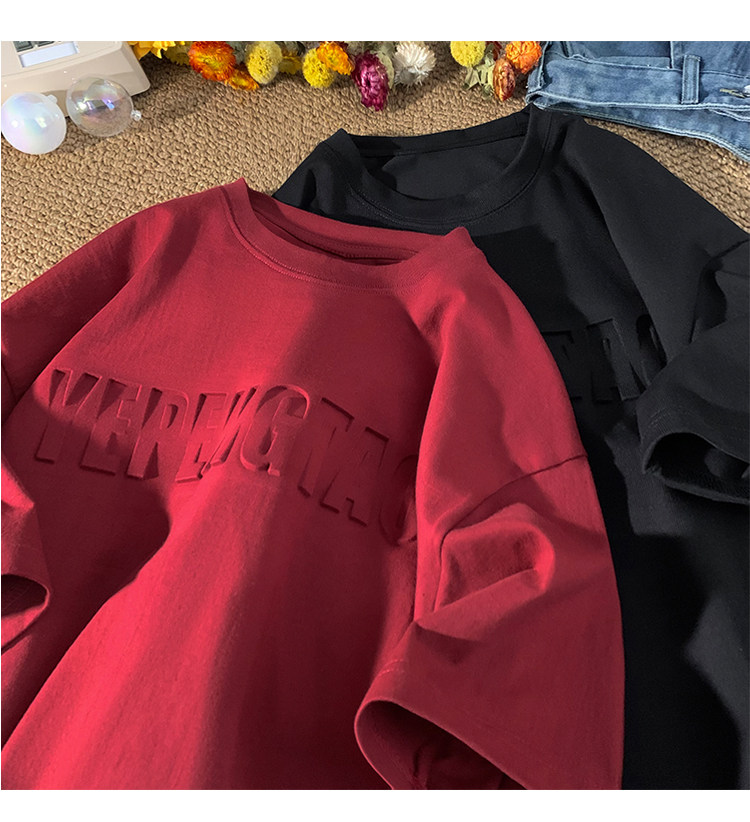 美式260g高克重鋼母短袖T恤男潮牌復古日系大碼寬鬆胖子體恤