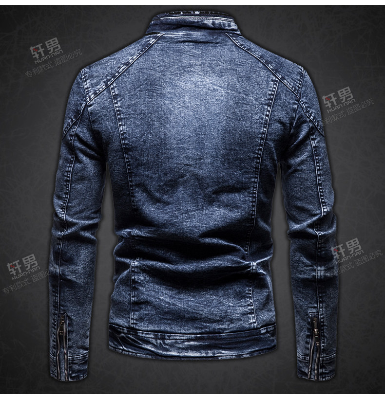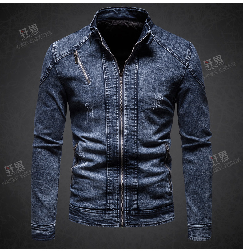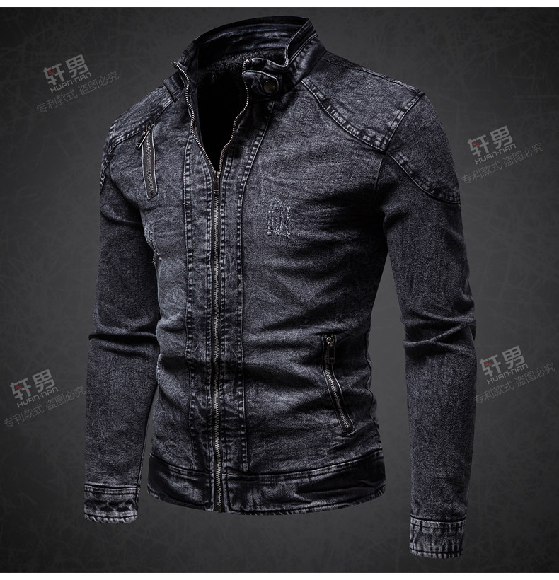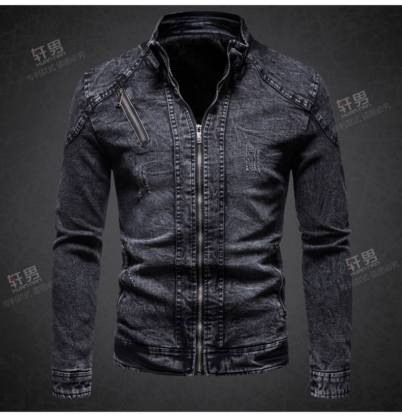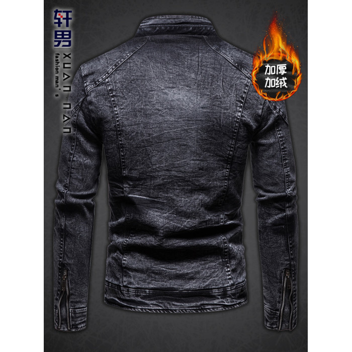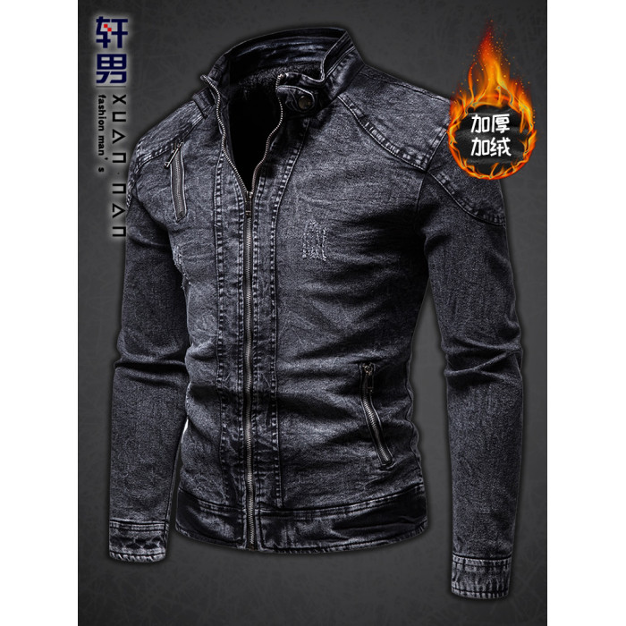 秋冬加絨保暖牛仔外套中年男士立領潮流韓版修身復古夾克牛仔上衣