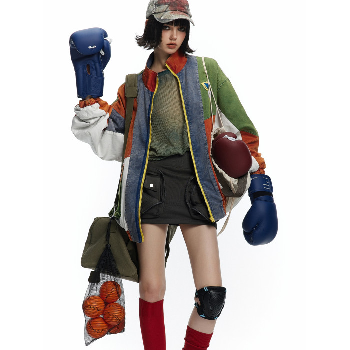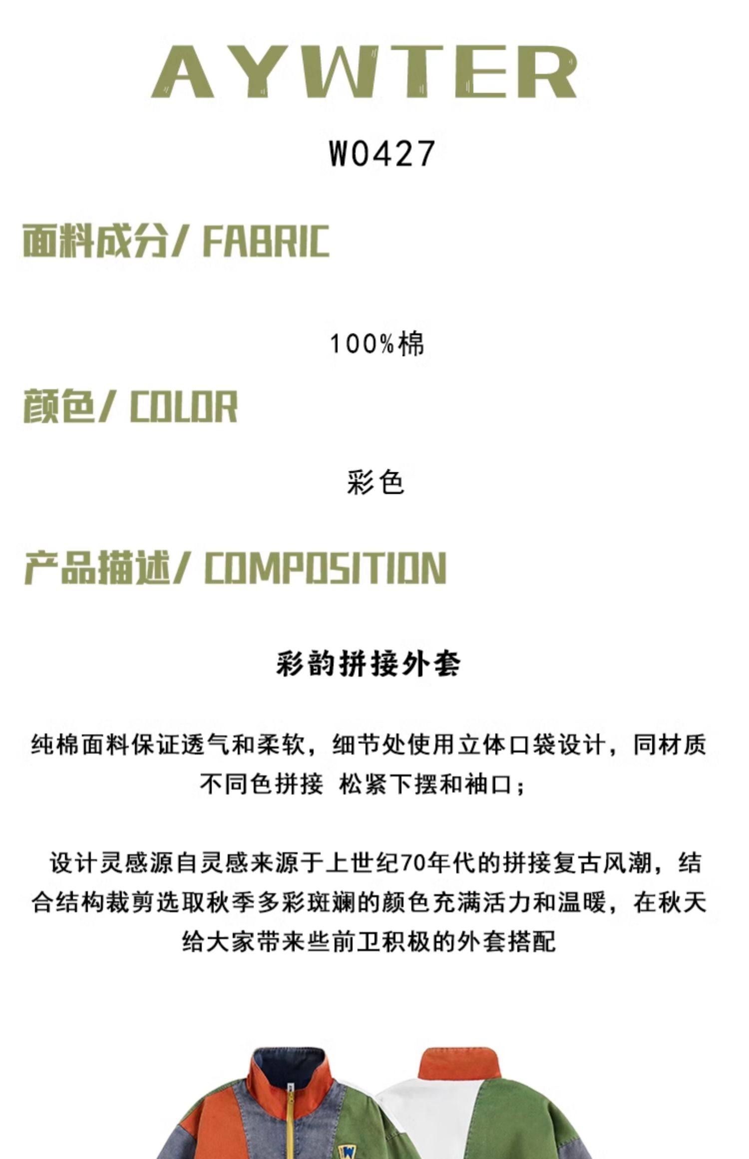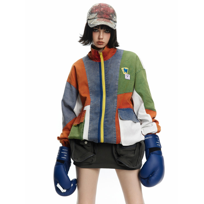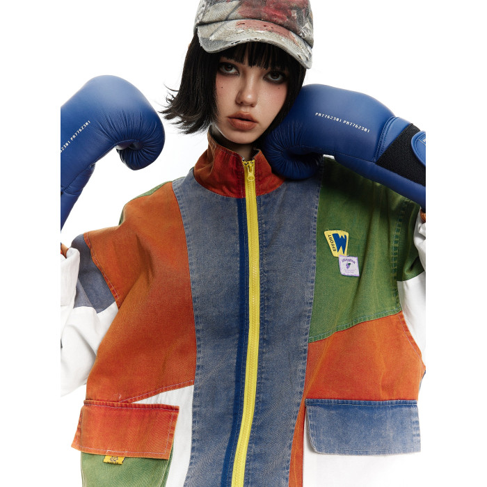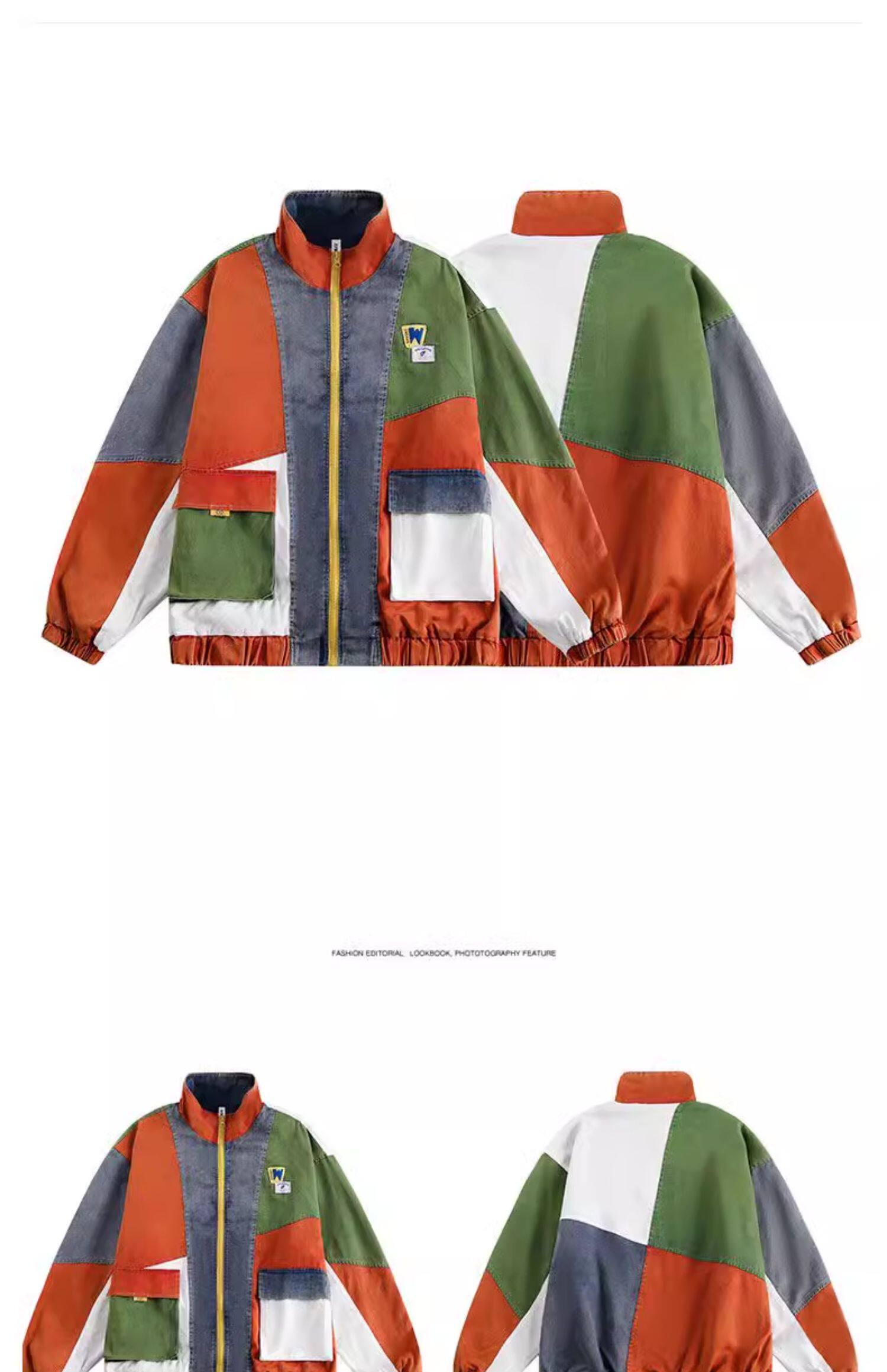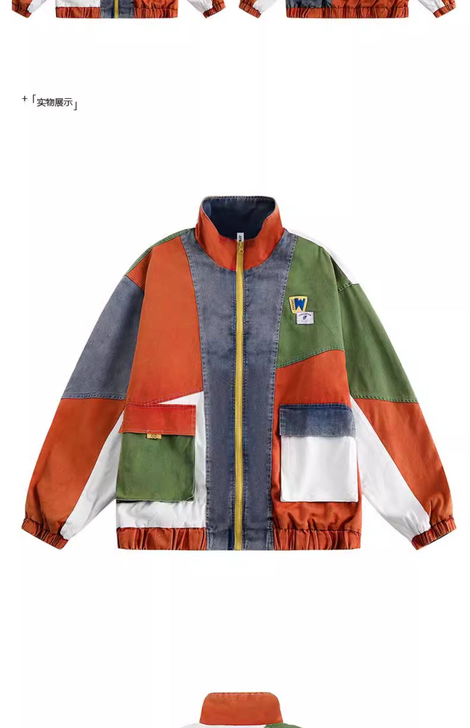 HETYY男女同款美式拼接撞色外套春秋新款立領夾克寬鬆小衆上衣潮