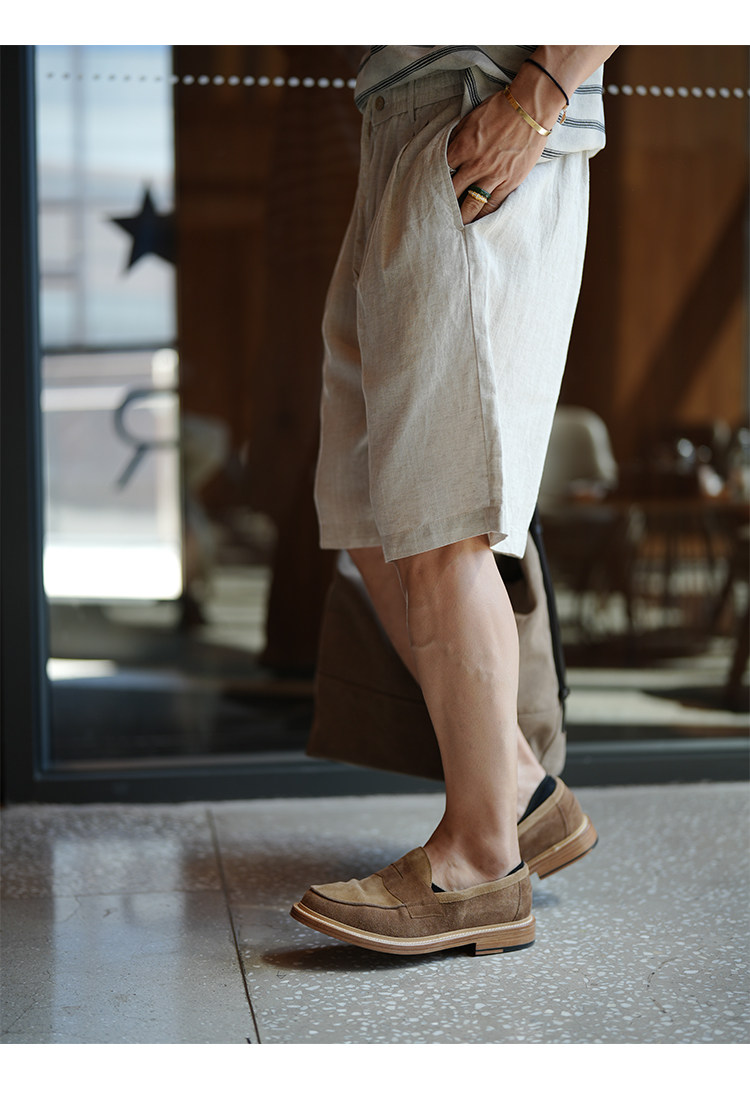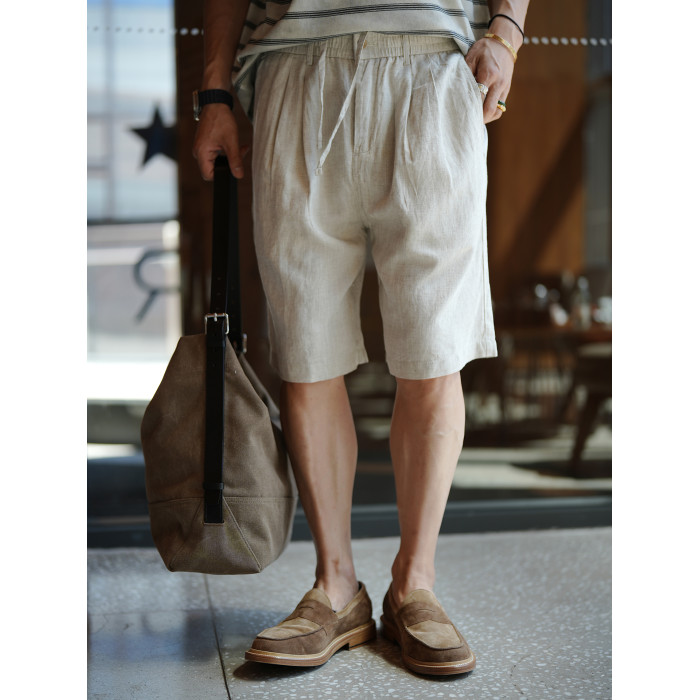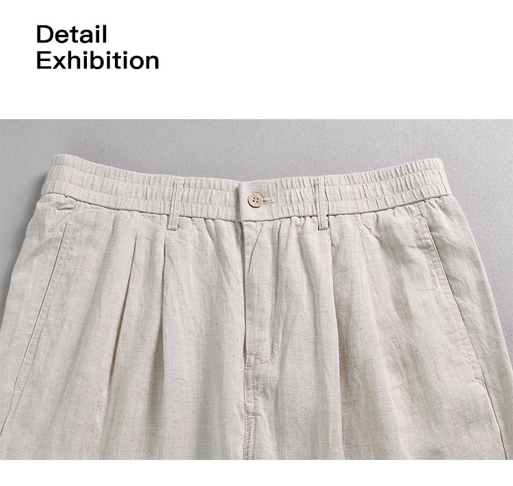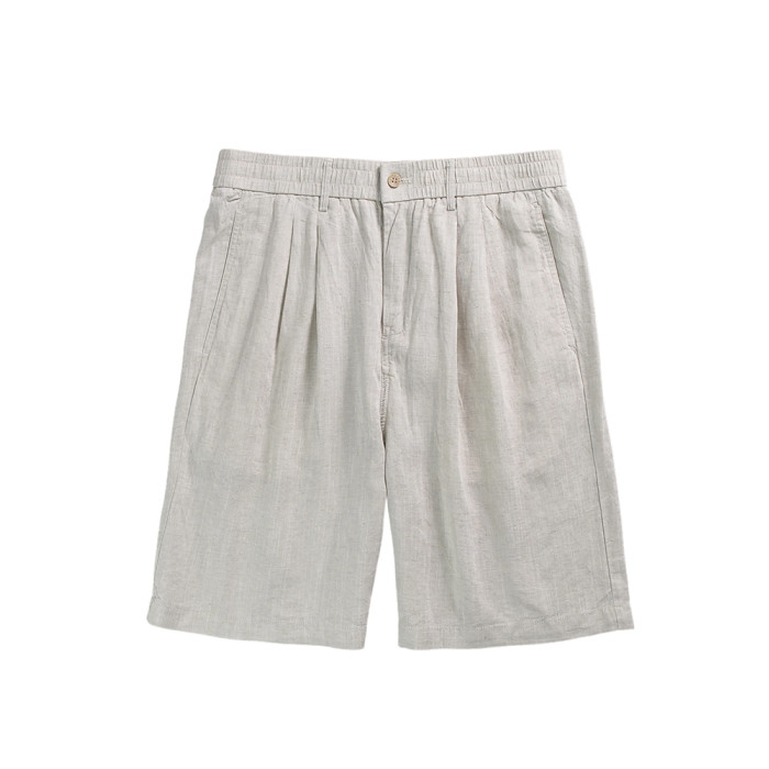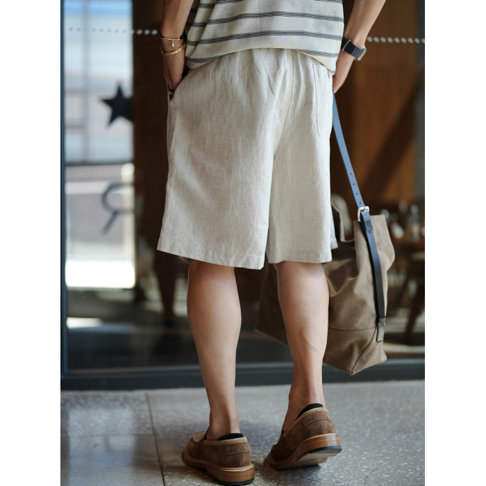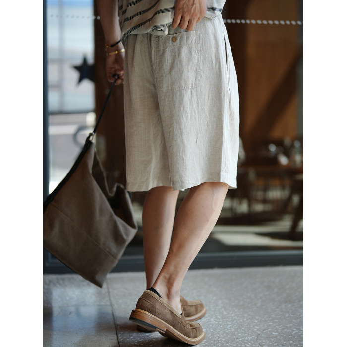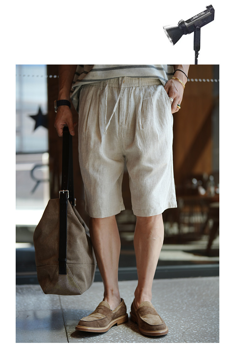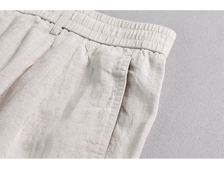 日系復古高品質親膚抗皺亞麻短褲男夏季潮流新款松緊腰純色五分褲