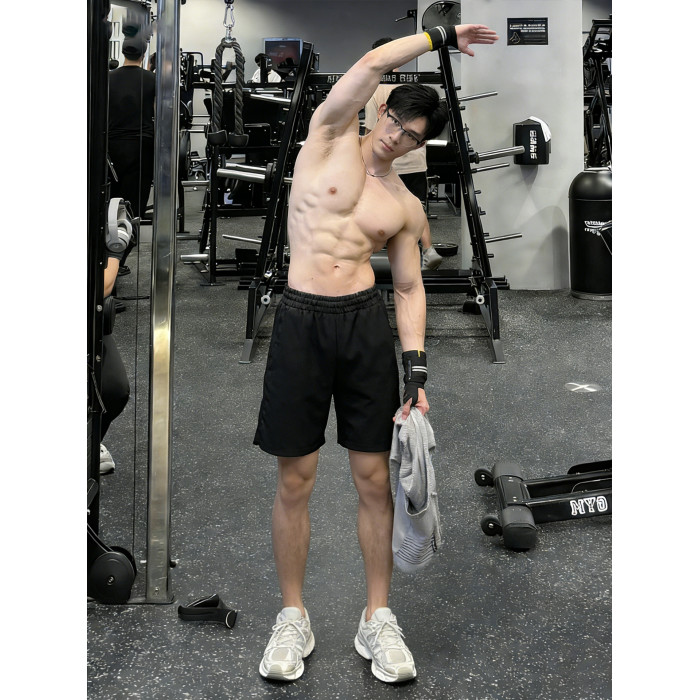 黑色健身運動短褲男款美式薄款透氣褲子外穿休閒跑步不過膝四分褲