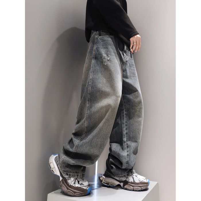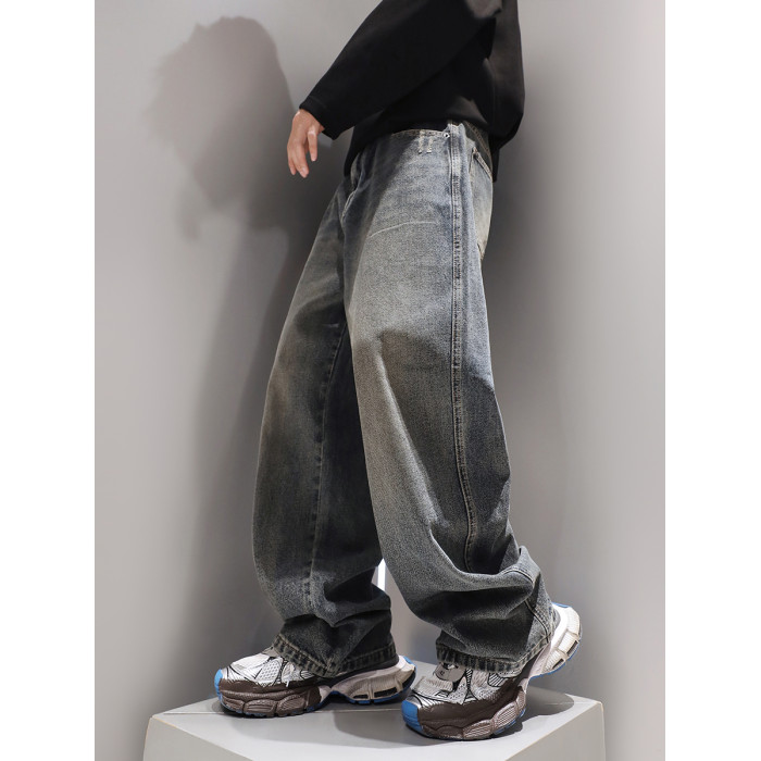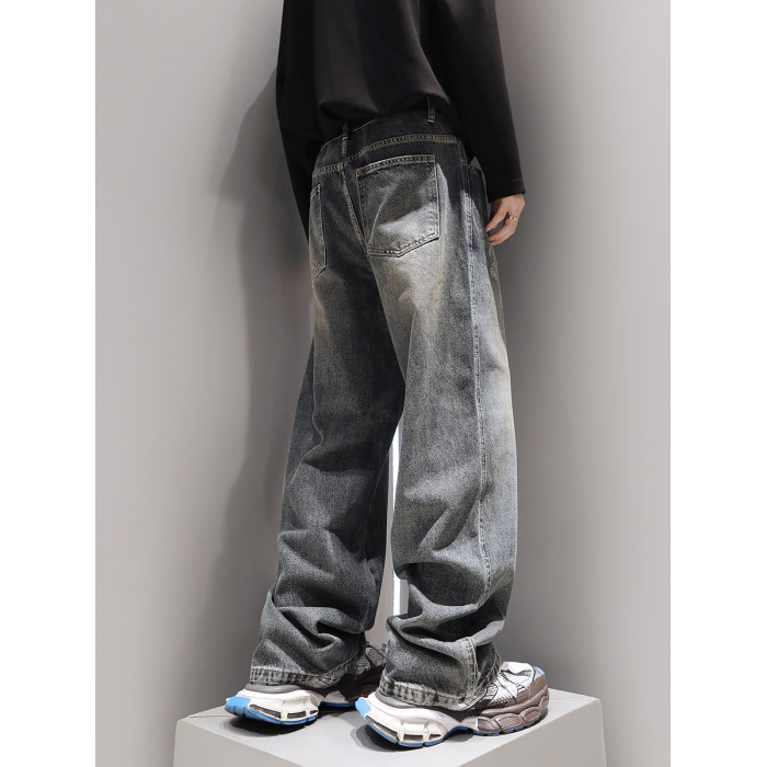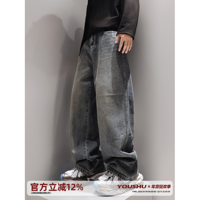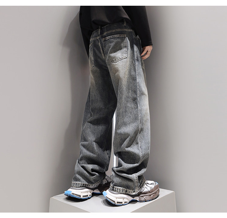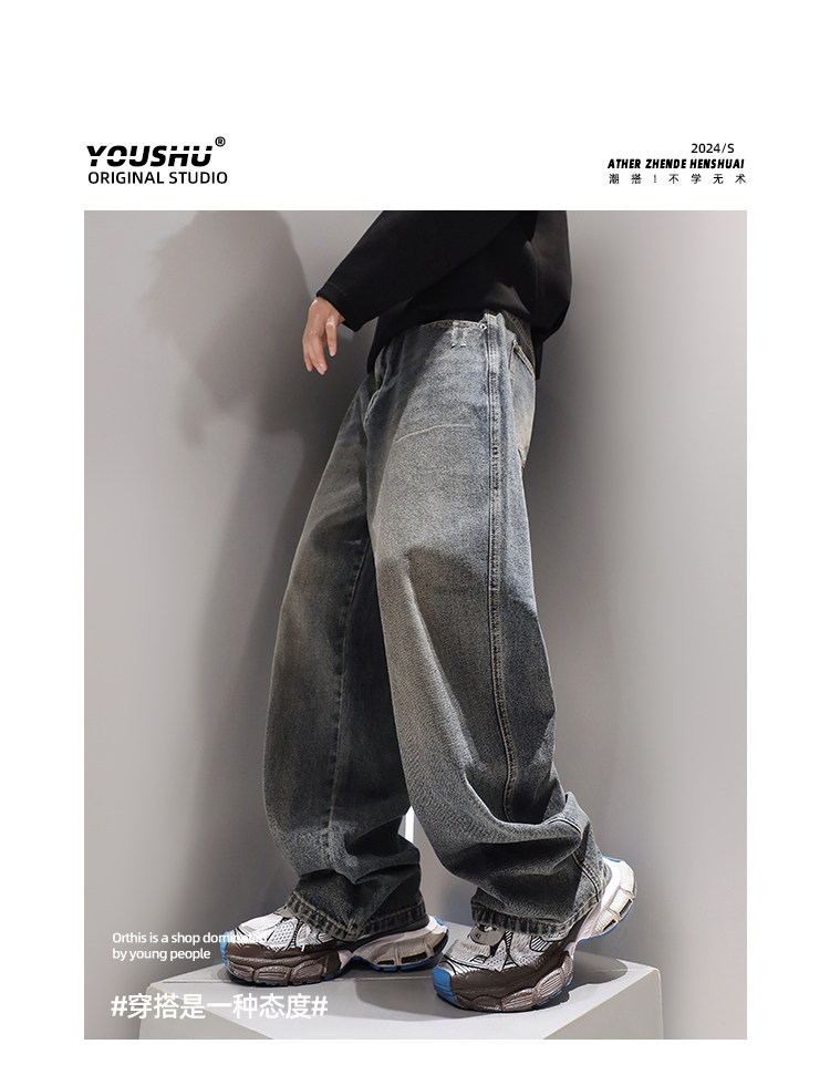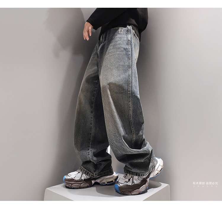 復古水洗重磅牛仔褲子男春季直筒2024新款美式潮流寬鬆休閒褲