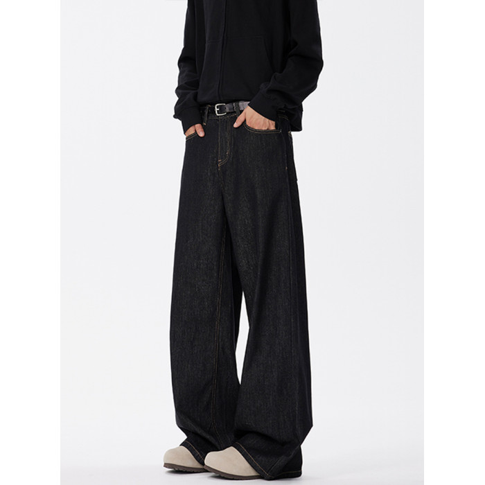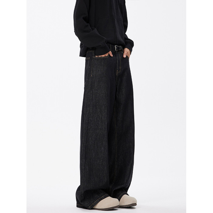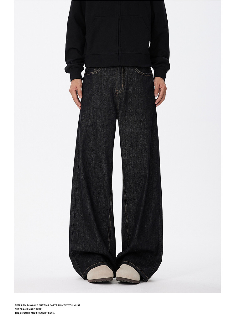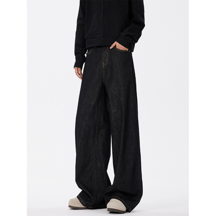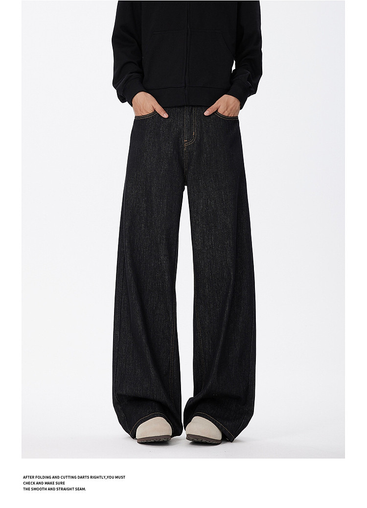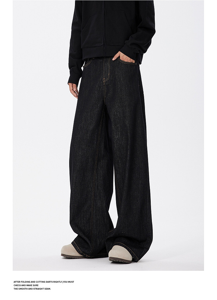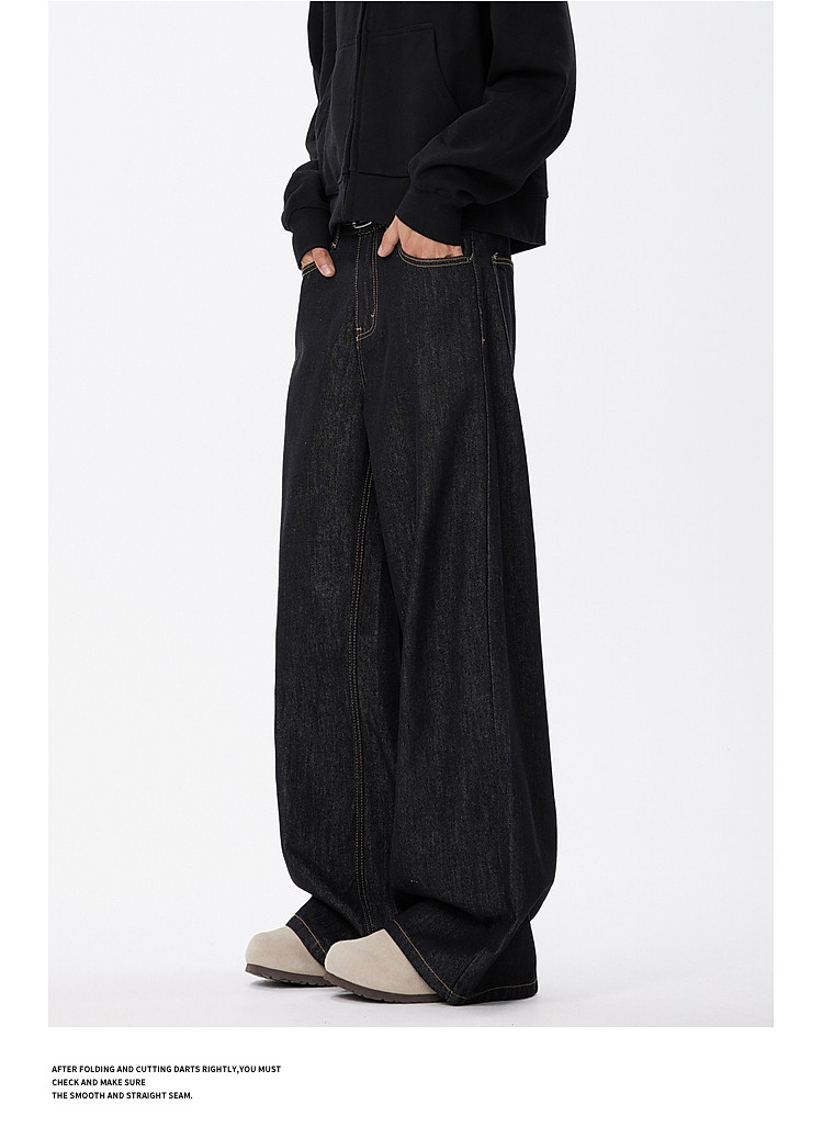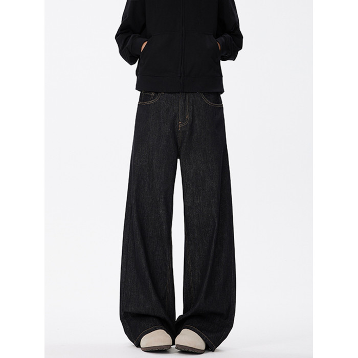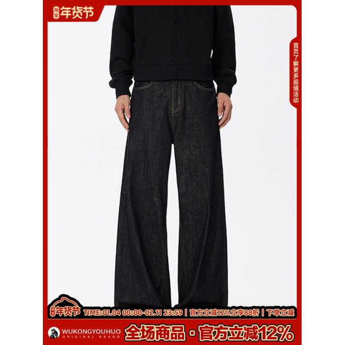 悟空有貨美式復古cleanfit濶腿牛仔褲男潮牌寬鬆垂感直筒百搭長褲