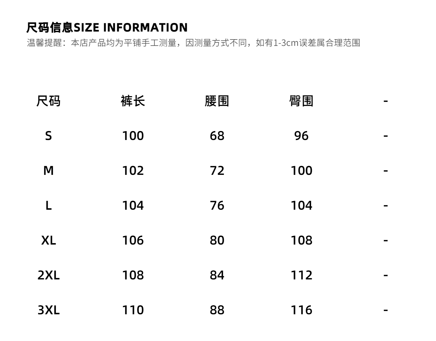 | 褲長 | 長褲 |