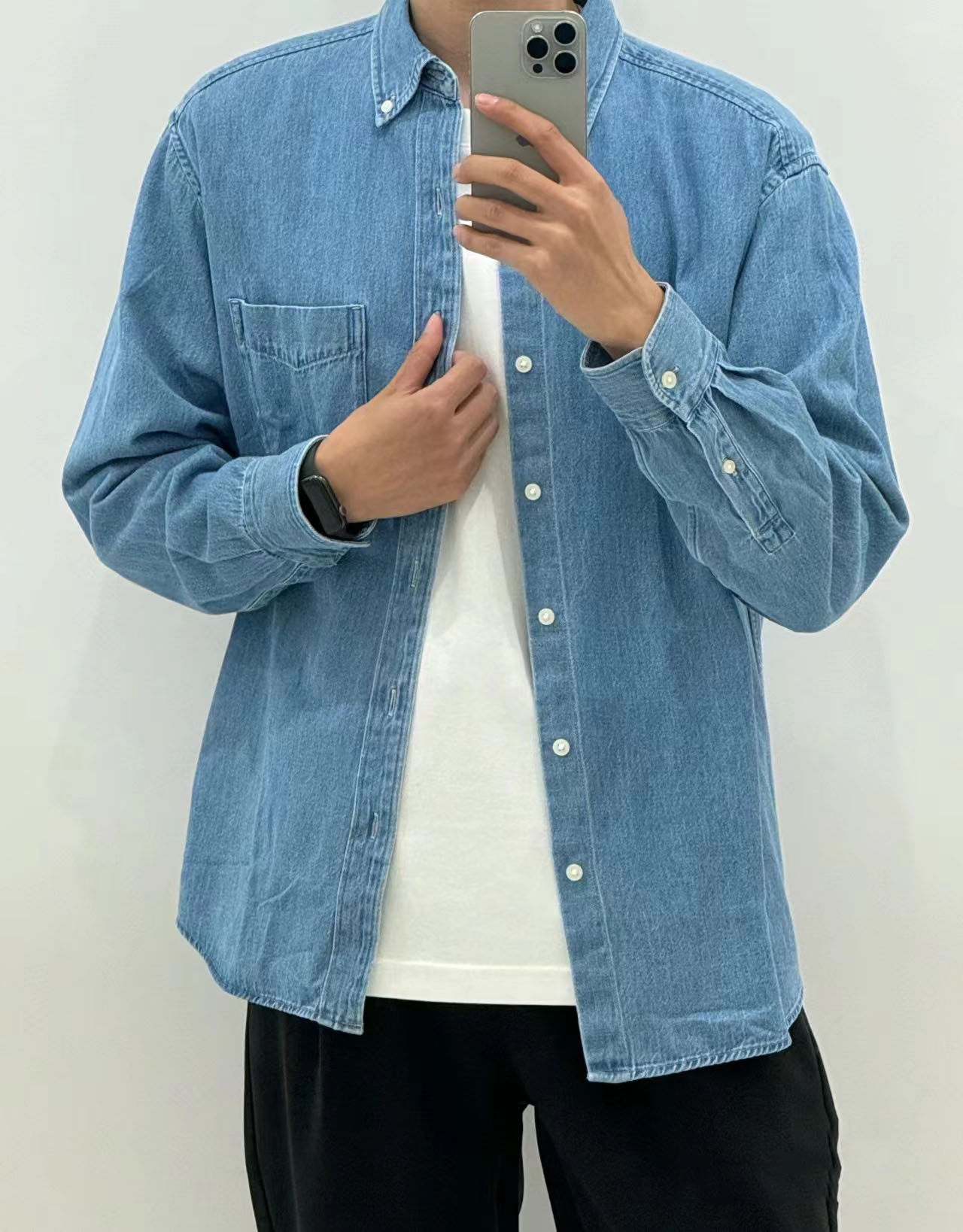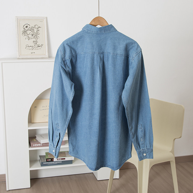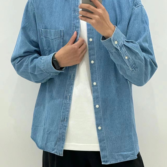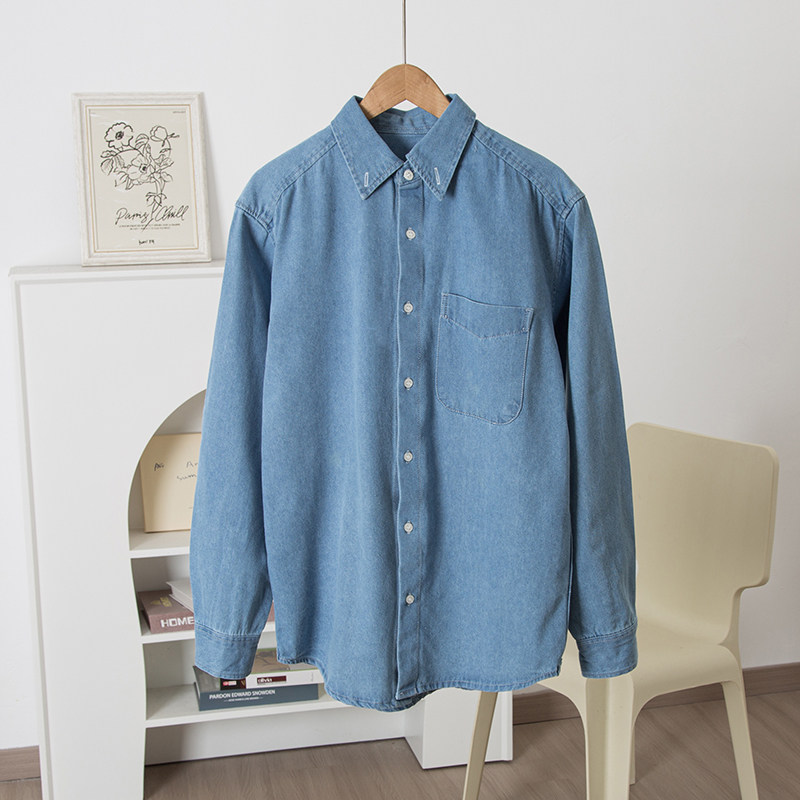 【試衣間】男女裝長袖牛仔襯衫外套水洗襯衣休閒通勤上衣466935