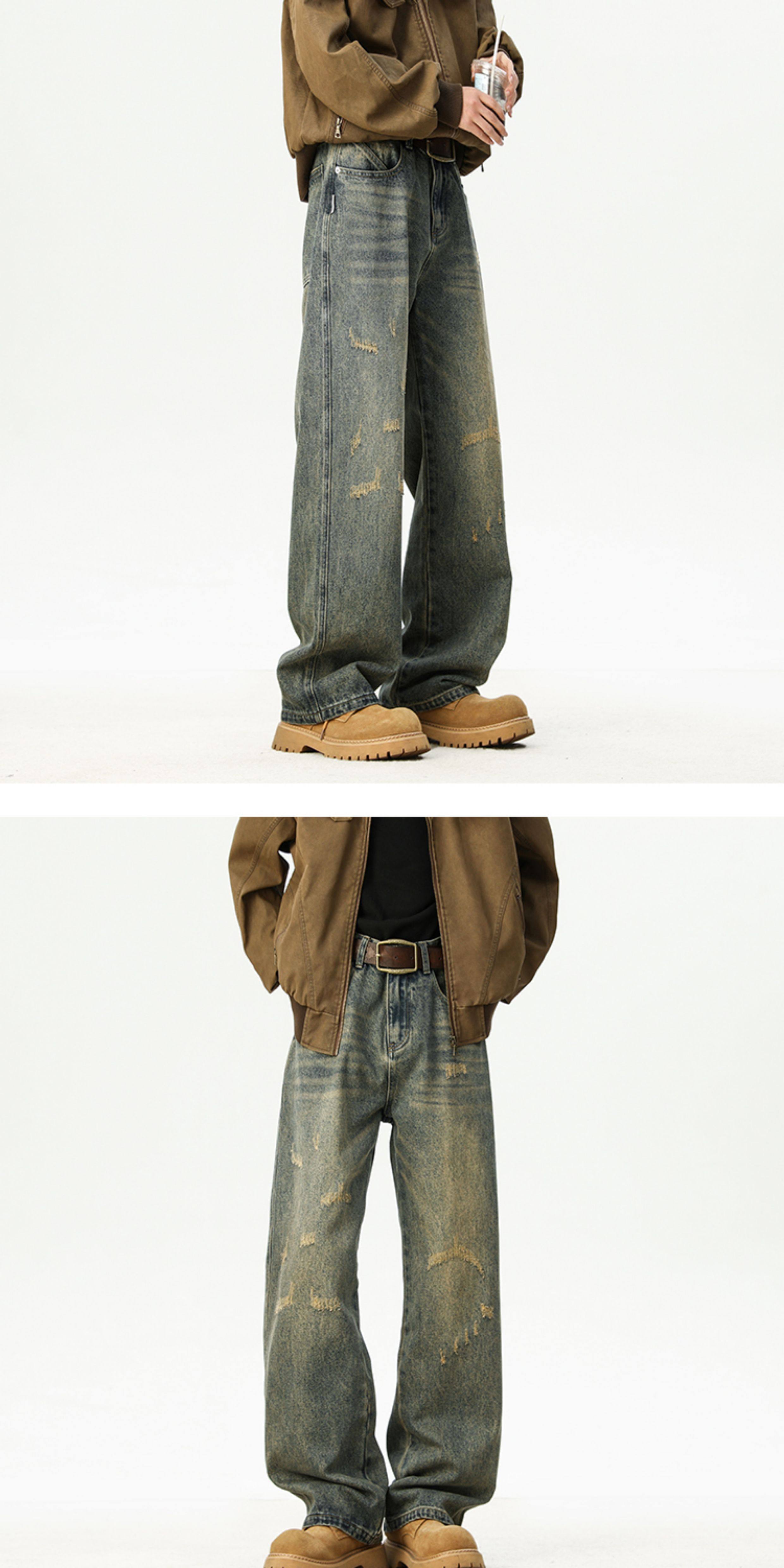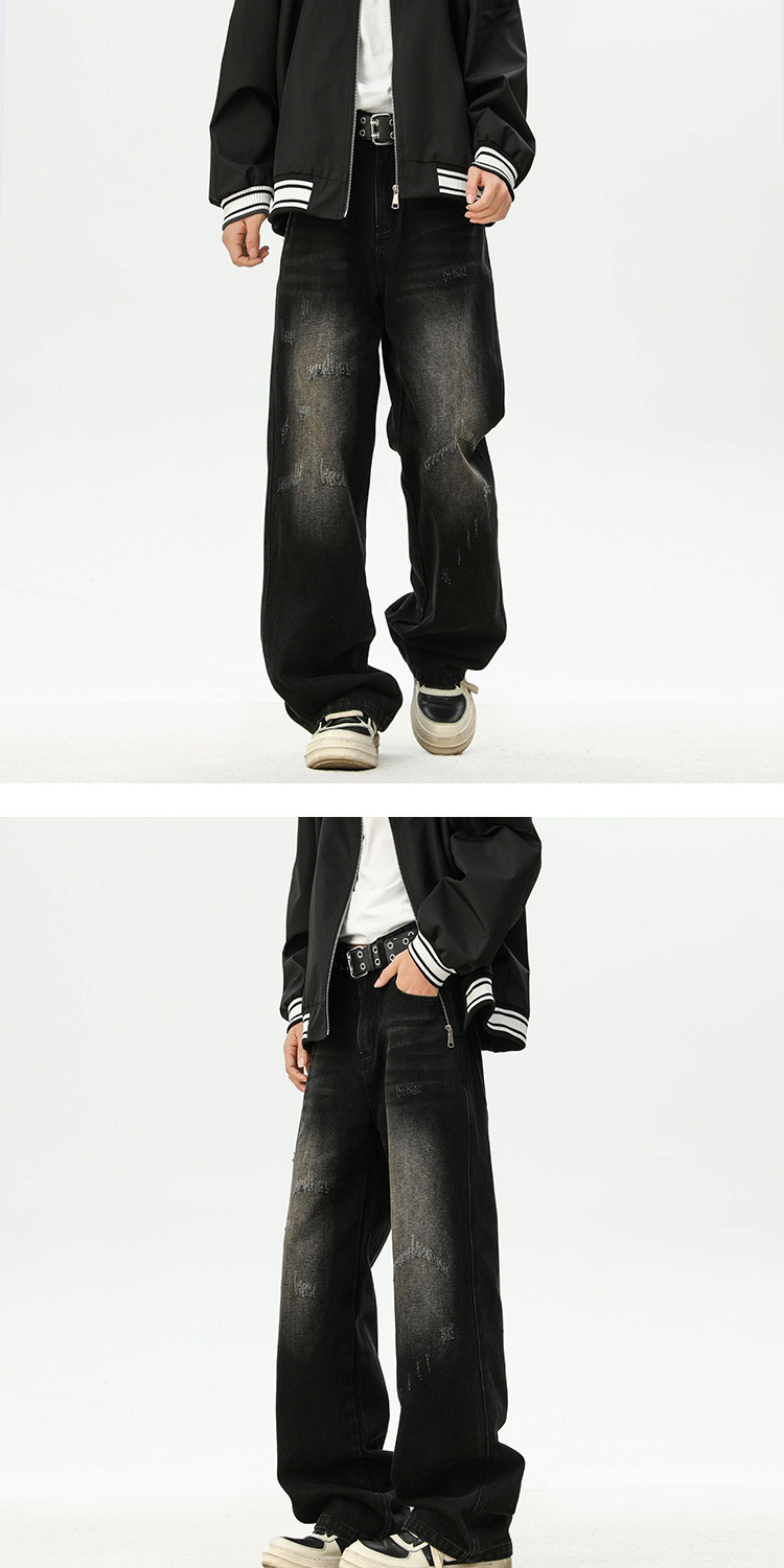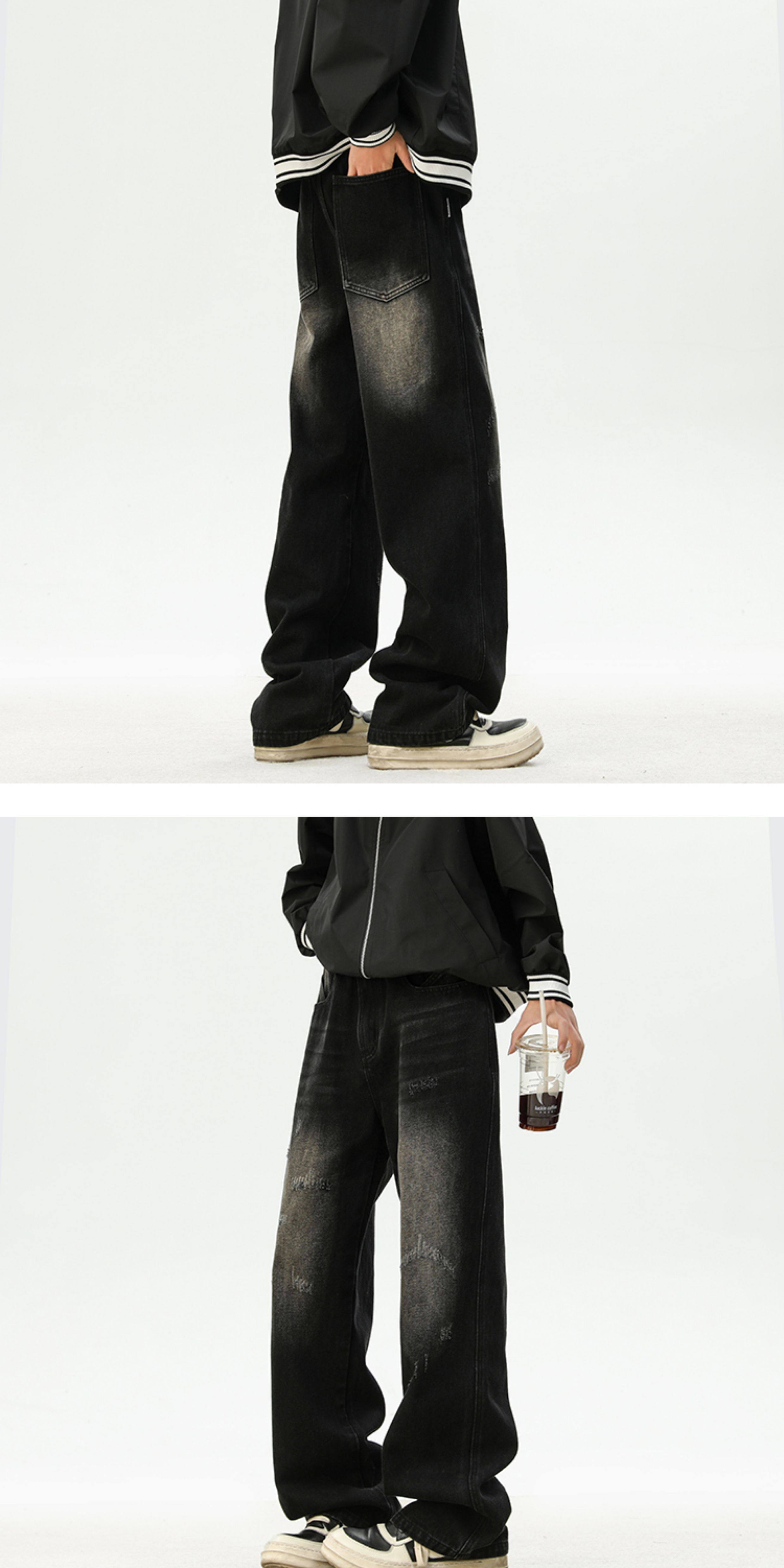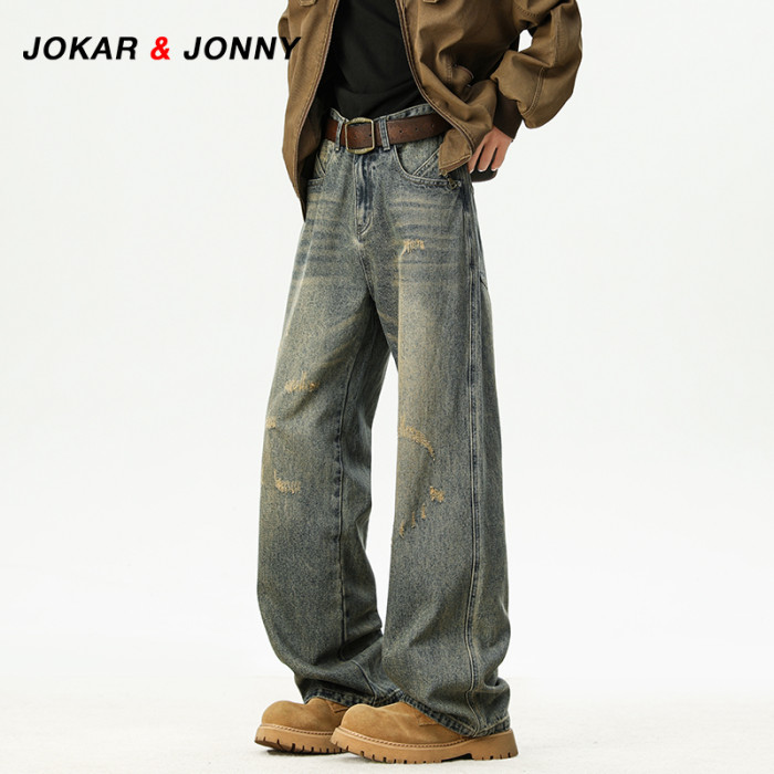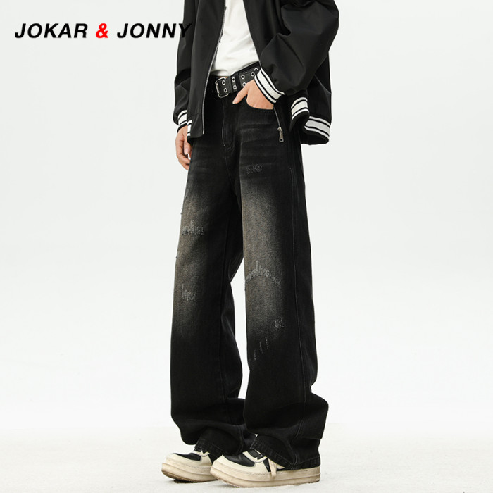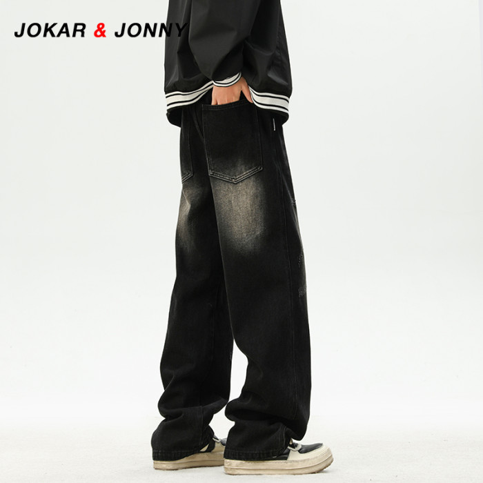 JOKAR&JONNY美式復古水洗做舊牛仔褲男秋季潮牌直筒寬鬆休閒長褲