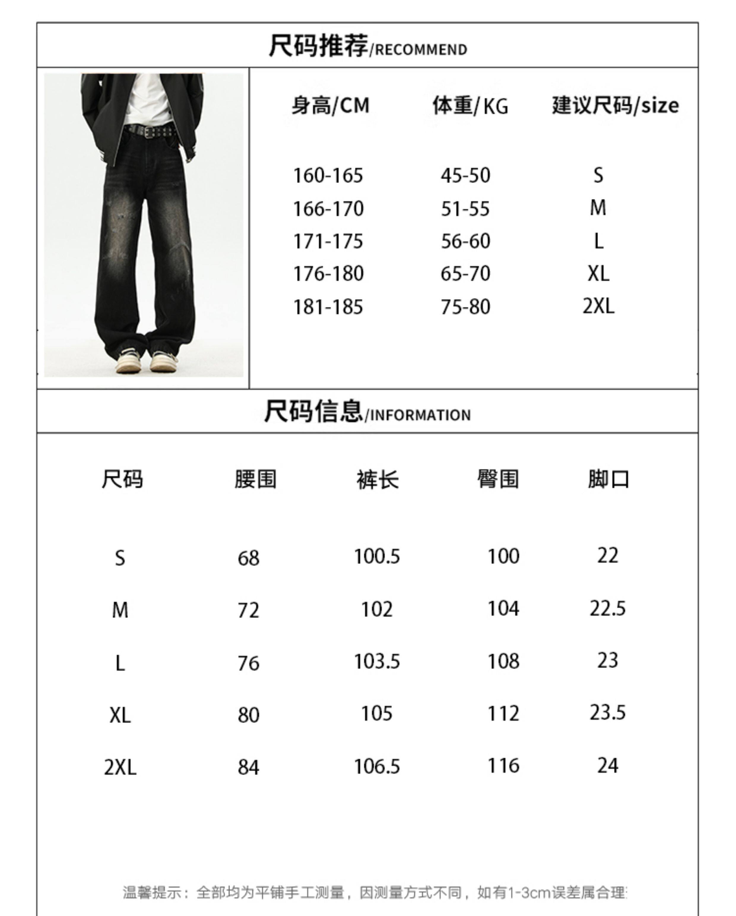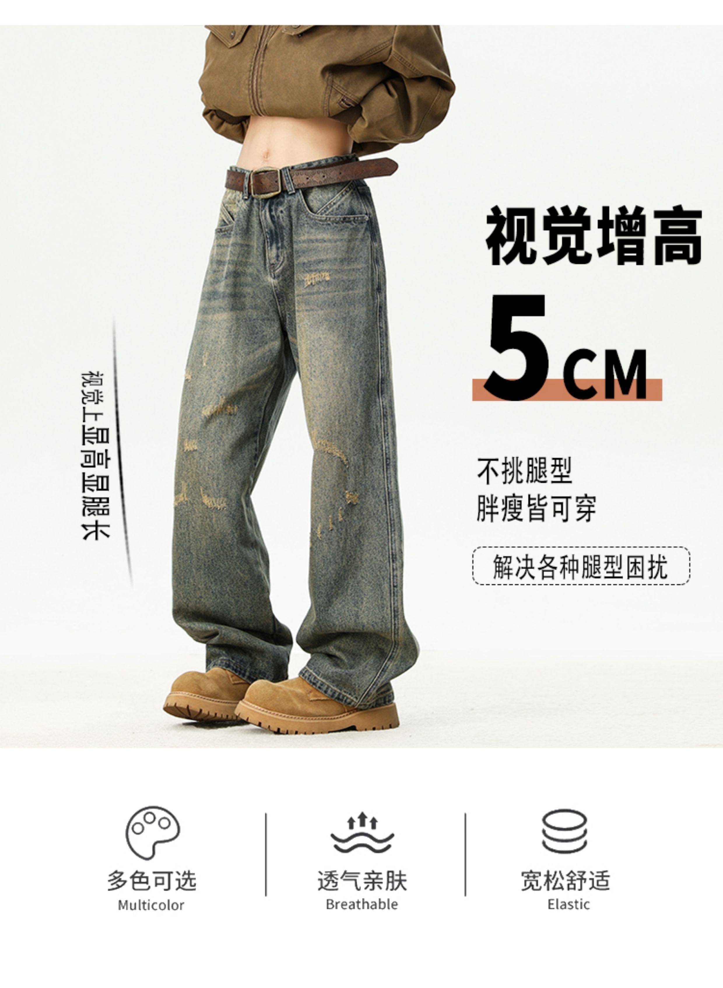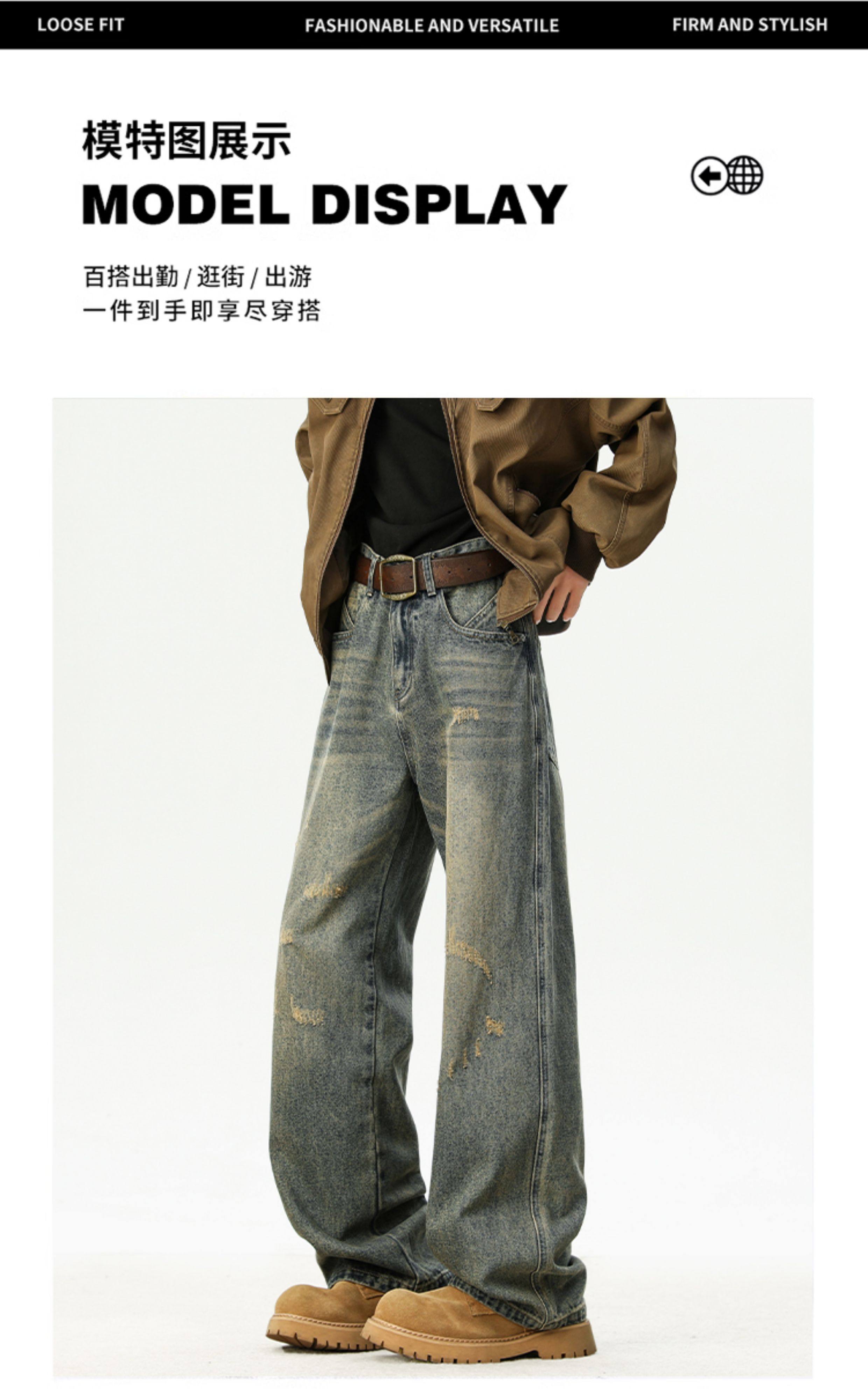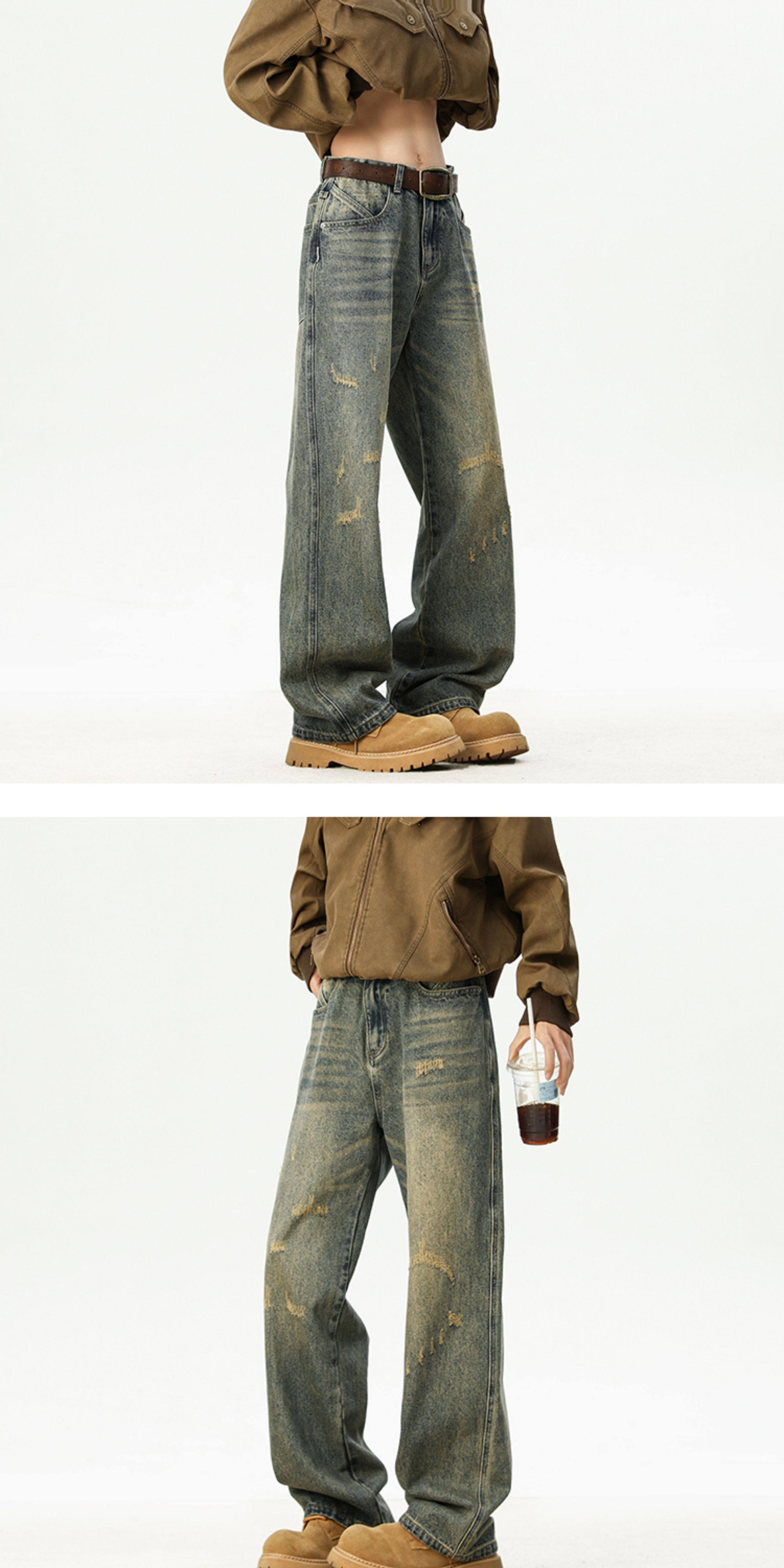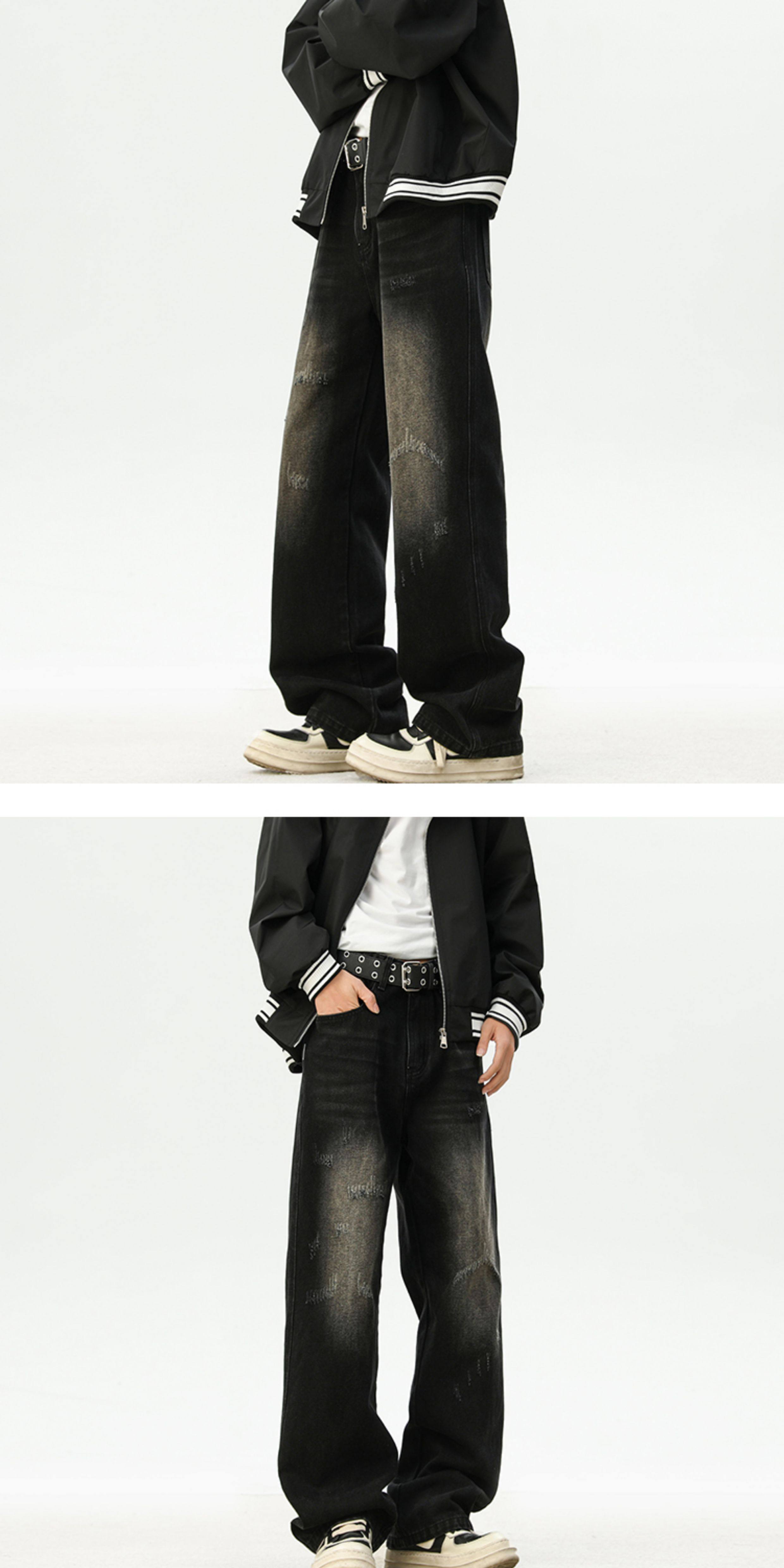 JOKAR&JONNY美式復古水洗做舊牛仔褲男秋季潮牌直筒寬鬆休閒長褲