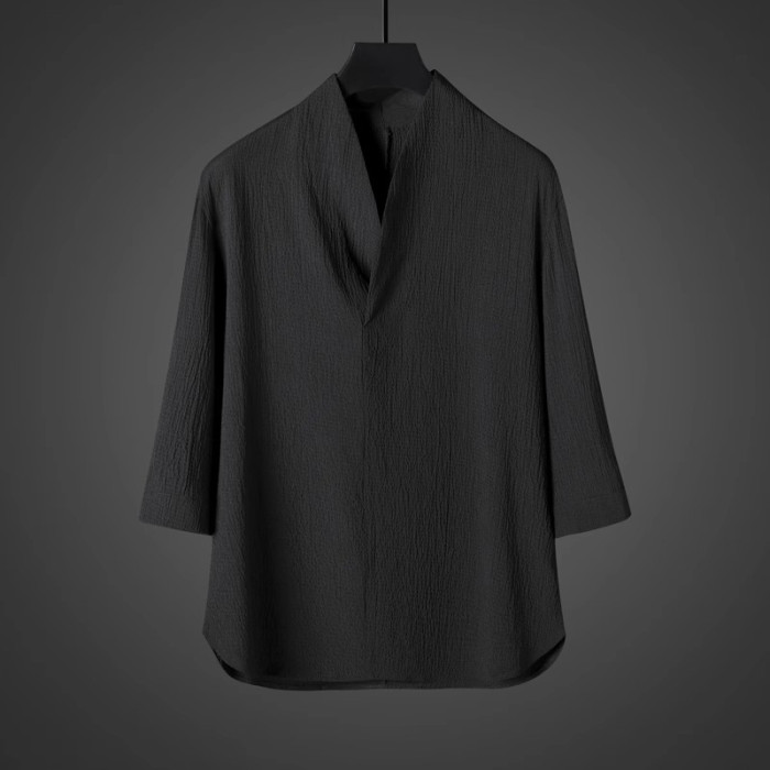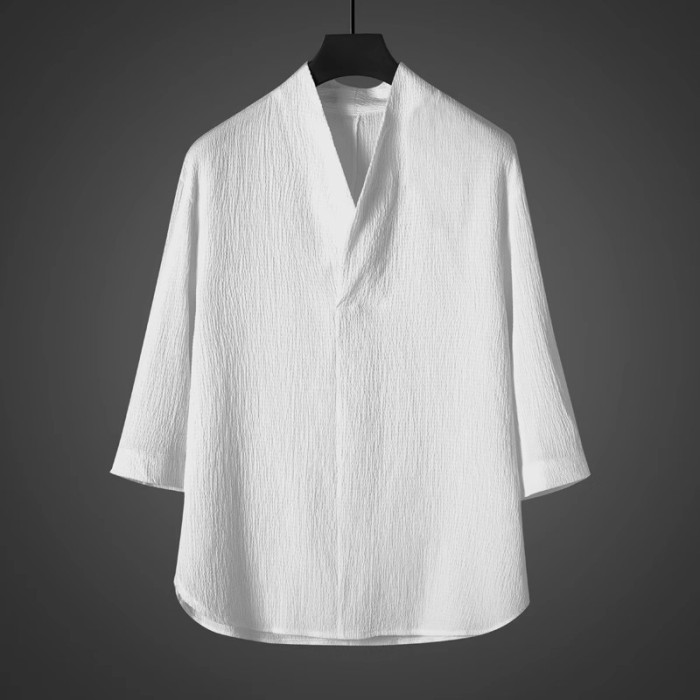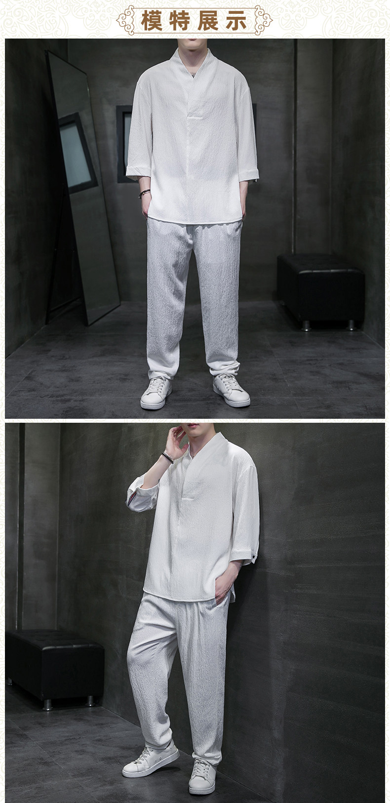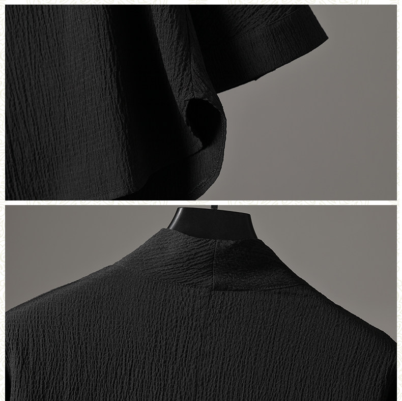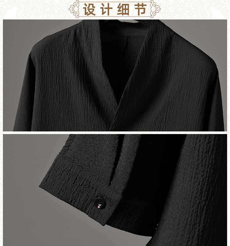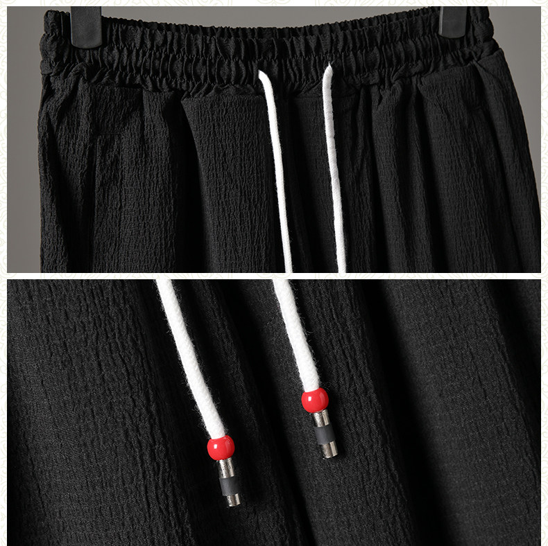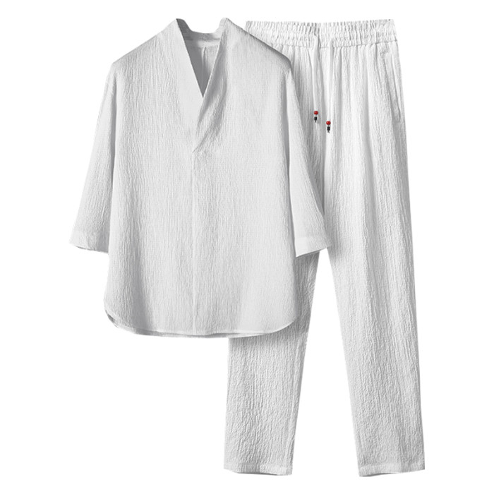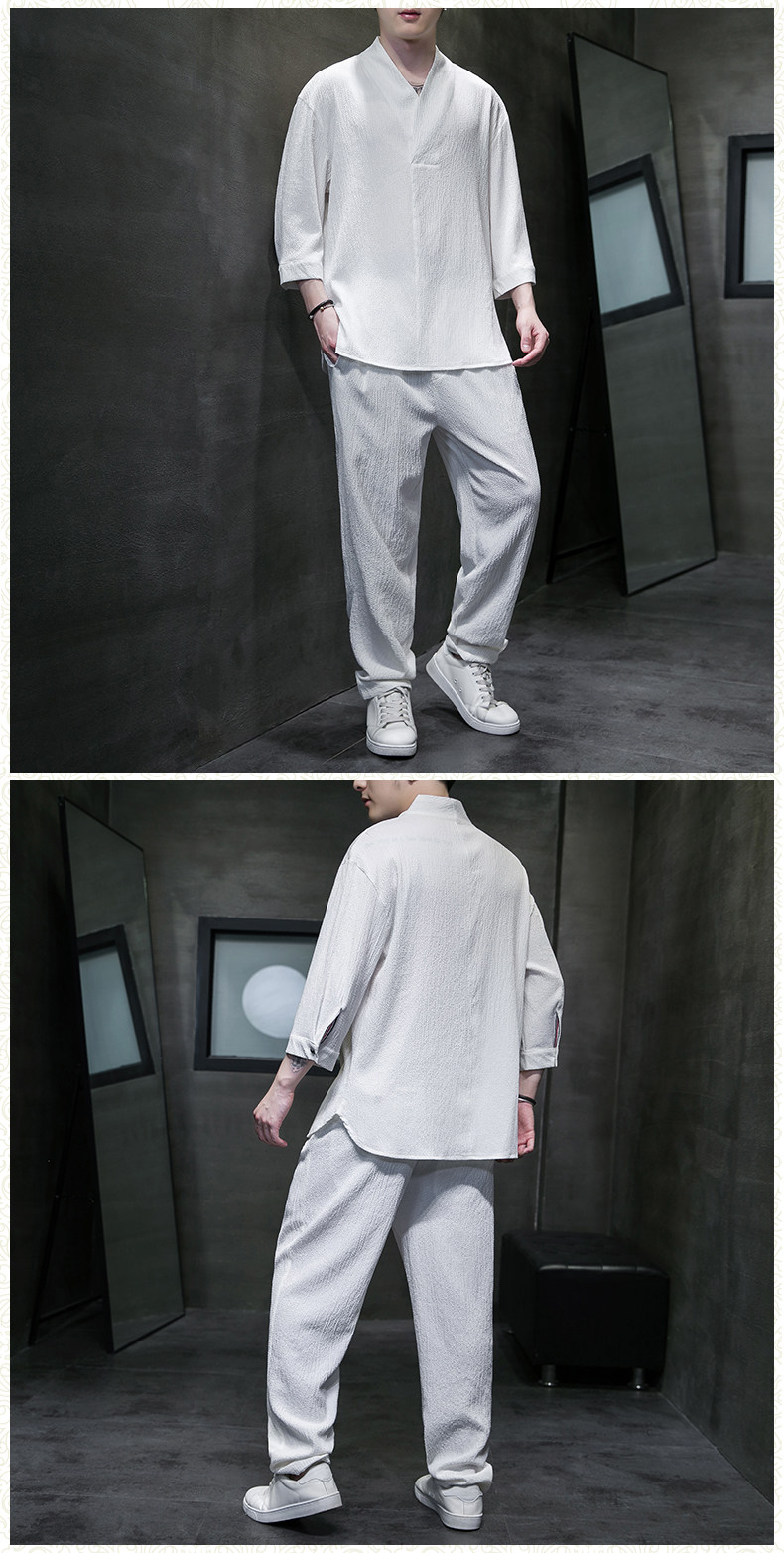 中式夏季男復古T恤寬鬆大碼褶皺上衣薄款透氣休閒兩件套百搭長褲