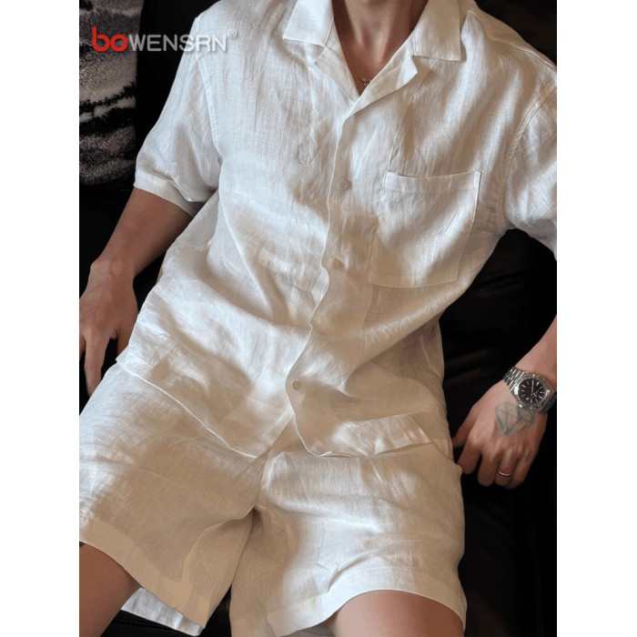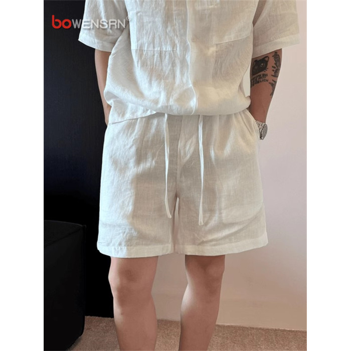 老錢風白色亞麻短褲男士2026新款夏季外穿輕薄透氣休閒五分褲男款