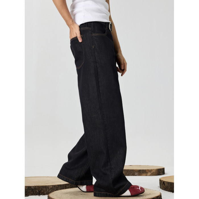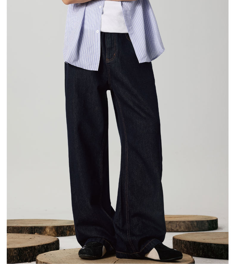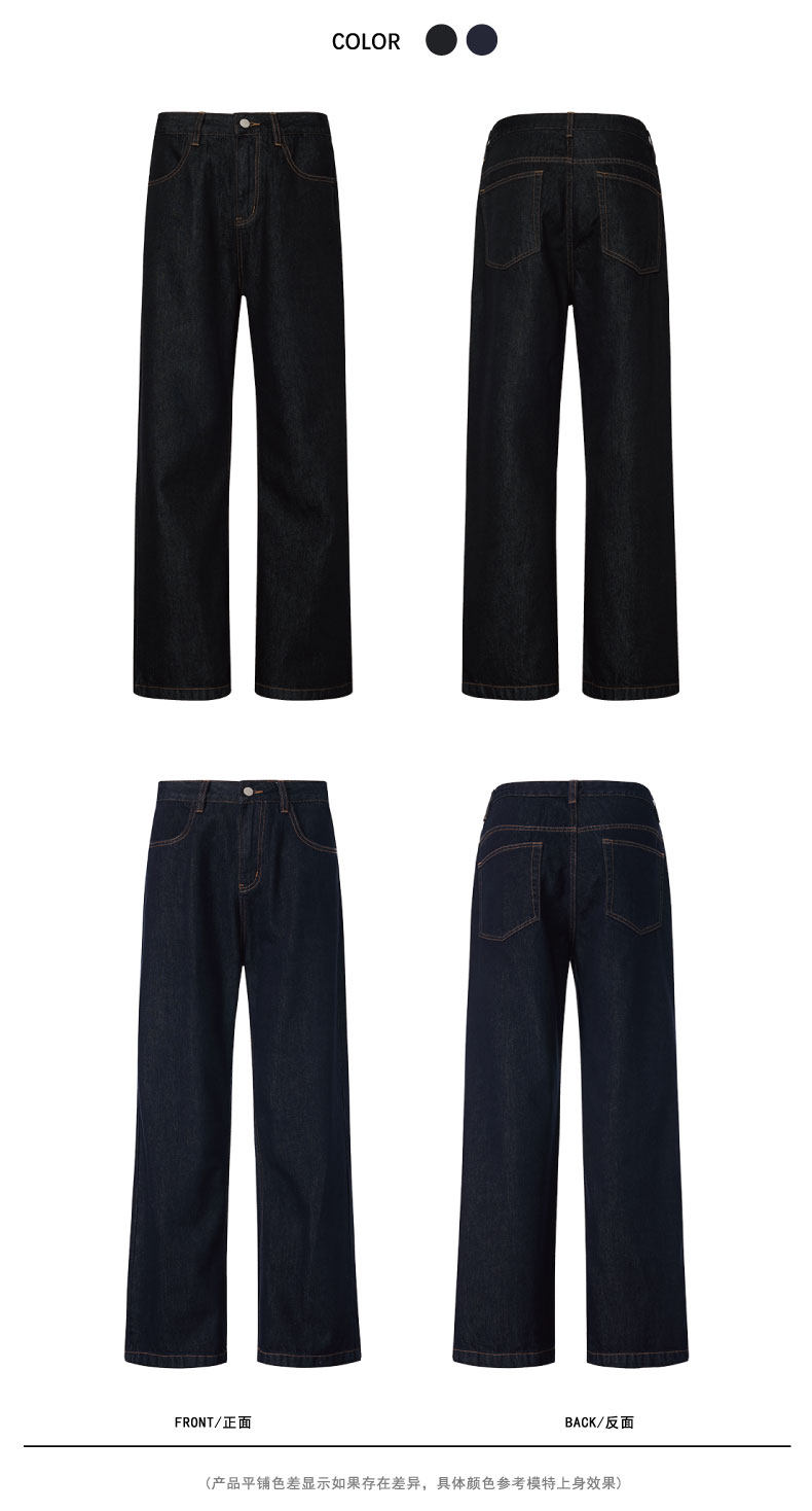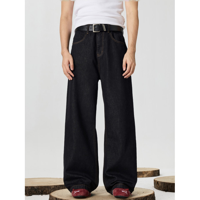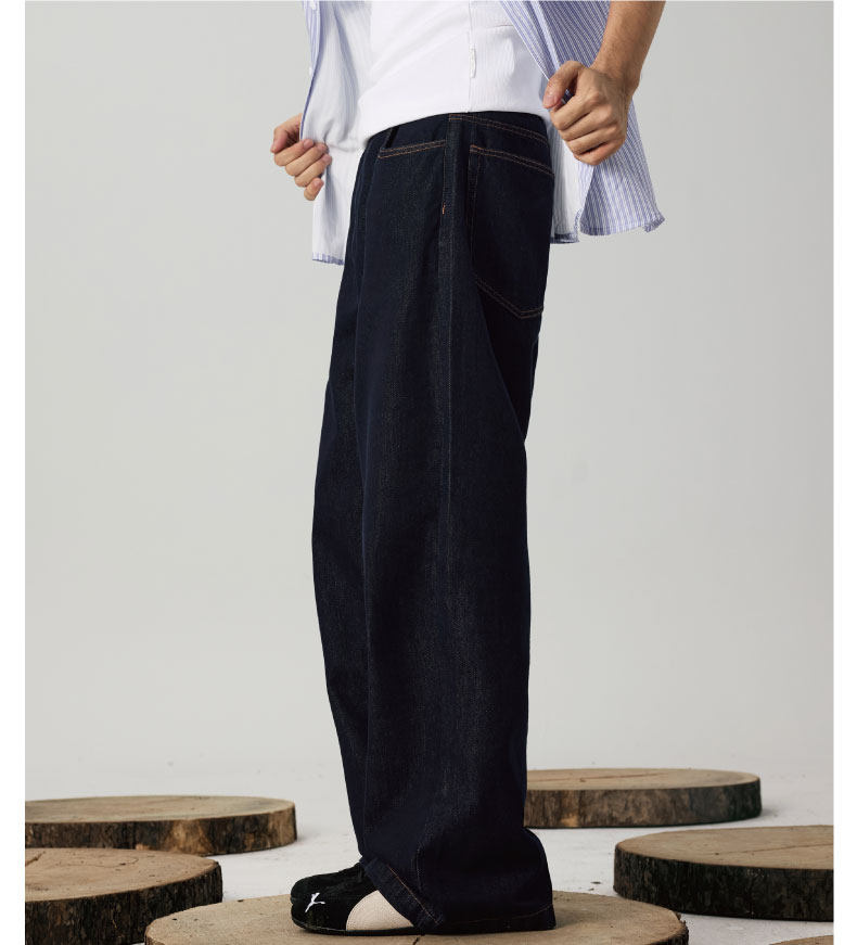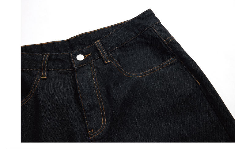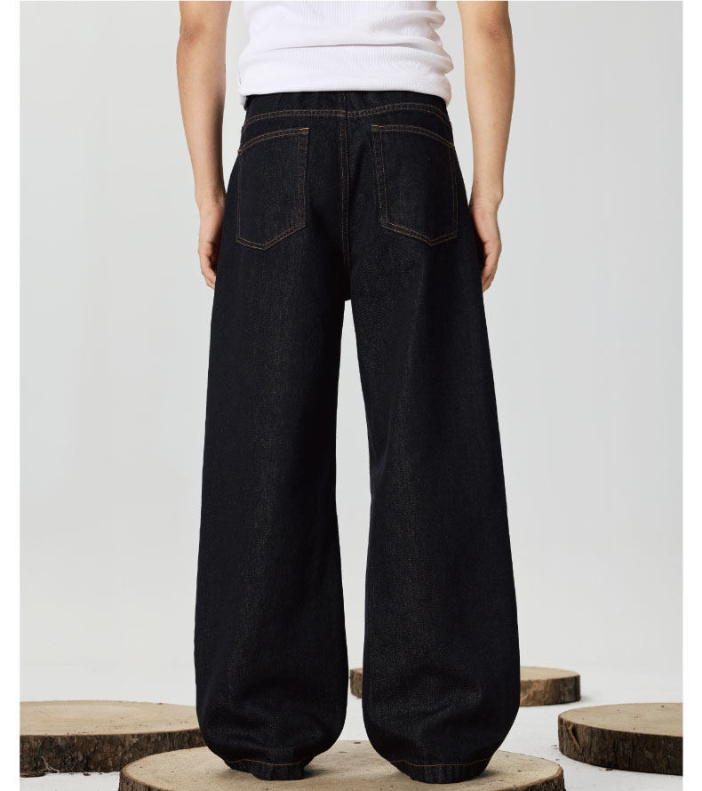 GTRG復古黑藍色丹甯寬鬆A字茶色明線不掉色14.2盎司原色牛仔長褲