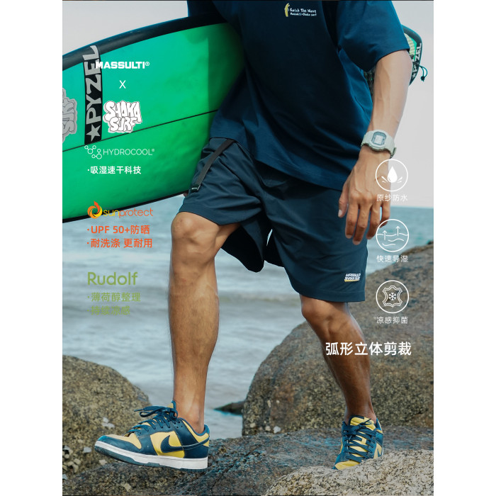 【沖浪聯名】MASSULTI x SHAKA超輕機械四面彈 涼感尼龍沙灘短褲