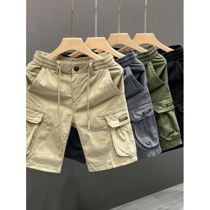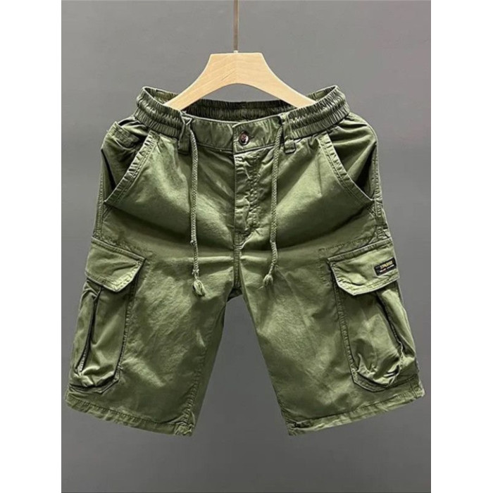 餘文樂復古潮牌寬鬆休閒水洗五分褲重磅純棉大口袋工裝短褲中褲男
