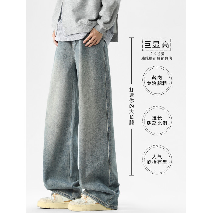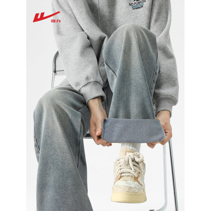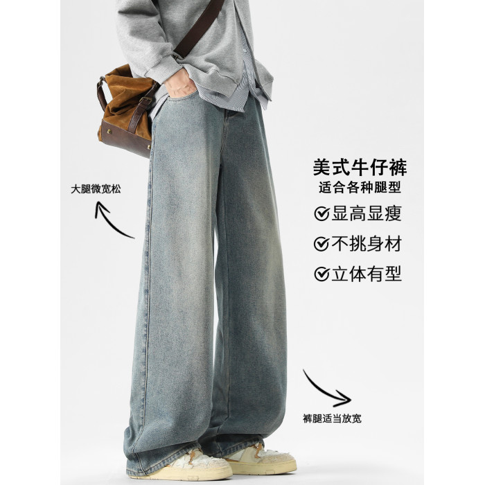 廻力春季2026新款牛仔褲男士寬鬆濶腿男生直筒秋冬加絨加厚長褲子
