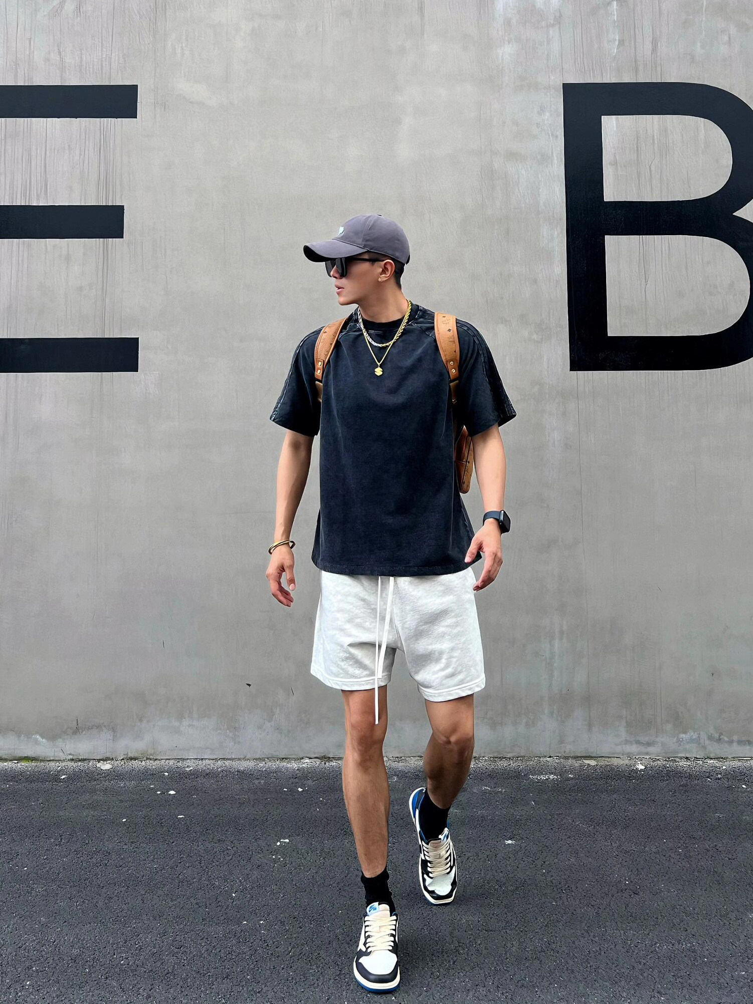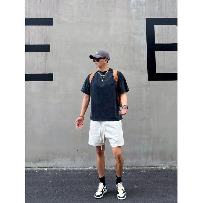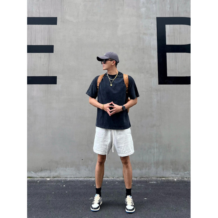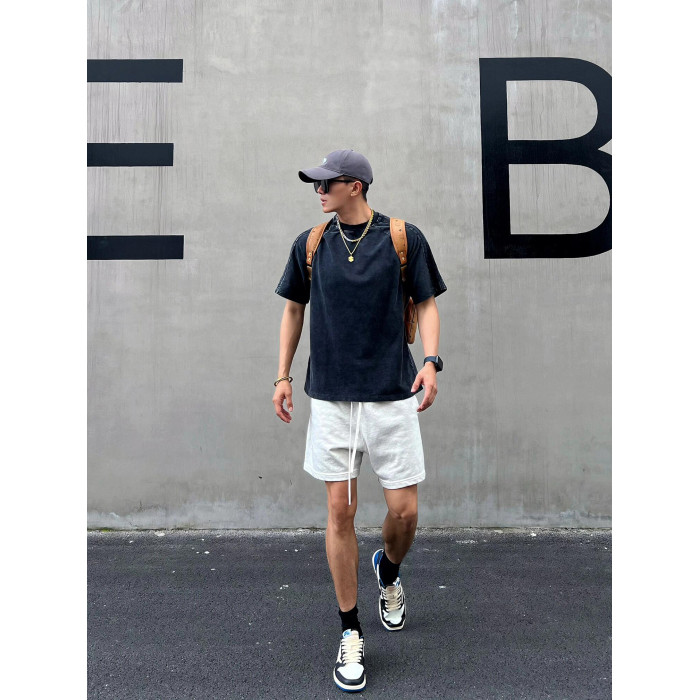 美式重磅運動短褲男夏季寬鬆休閒爆款純色高級感痞帥褲子潮牌百搭