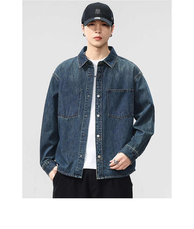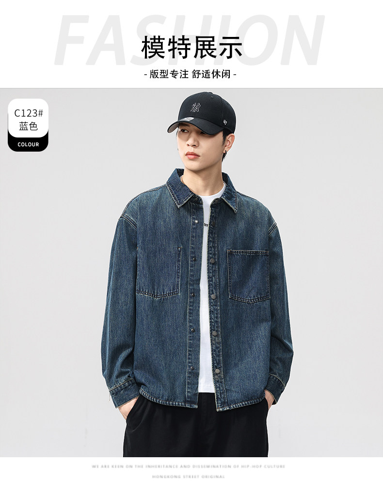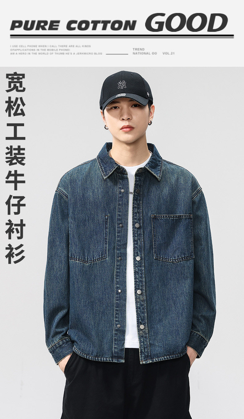 高級潮牌牛仔襯衫男外套2025新款秋季男裝痞帥男士休閒襯衣春秋款