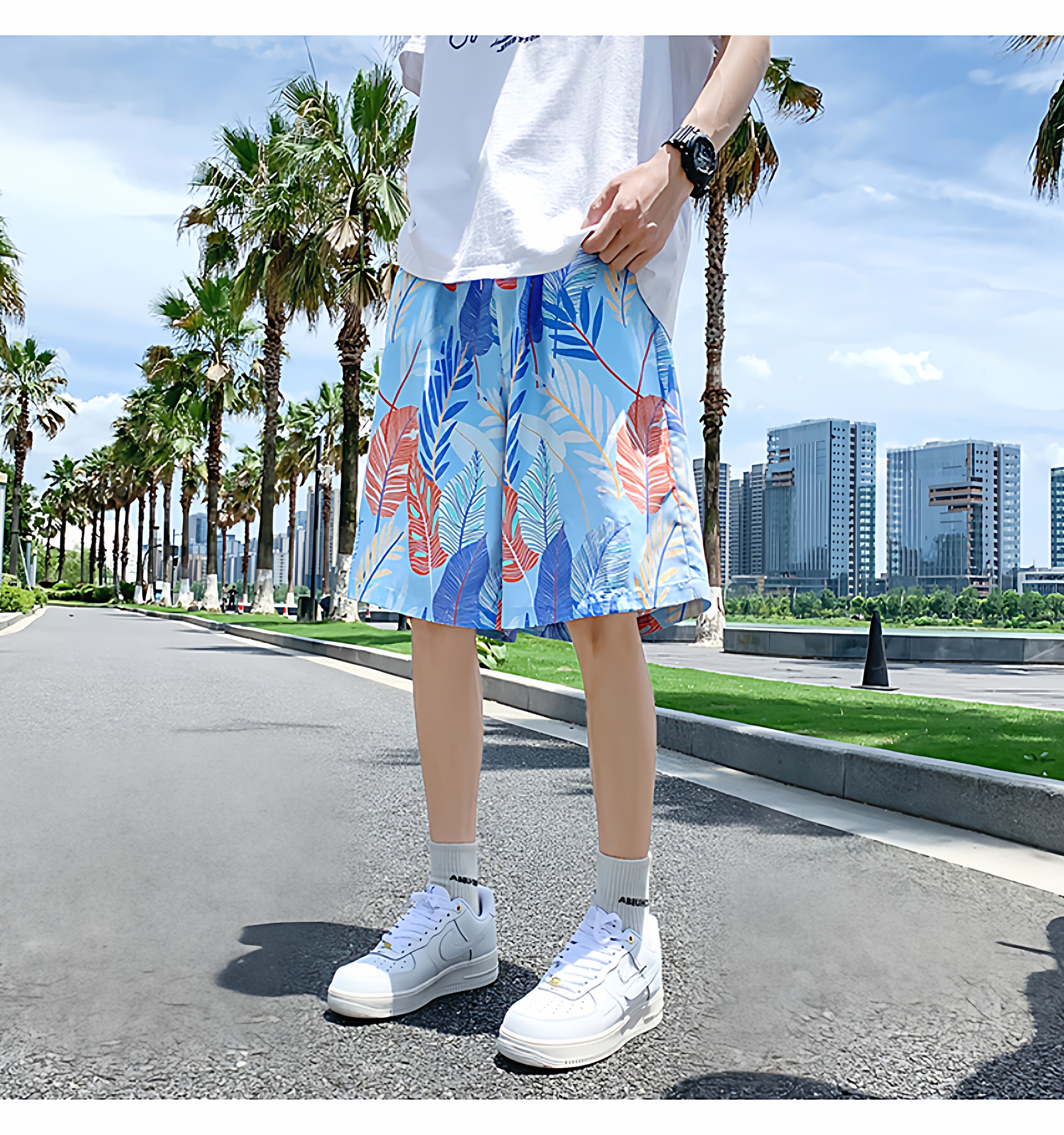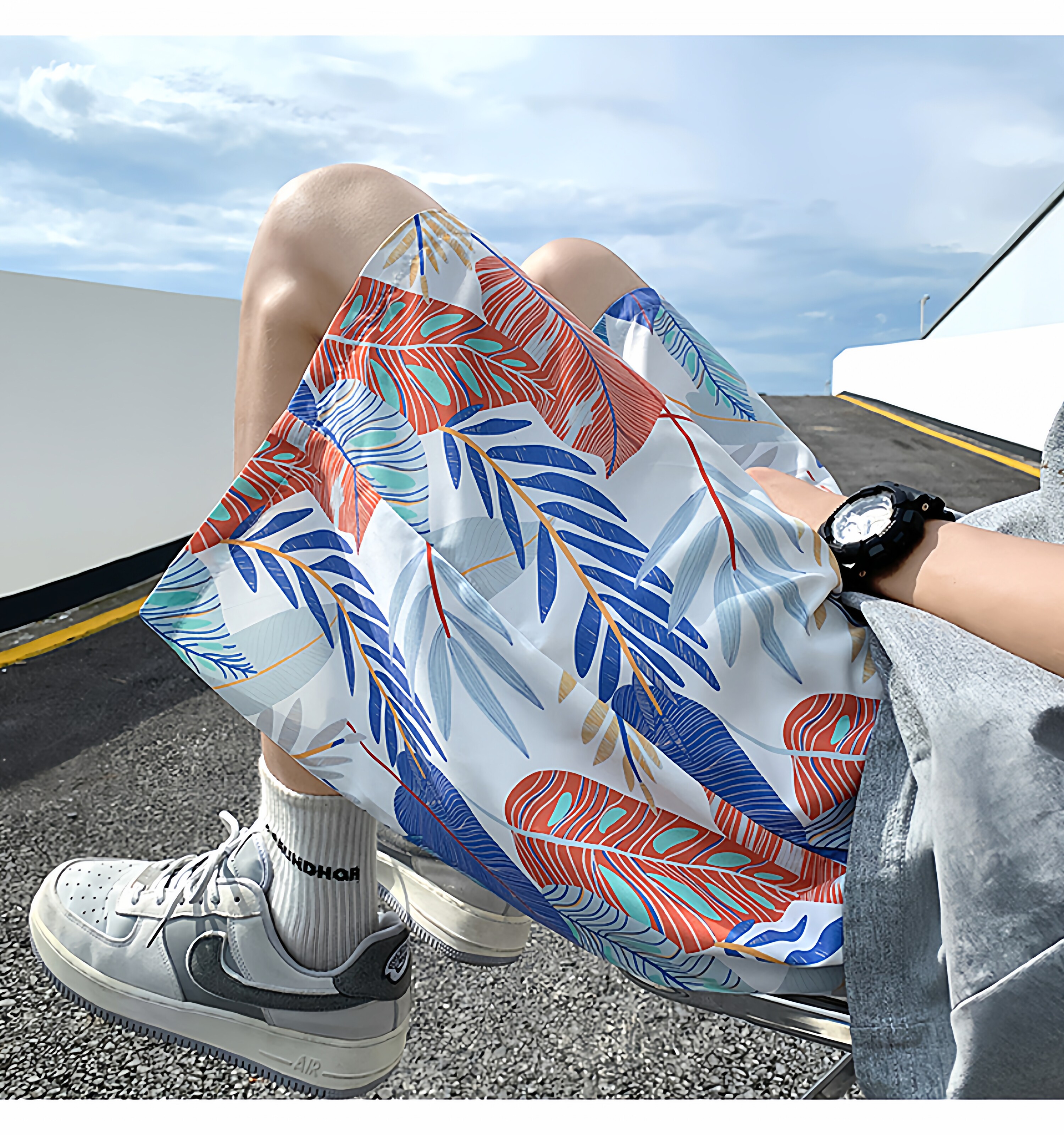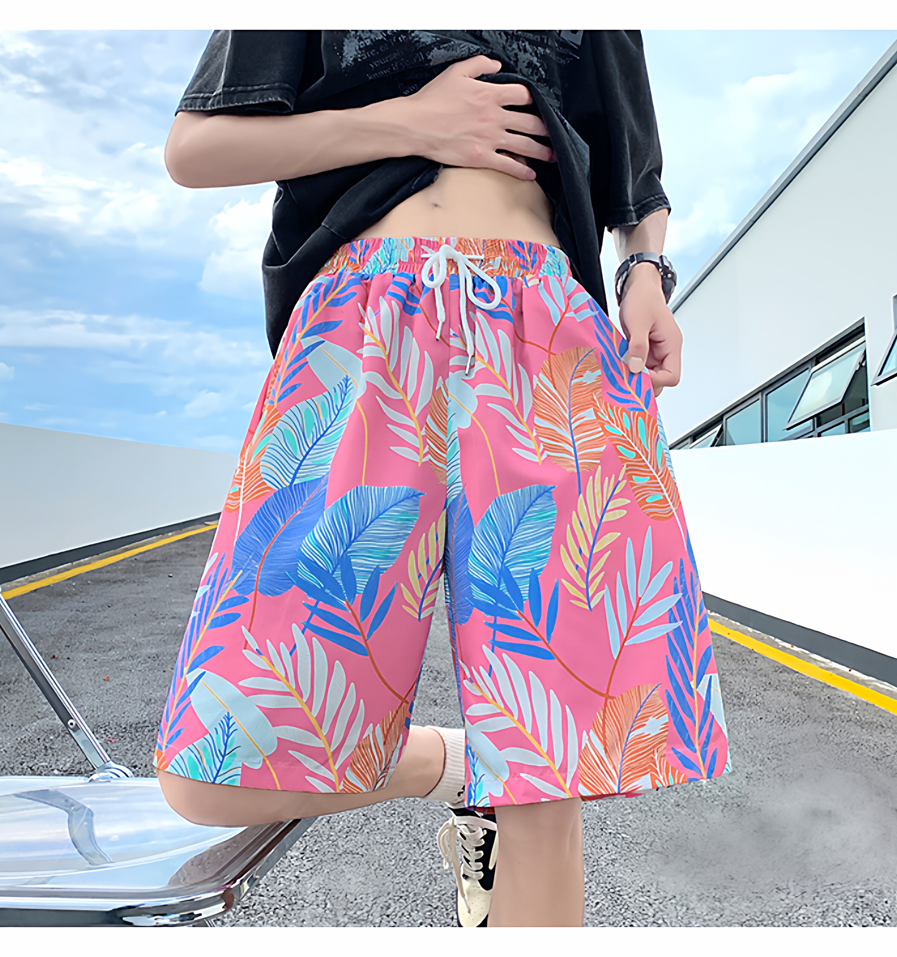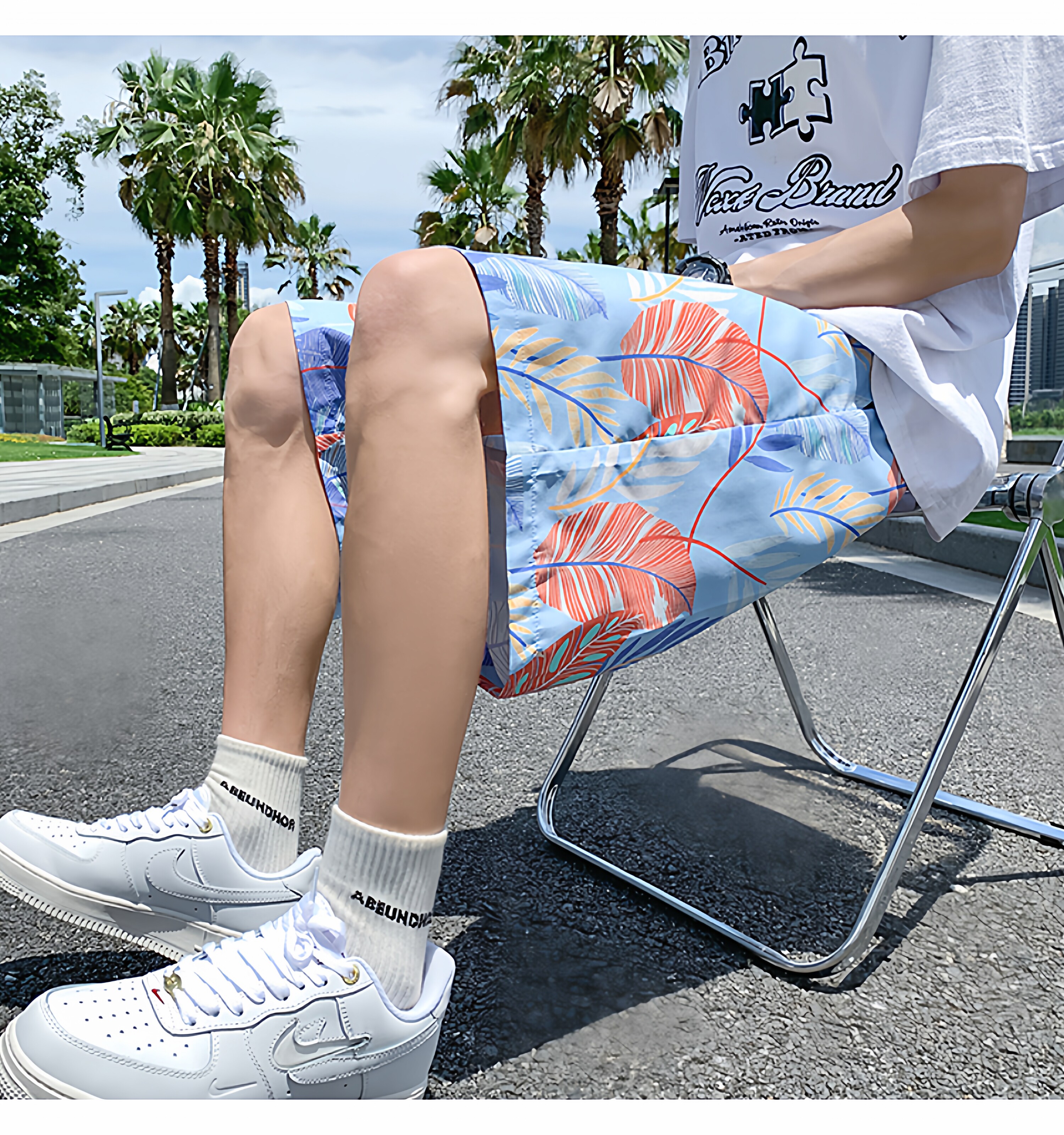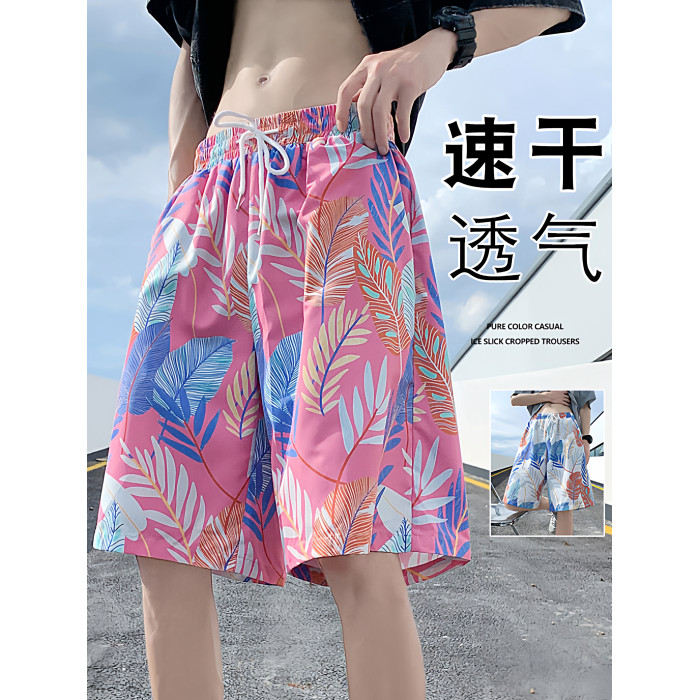 沙灘短褲男夏季薄款速乾泳褲潮流印花大褲衩寬鬆睡褲休閒五分褲子