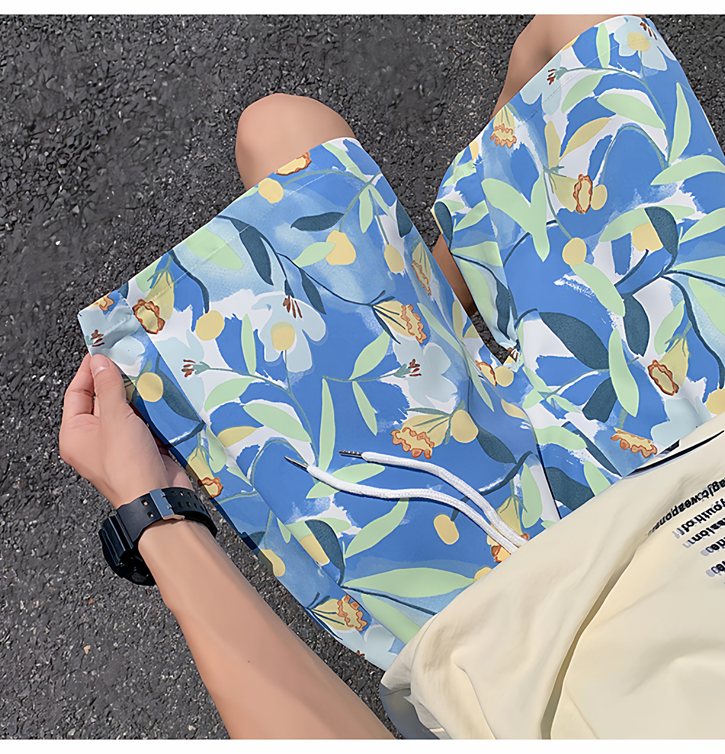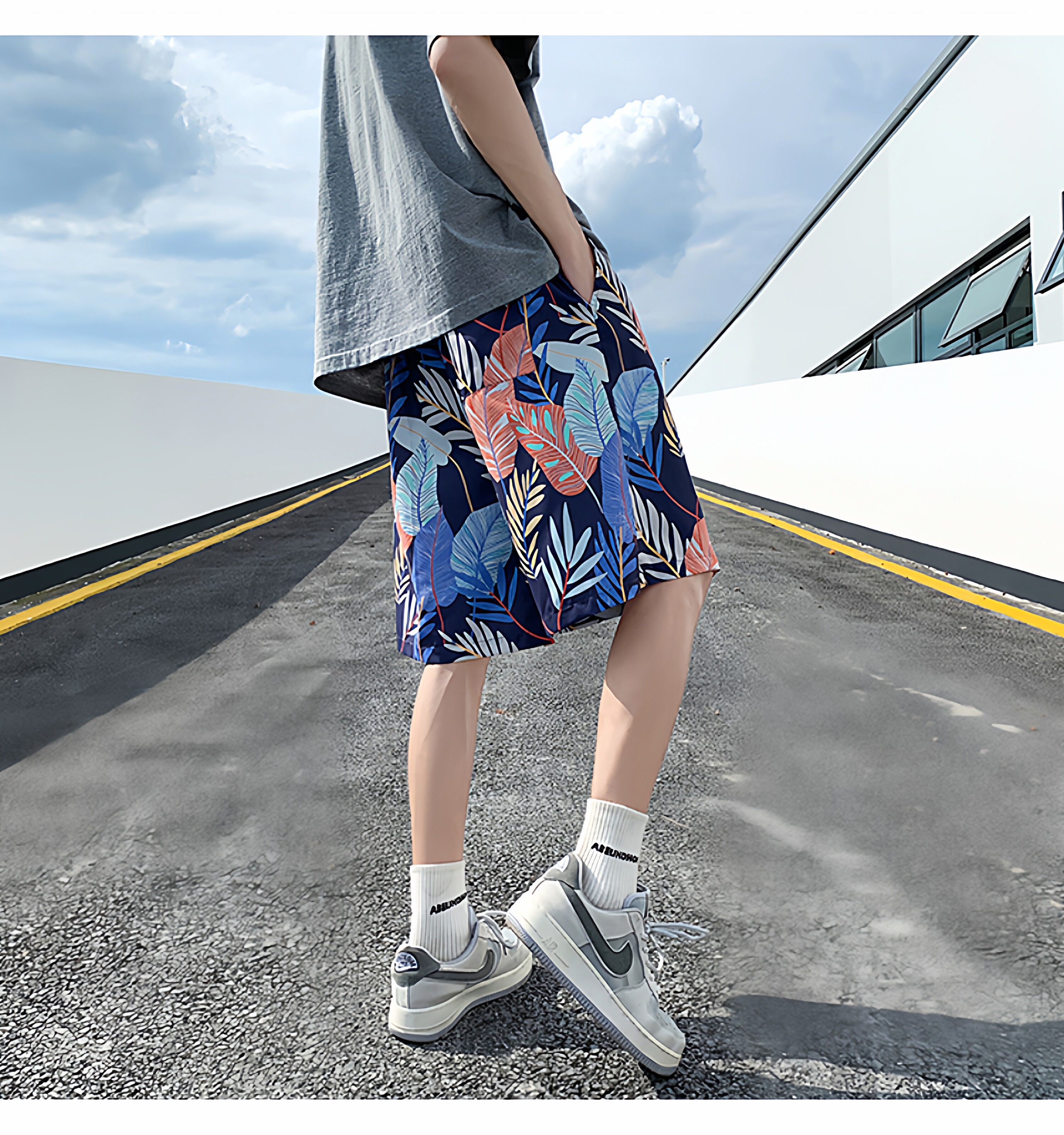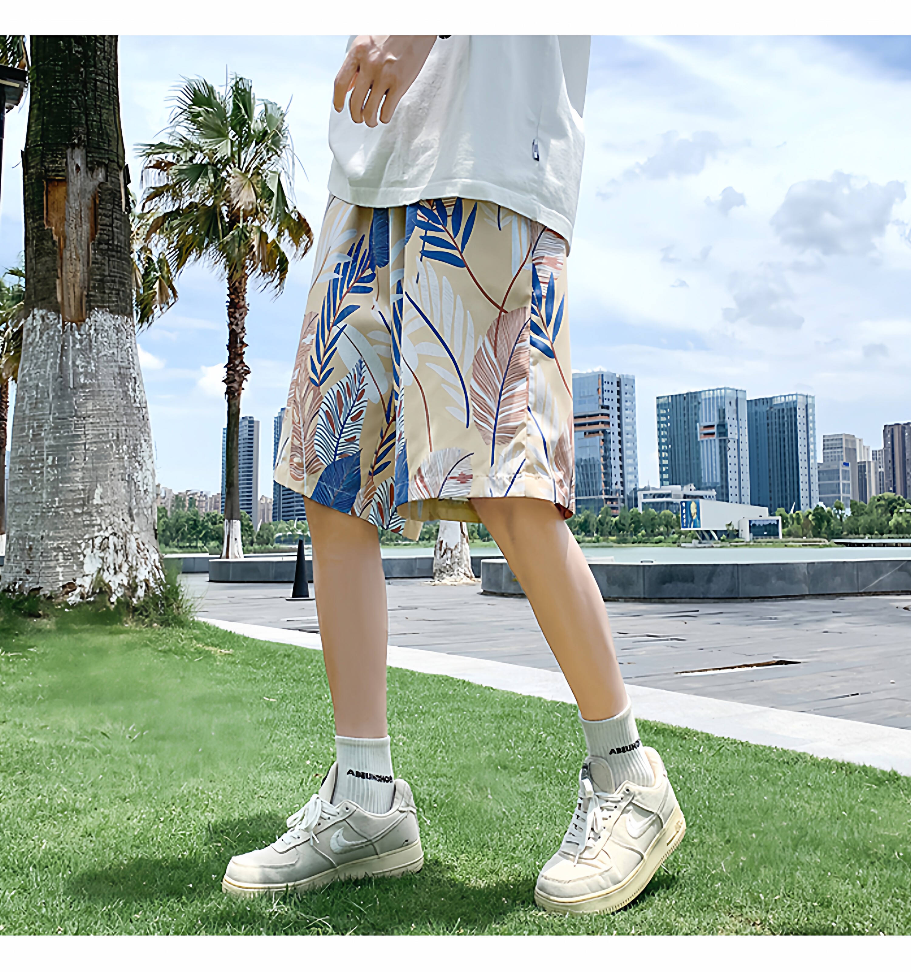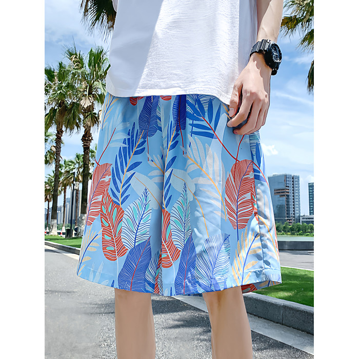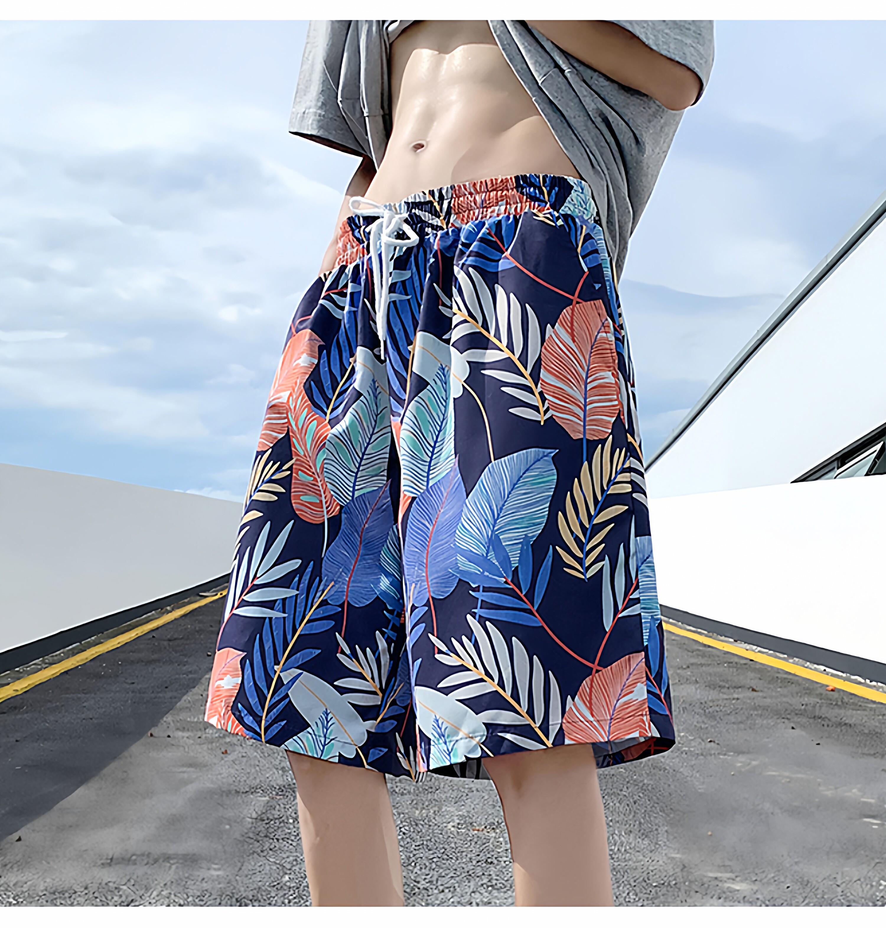 沙灘短褲男夏季薄款速乾泳褲潮流印花大褲衩寬鬆睡褲休閒五分褲子