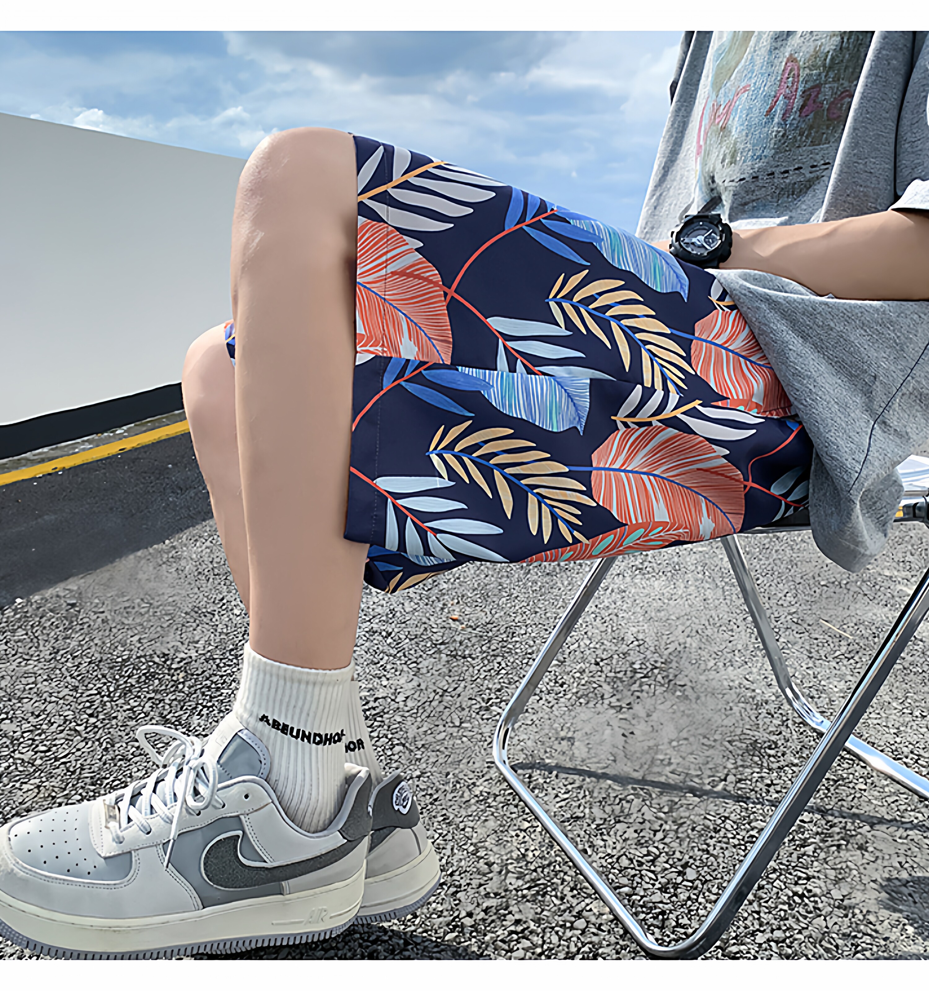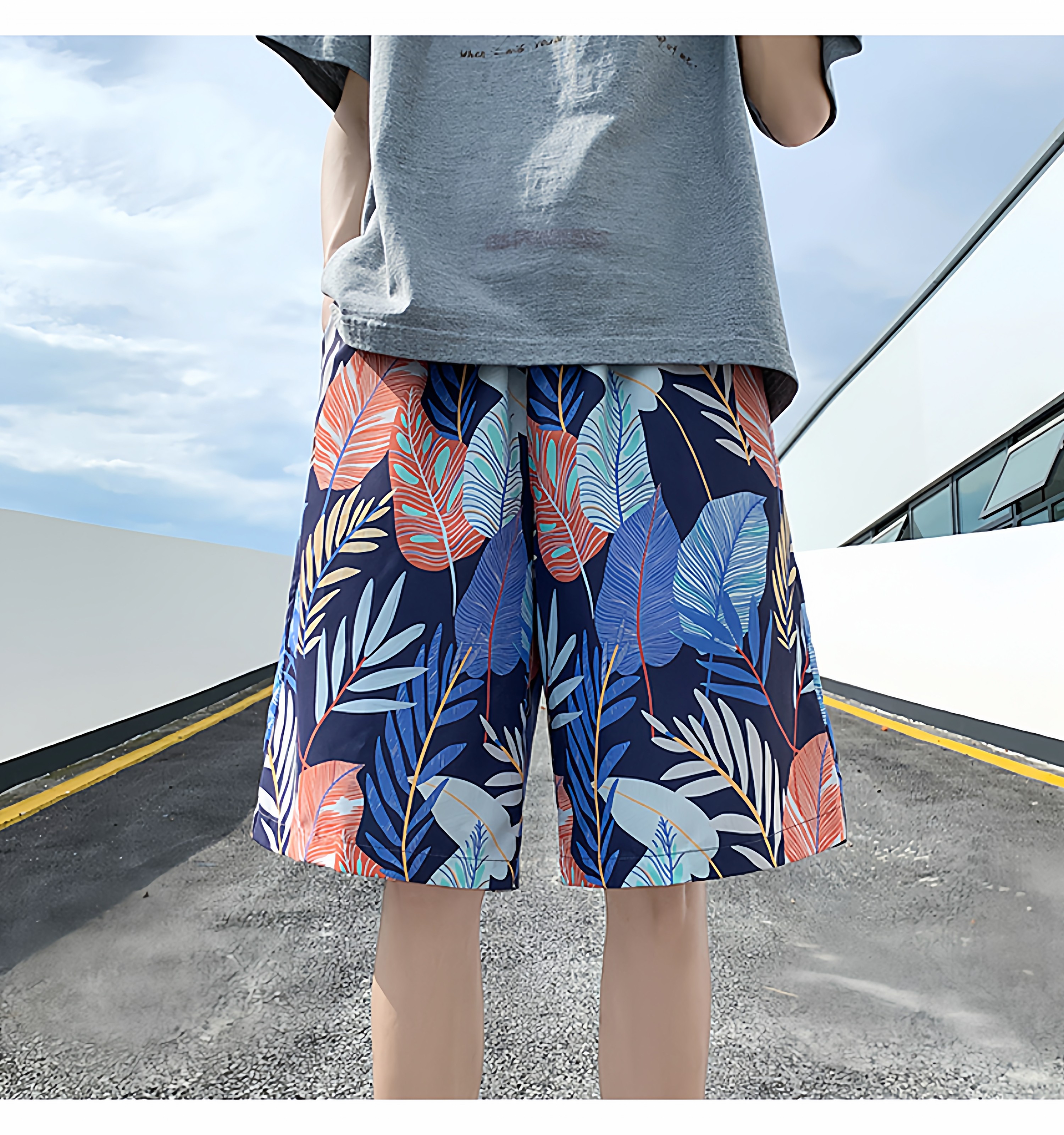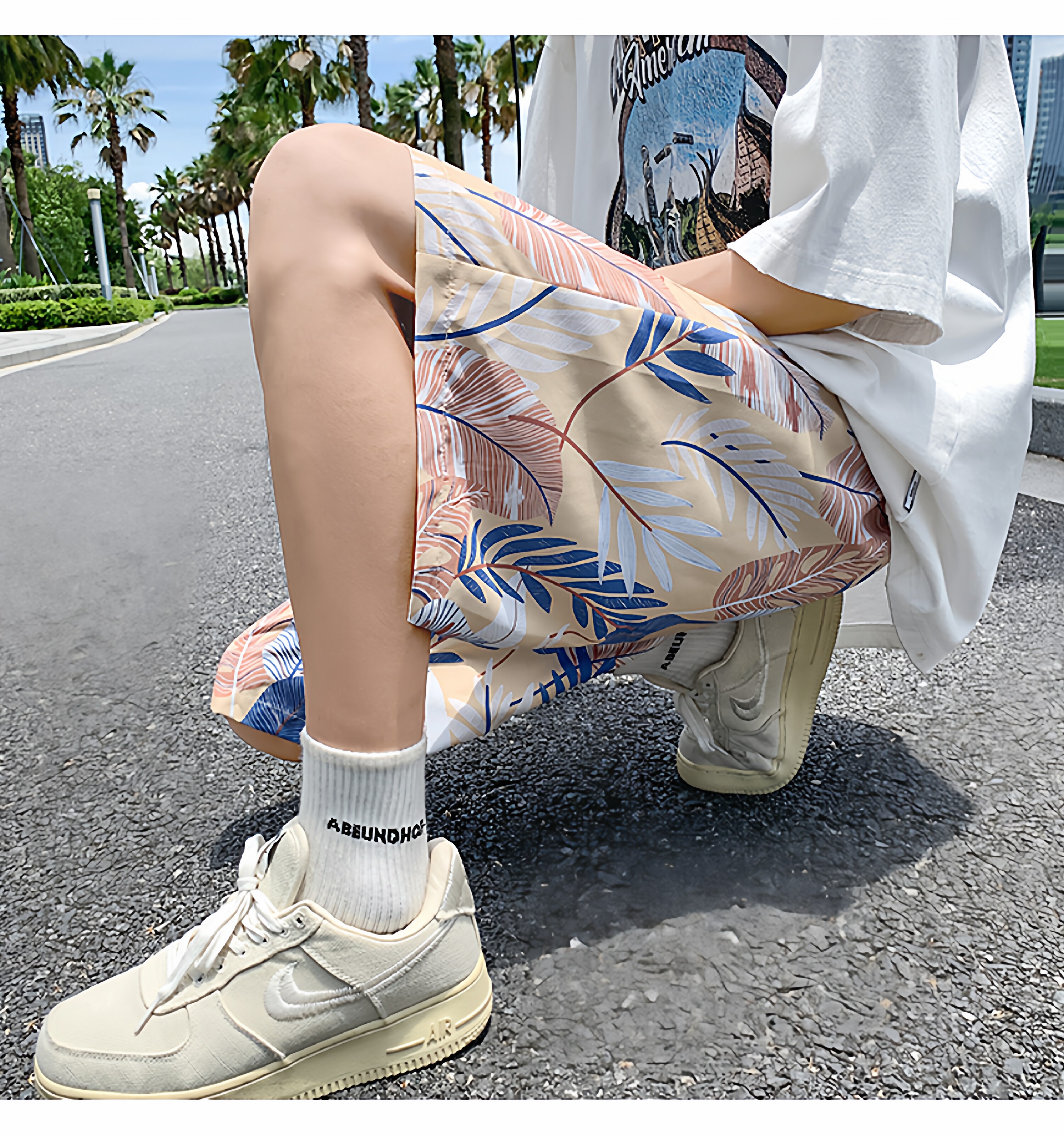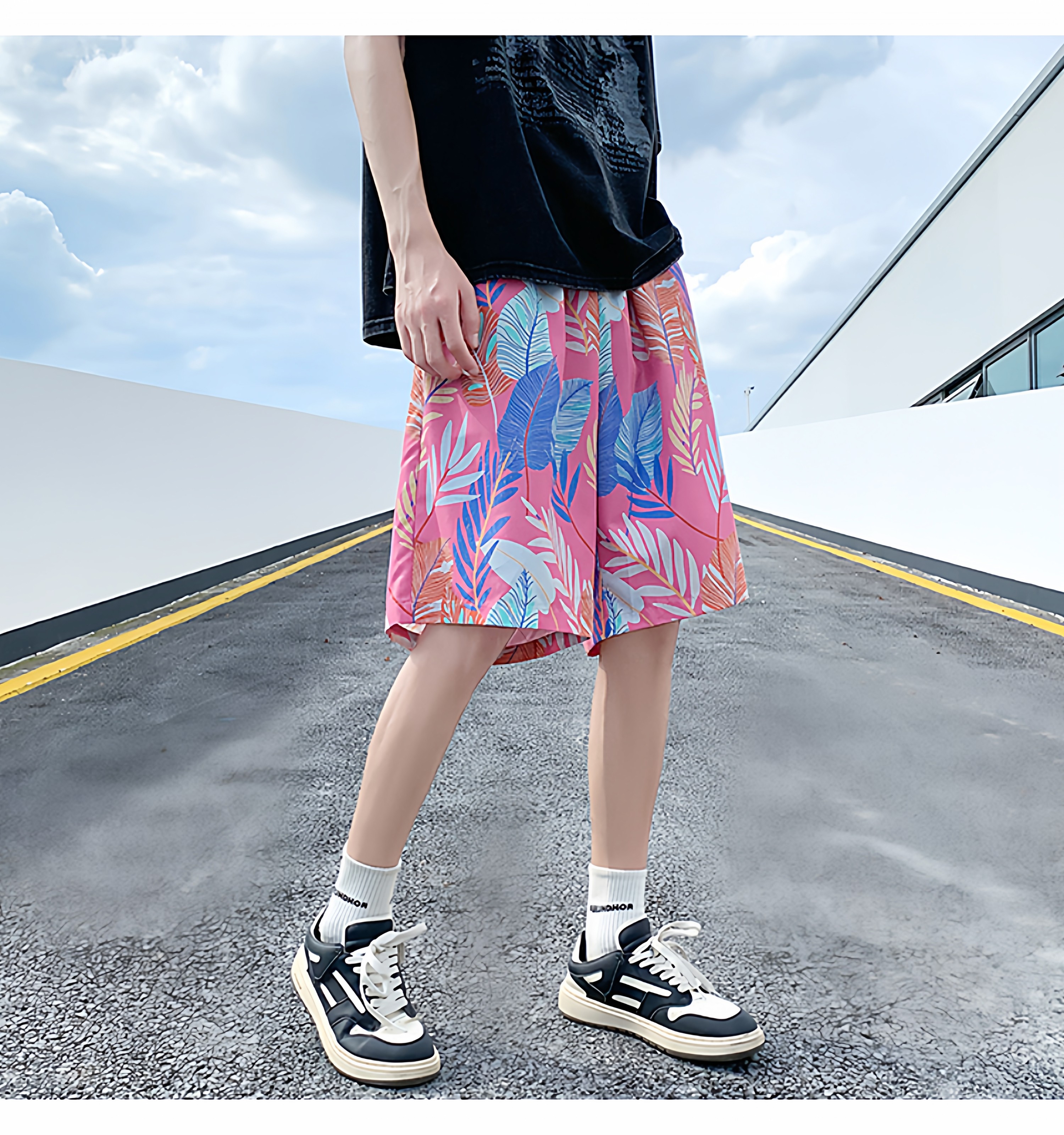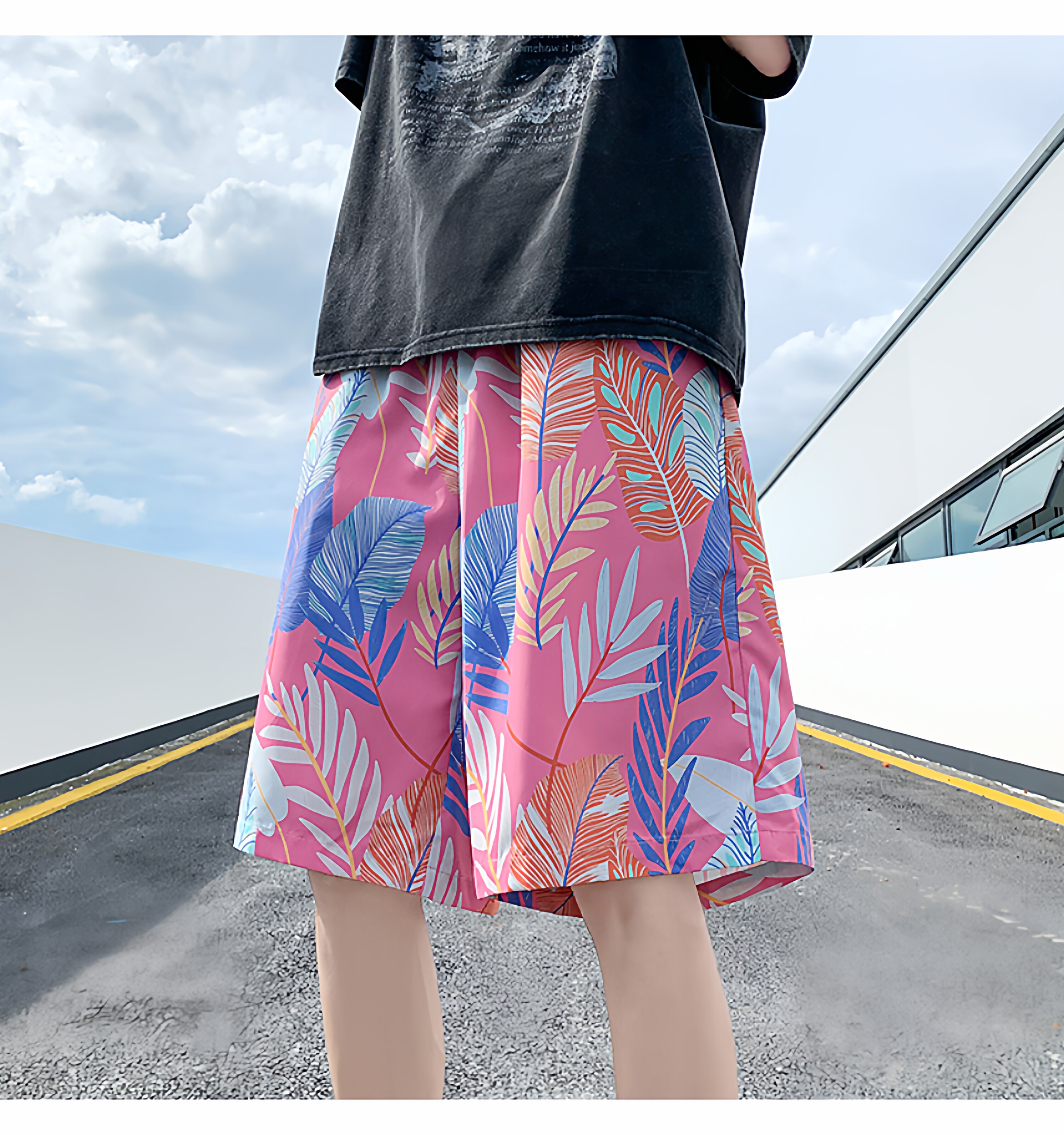 沙灘短褲男夏季薄款速乾泳褲潮流印花大褲衩寬鬆睡褲休閒五分褲子