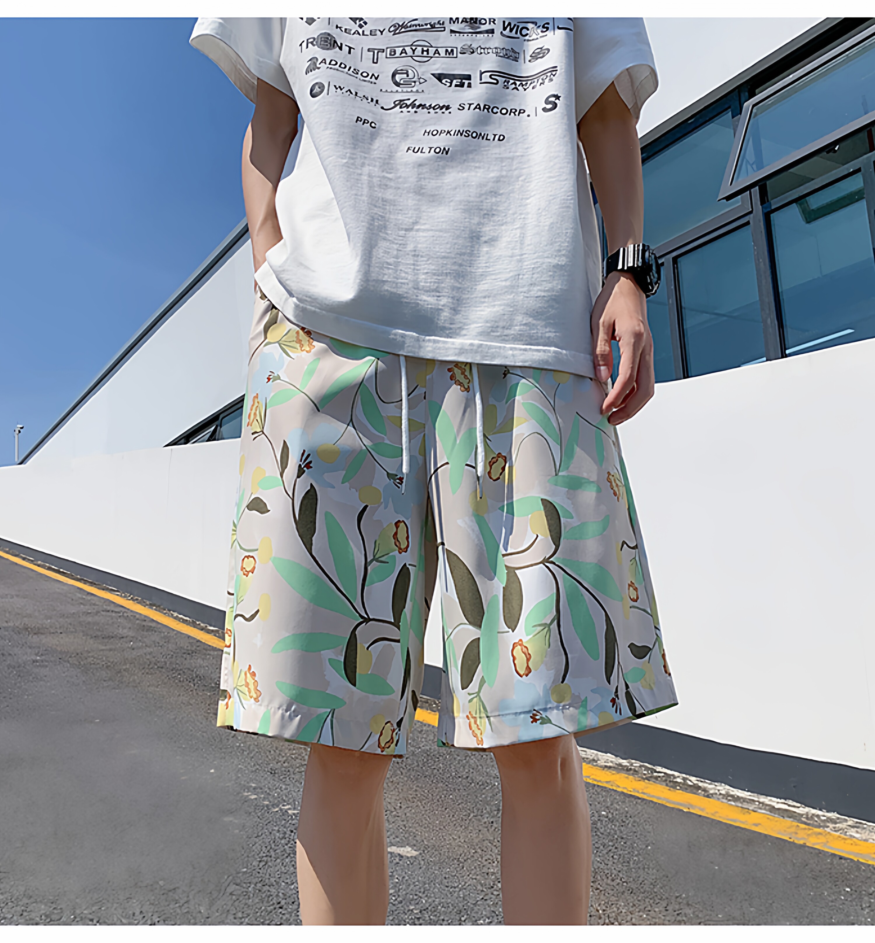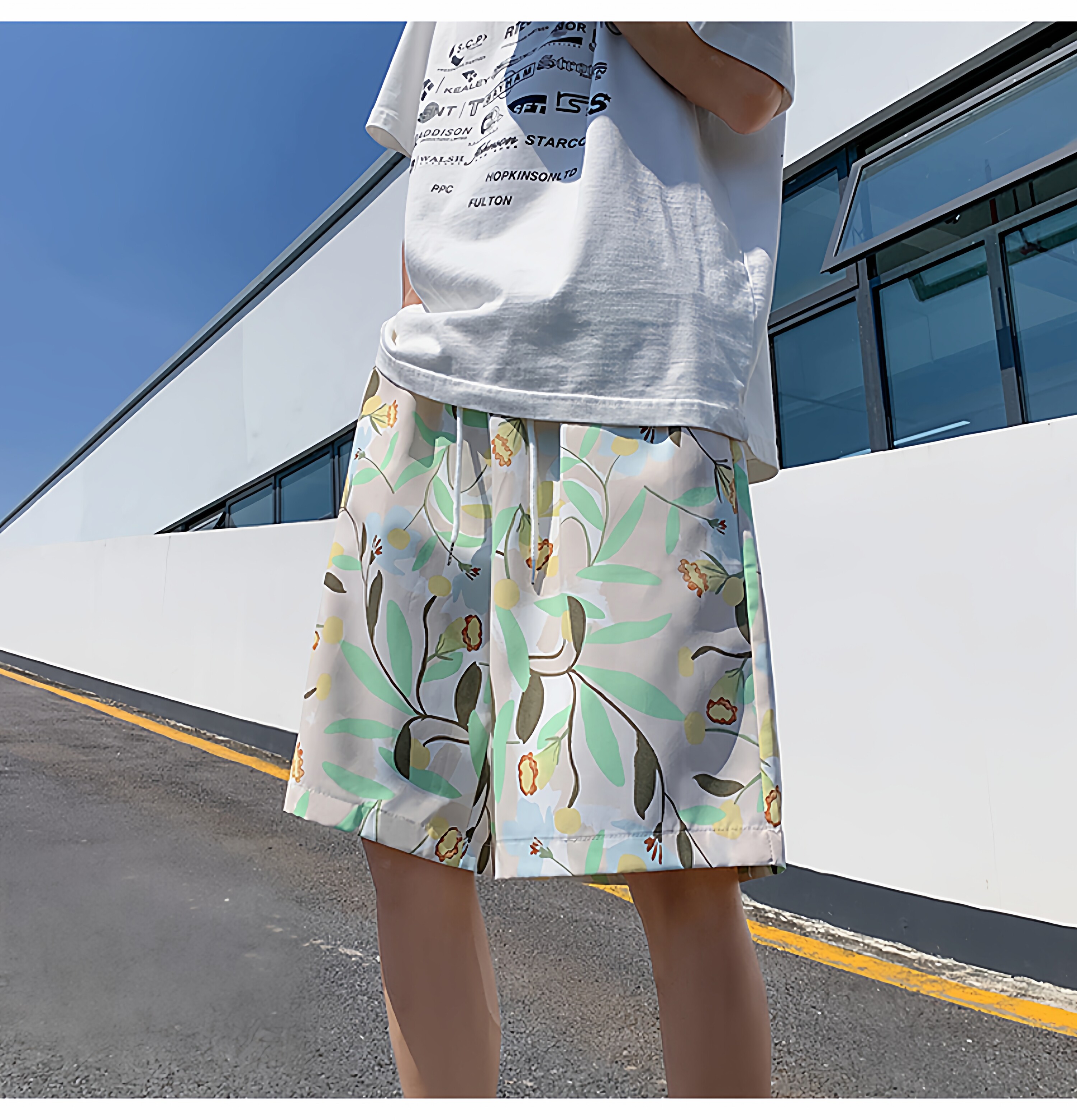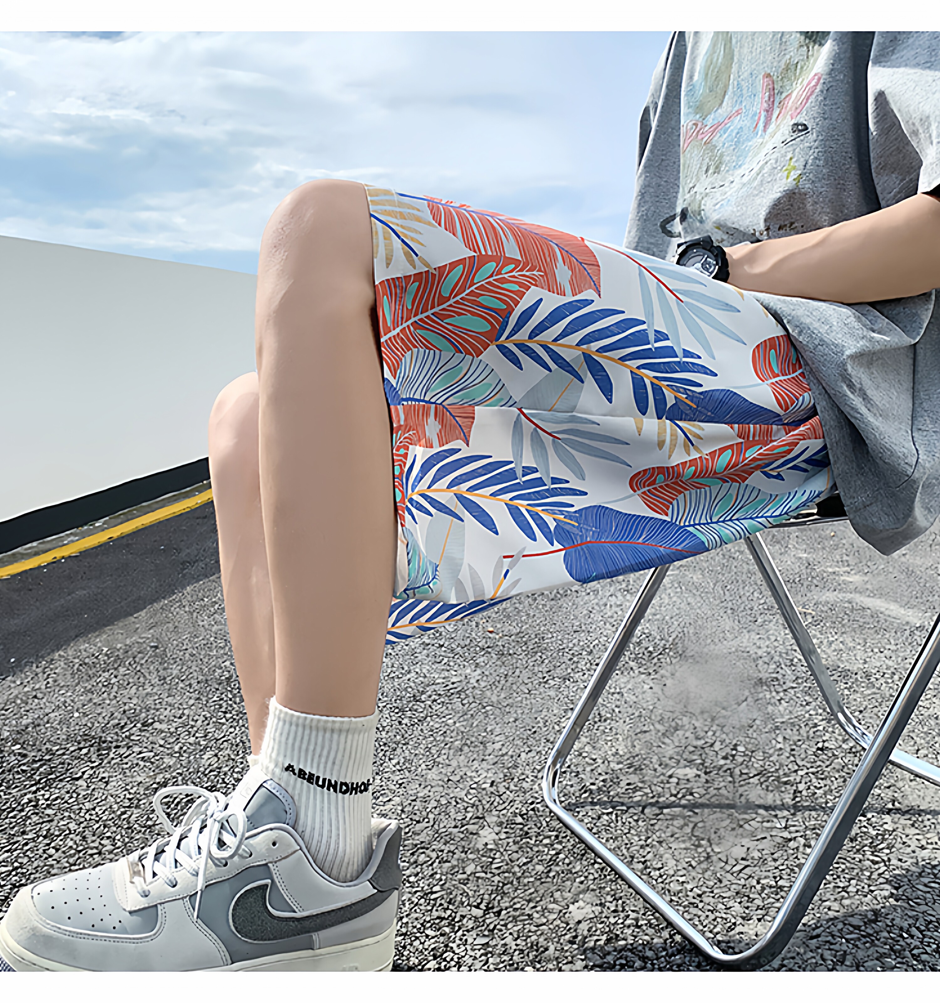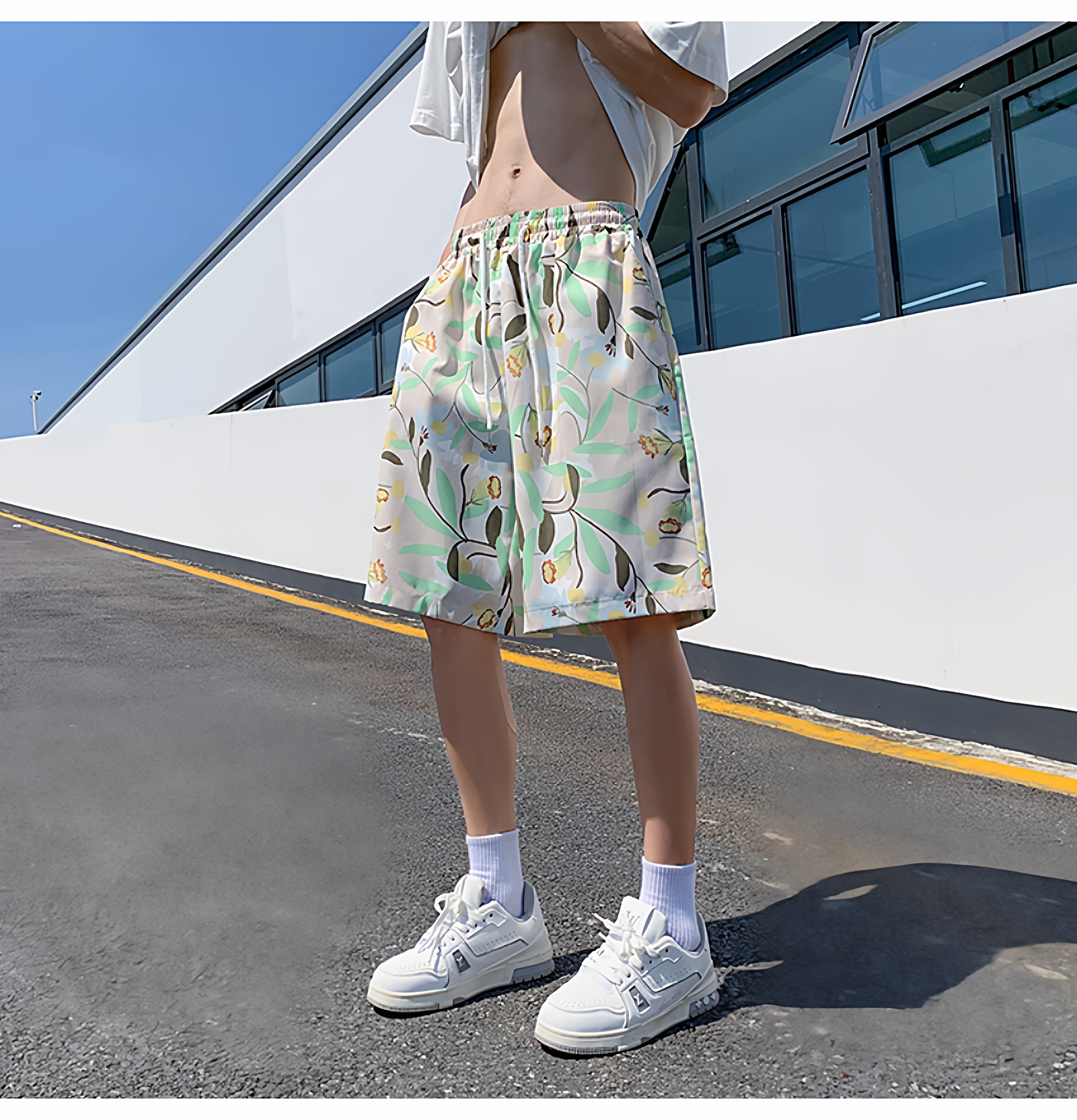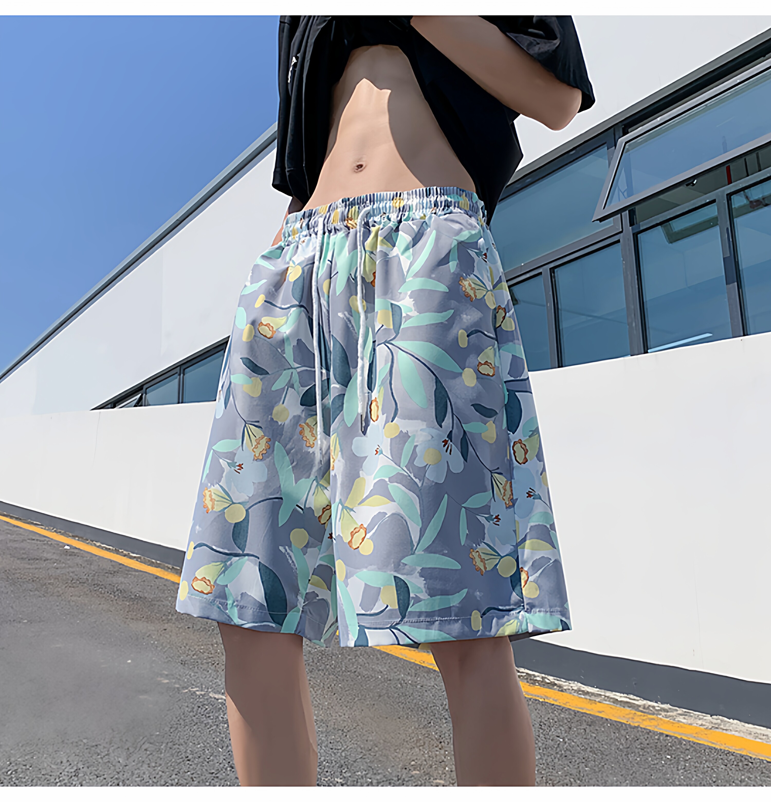沙灘短褲男夏季薄款速乾泳褲潮流印花大褲衩寬鬆睡褲休閒五分褲子