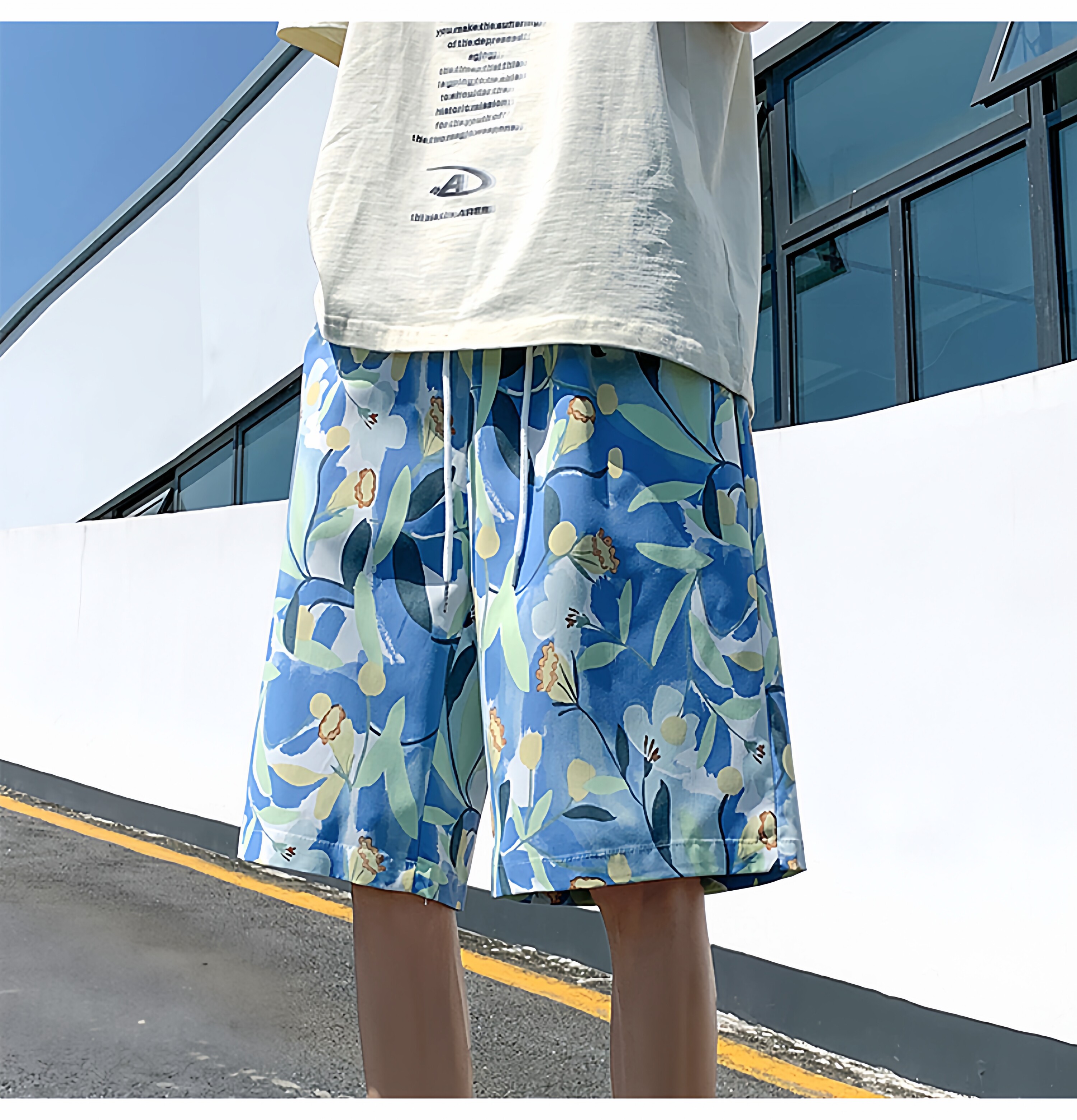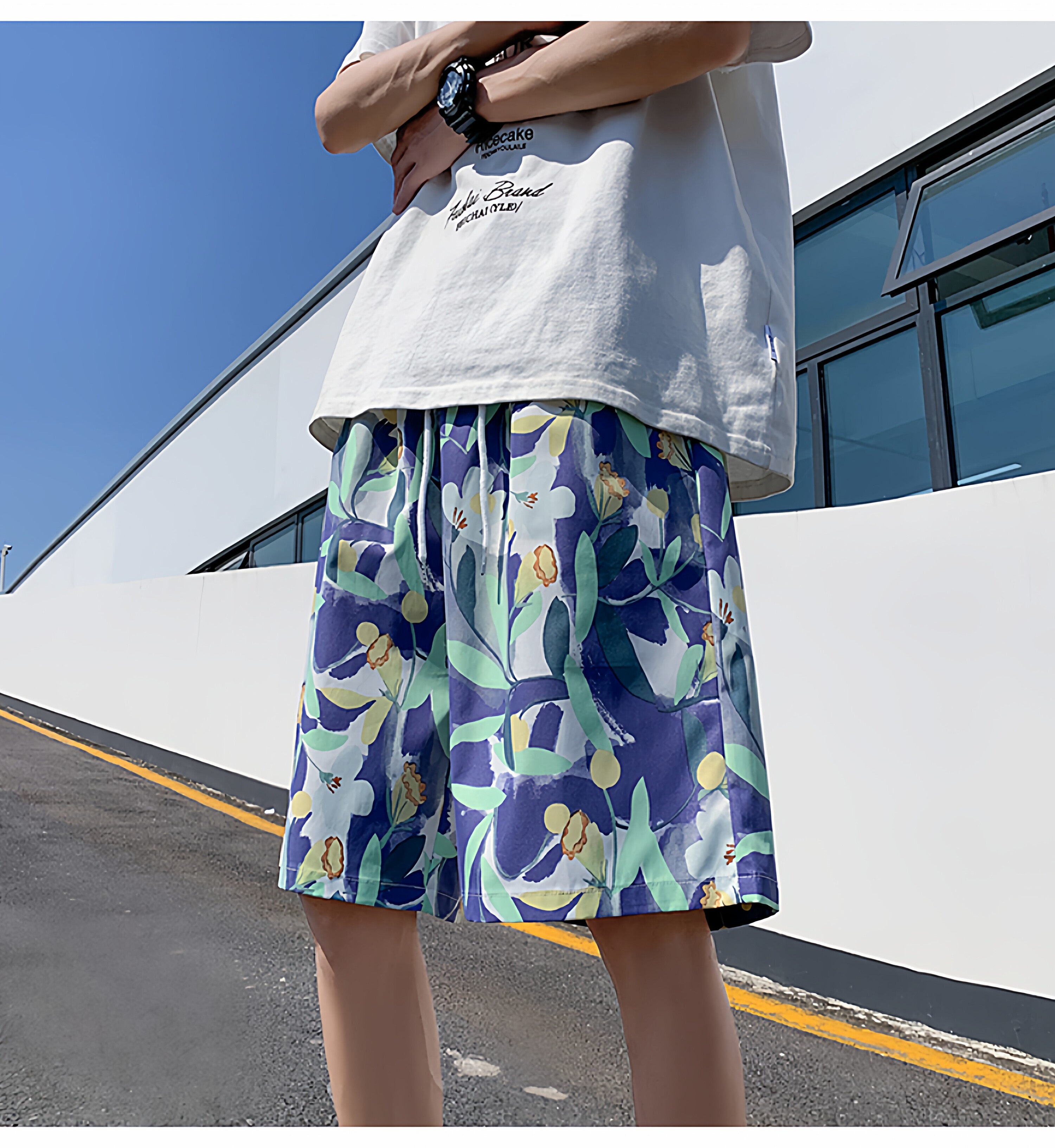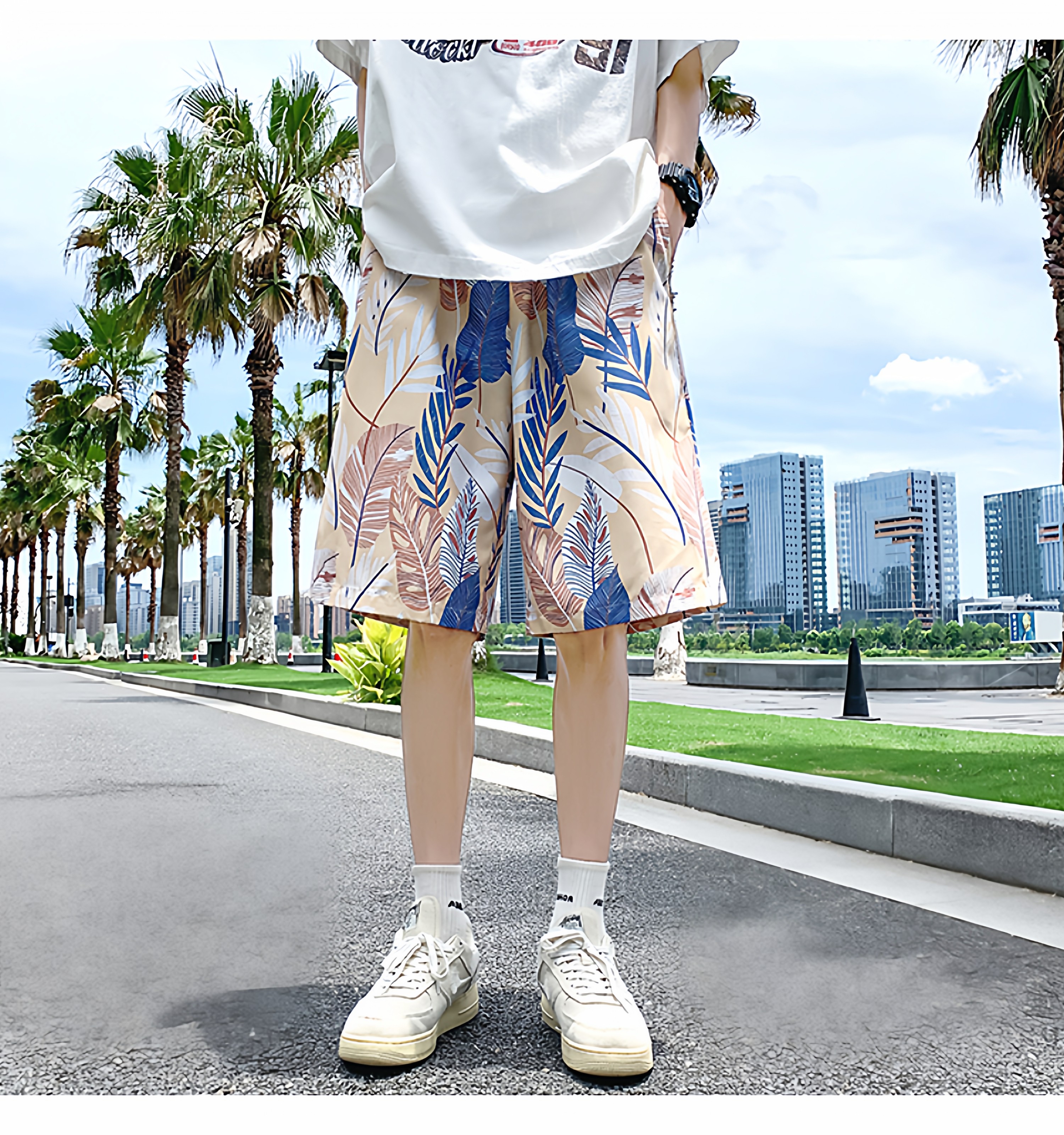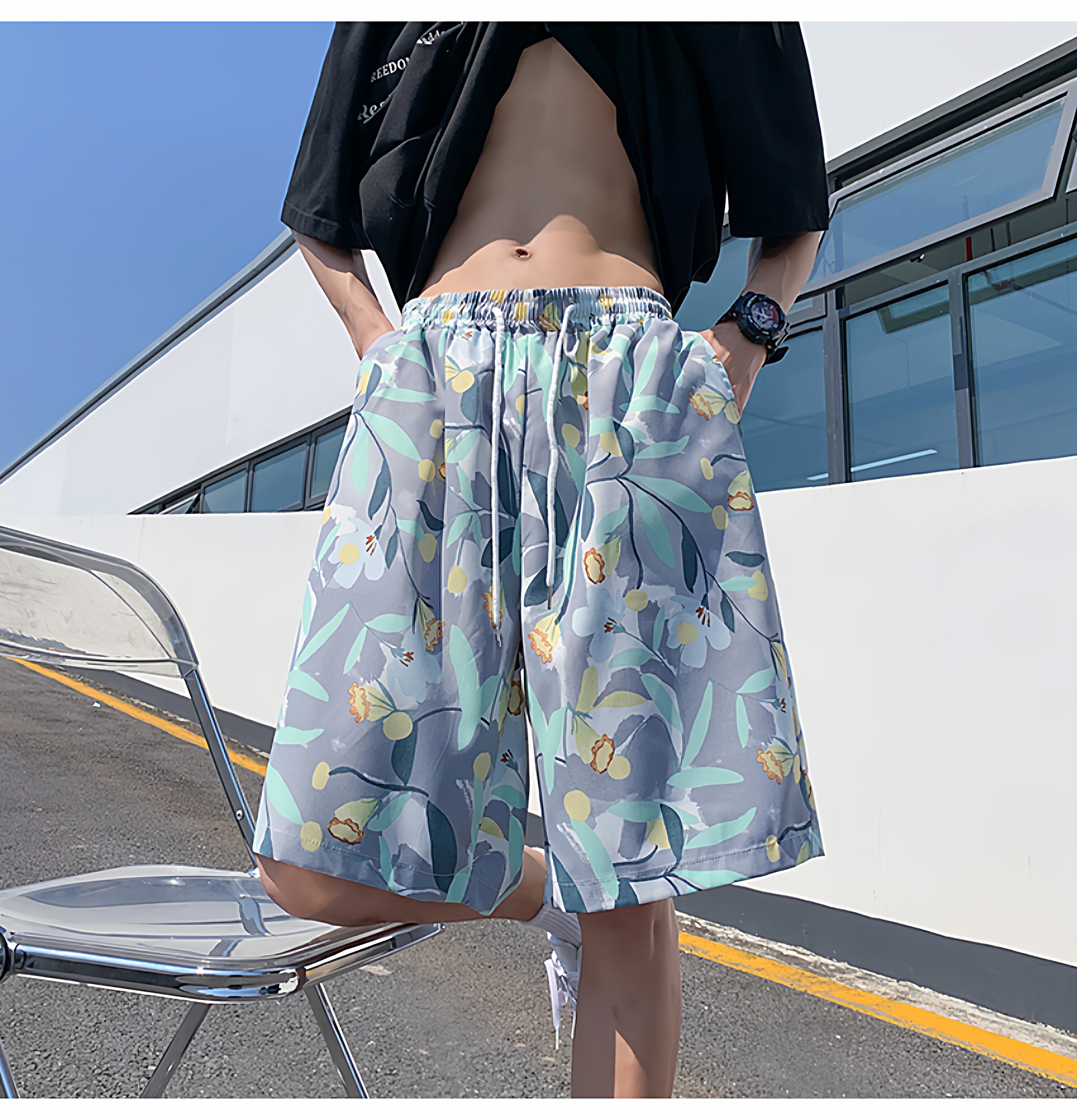 沙灘短褲男夏季薄款速乾泳褲潮流印花大褲衩寬鬆睡褲休閒五分褲子