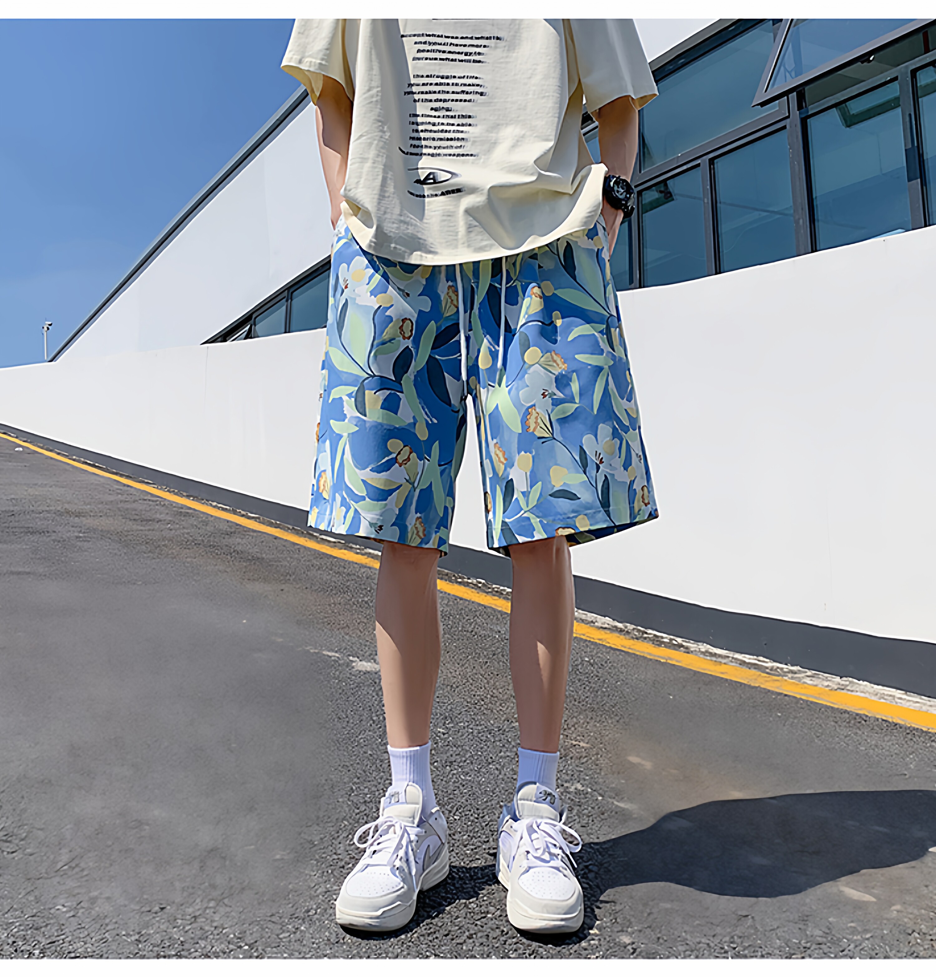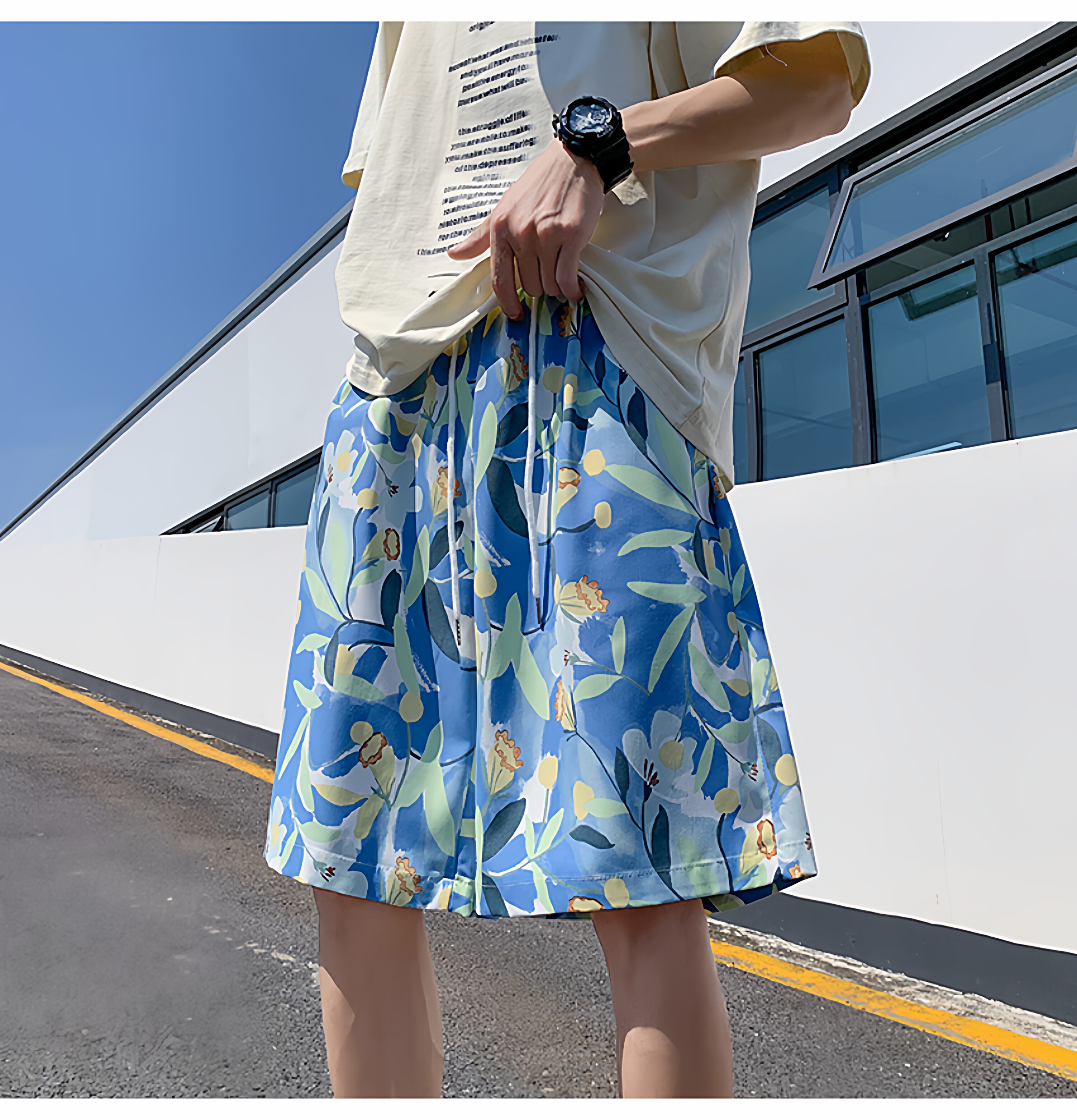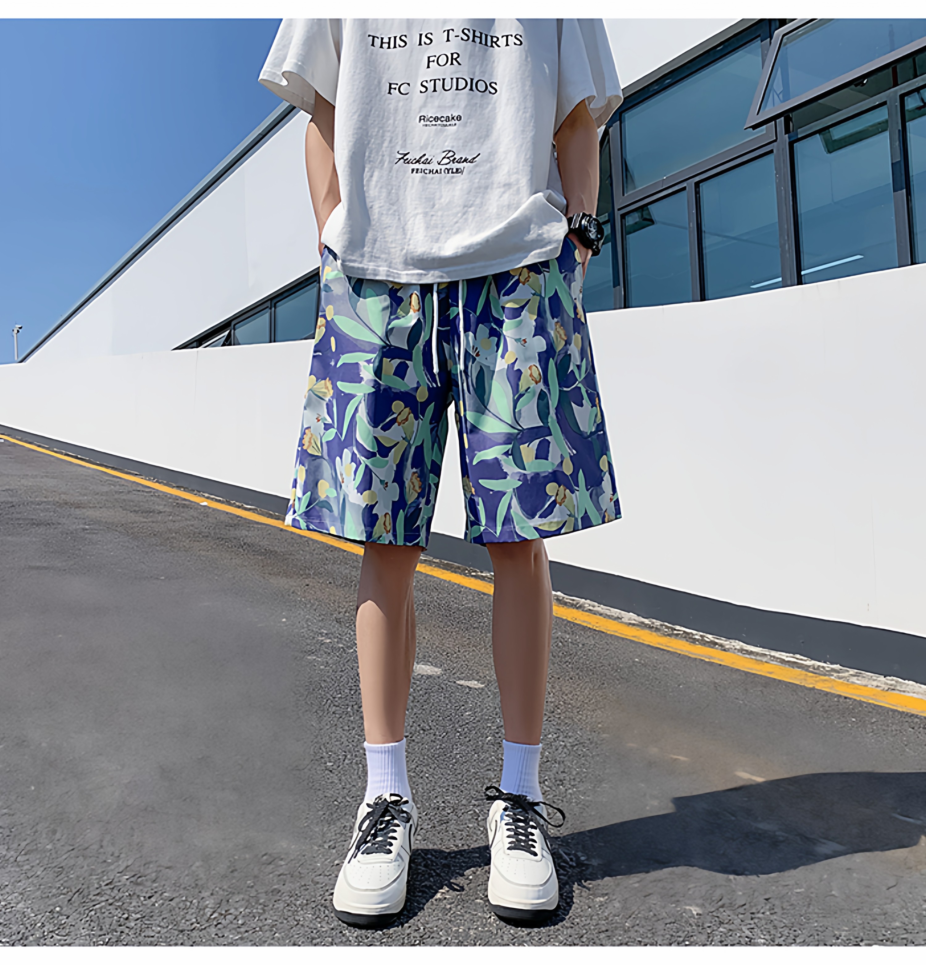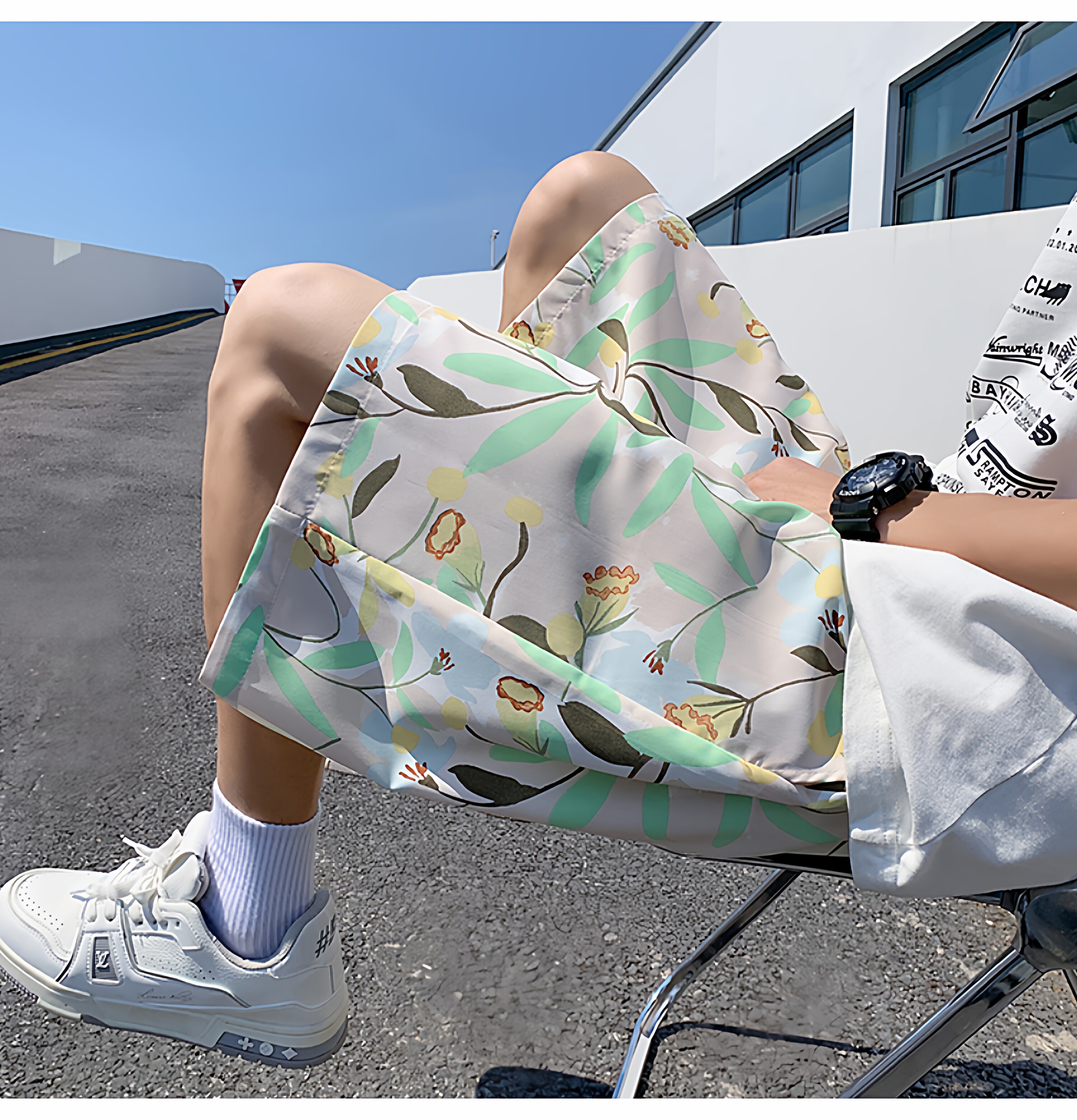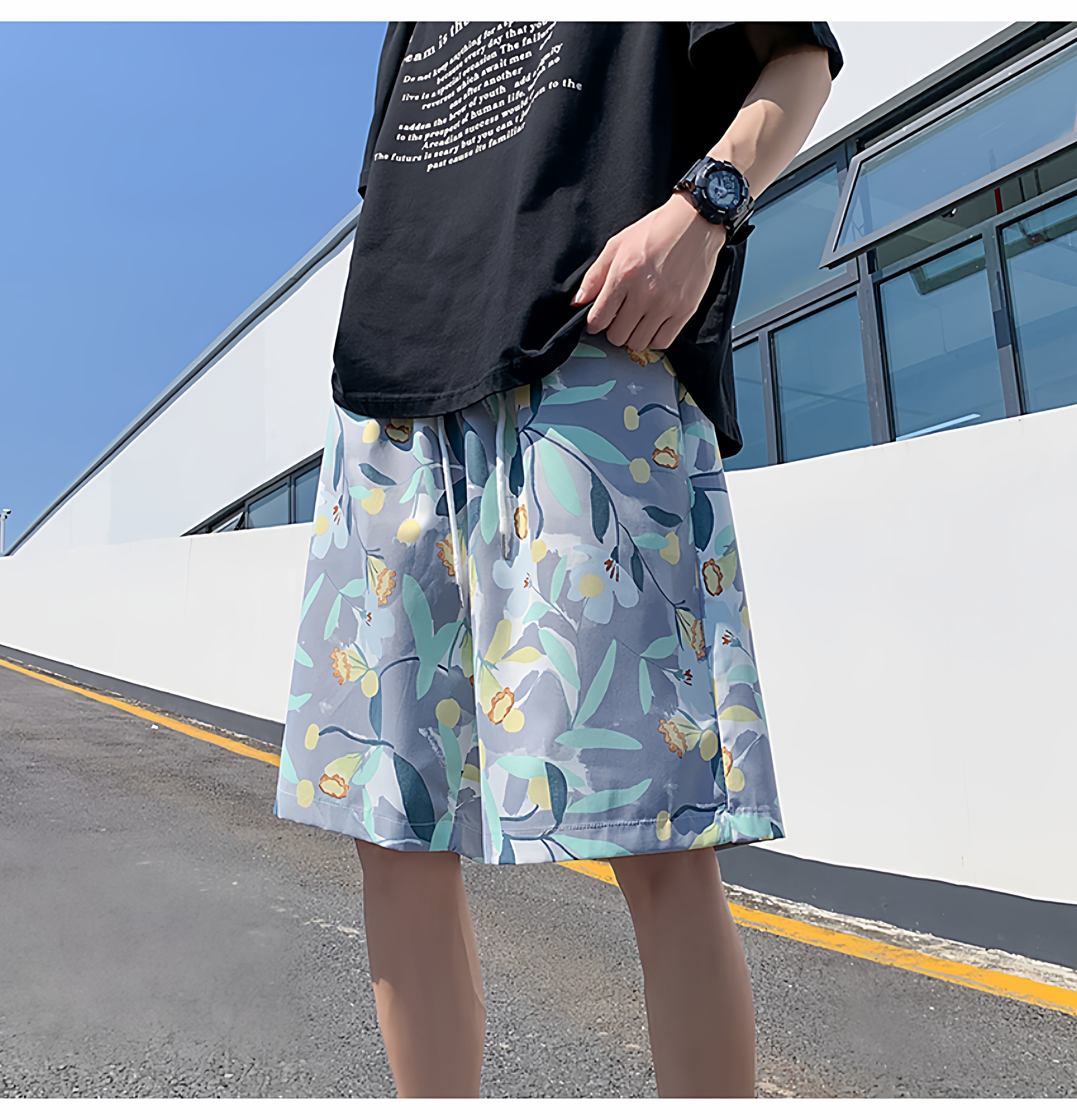 沙灘短褲男夏季薄款速乾泳褲潮流印花大褲衩寬鬆睡褲休閒五分褲子