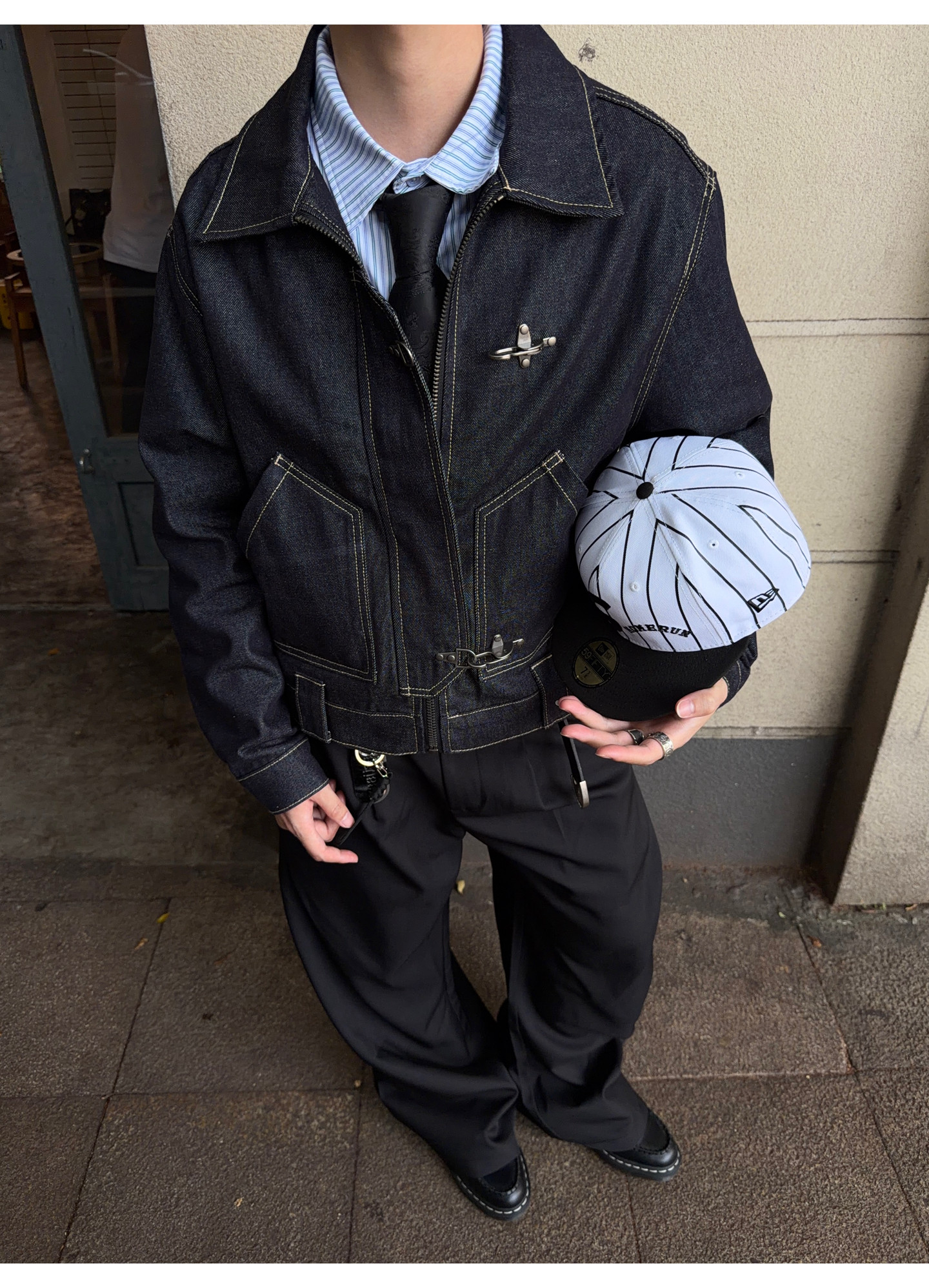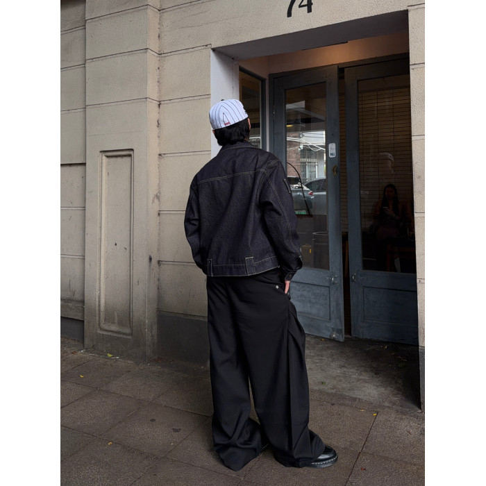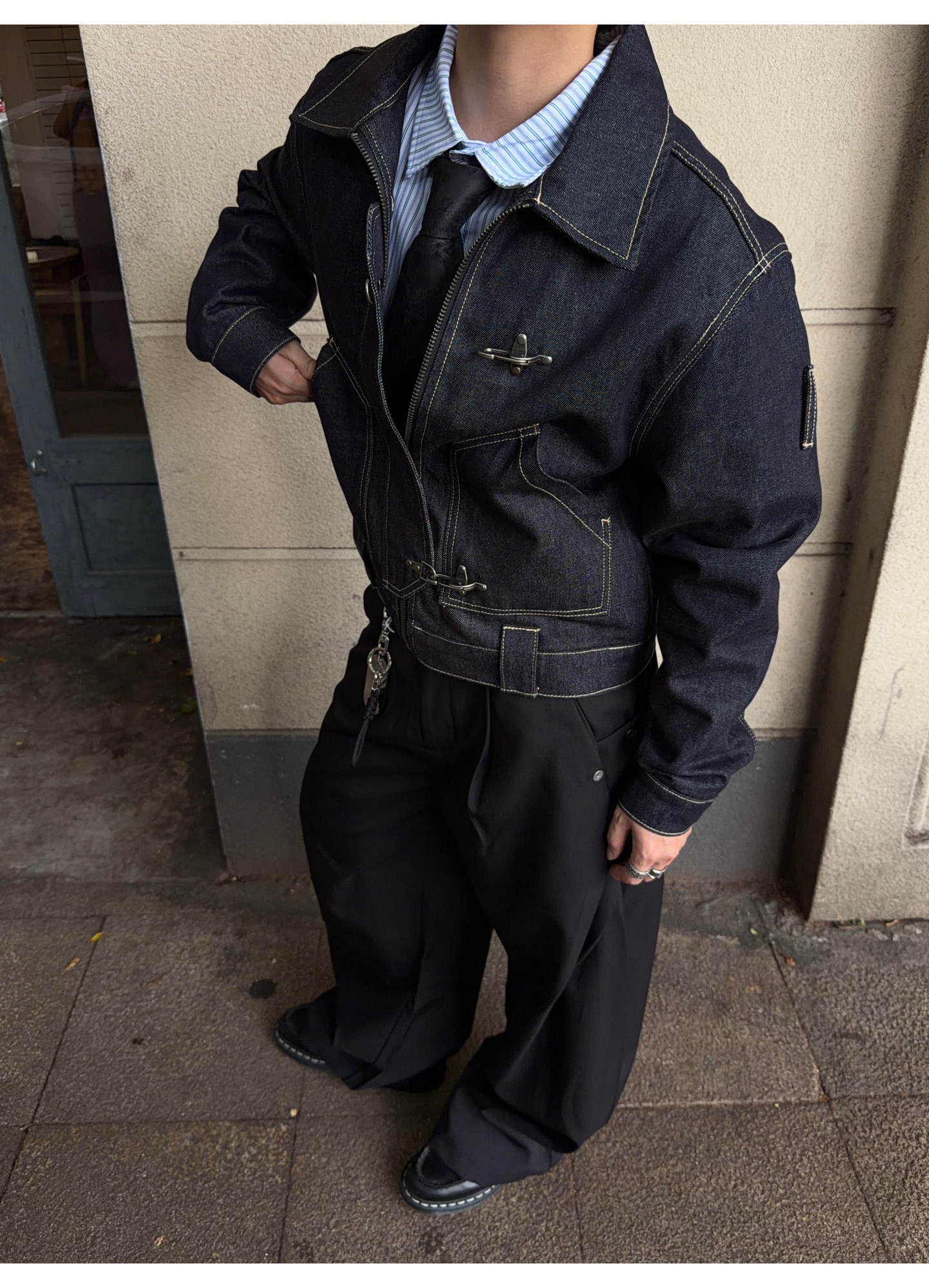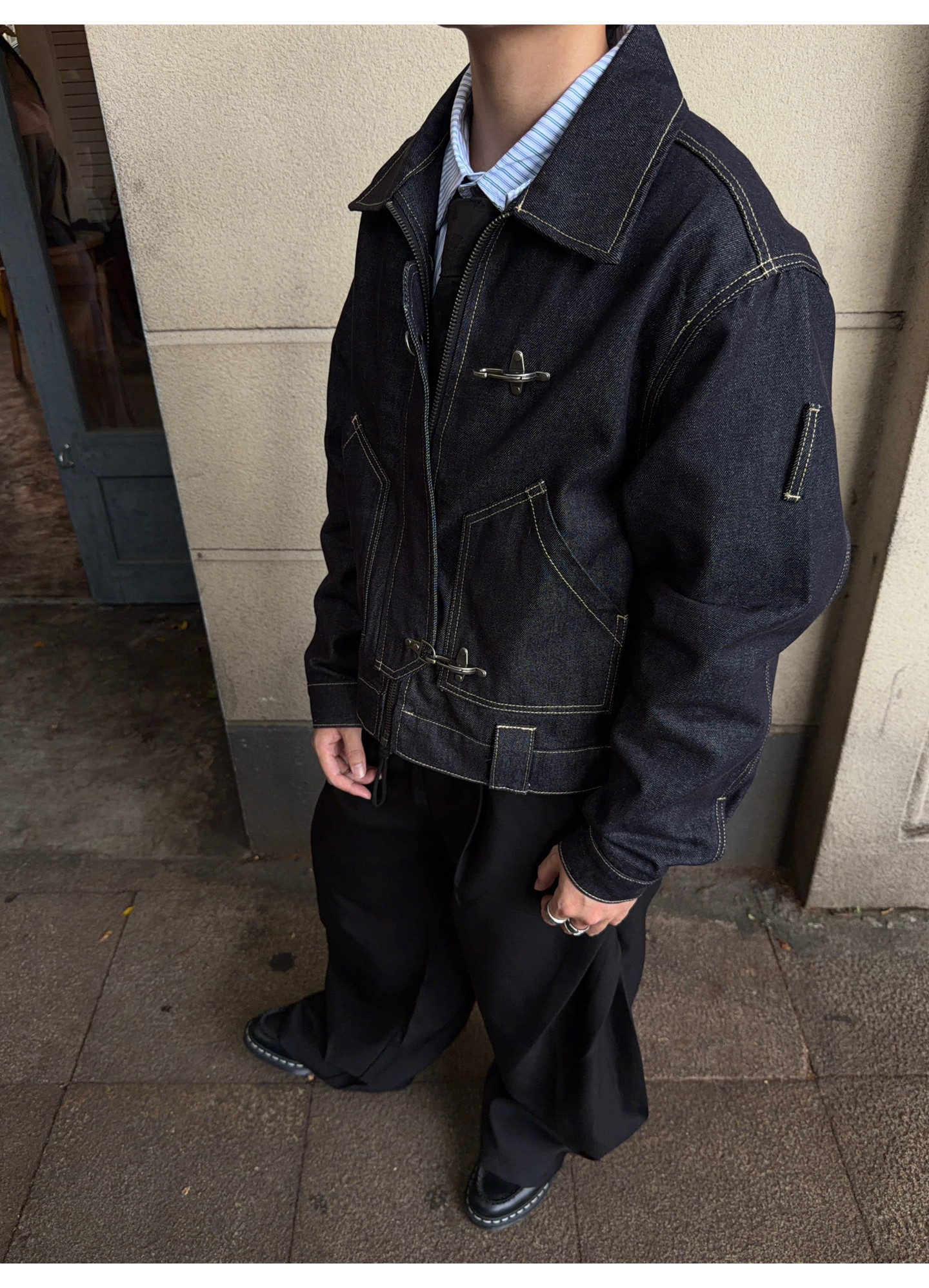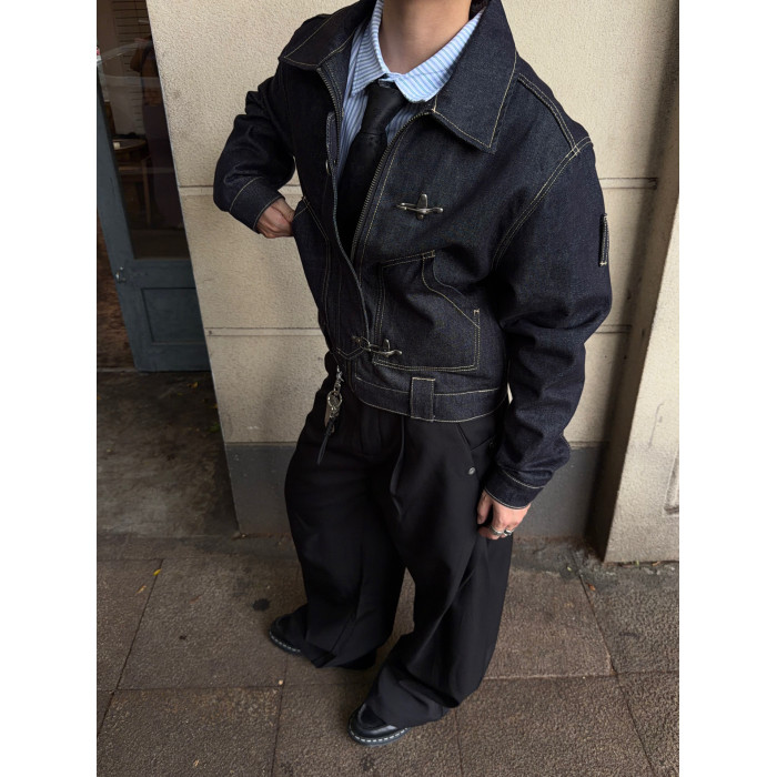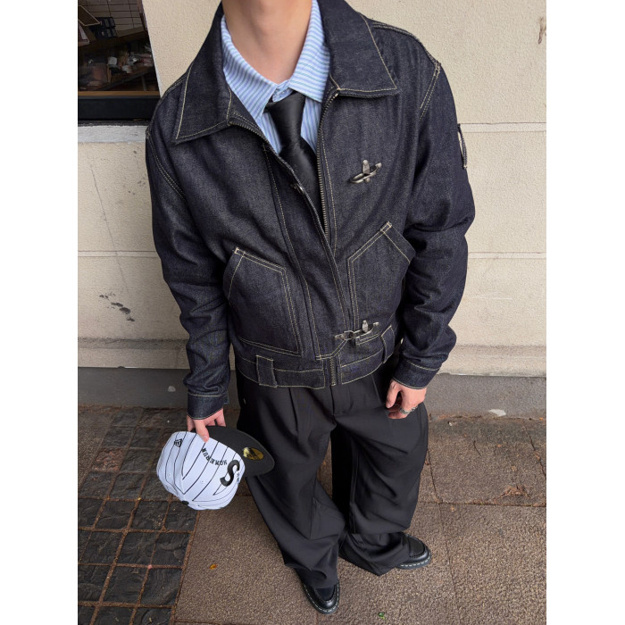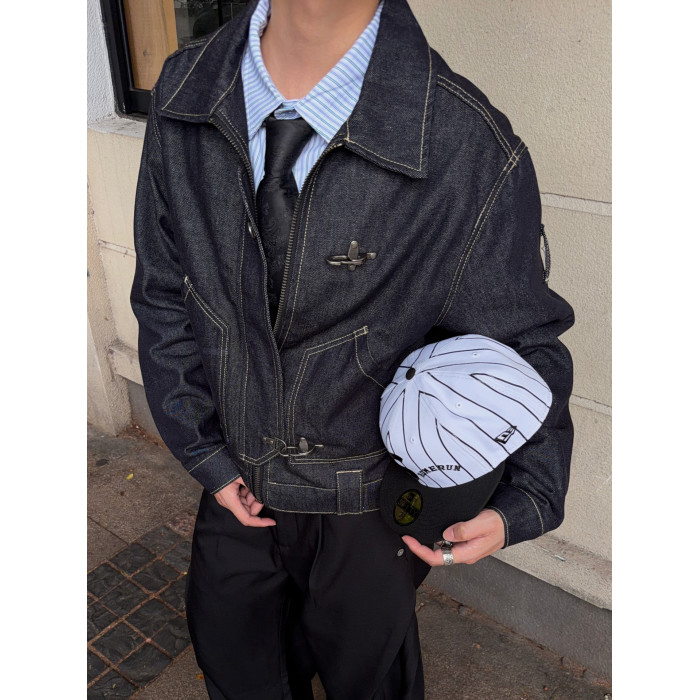 FATEEGG美式復古原色牛仔夾克男女老錢風短款寬鬆飛機釦休閒外套