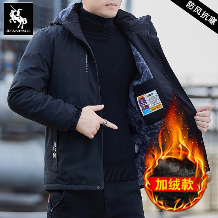 男士棉衣秋冬季新款加絨保暖可拆卸帽寬鬆外套時尚潮流百搭男夾克