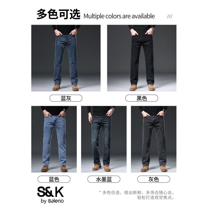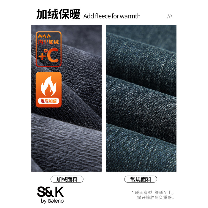班尼路SK高級牛仔褲男秋冬季2025新款加絨男裝直筒寬鬆休閒褲子YS