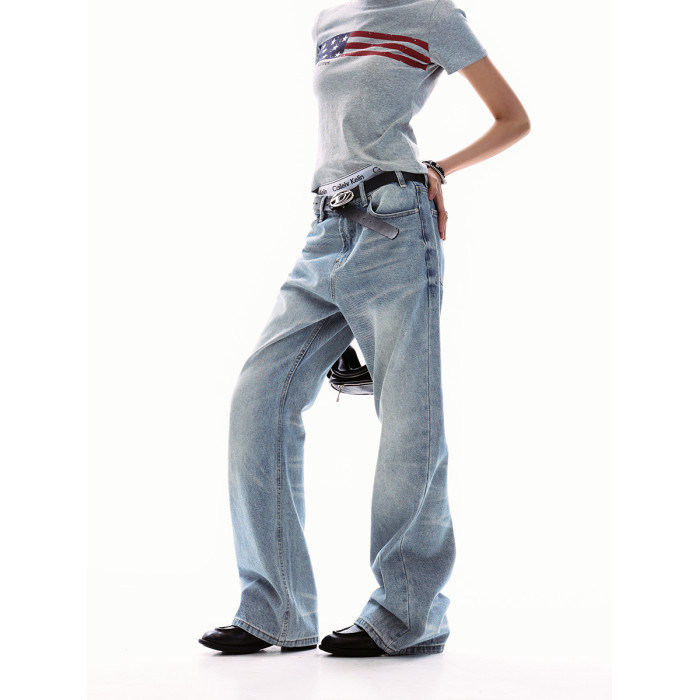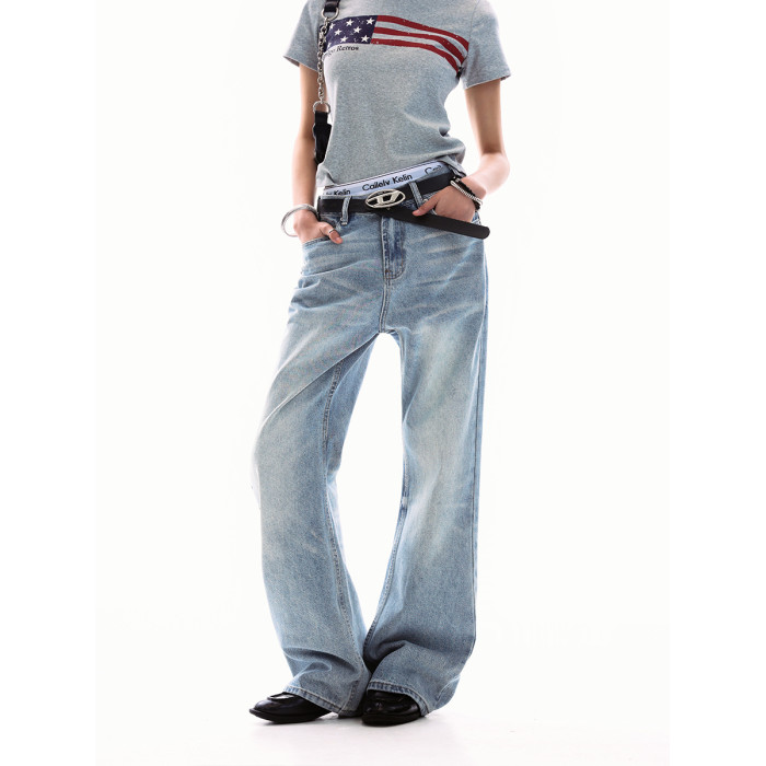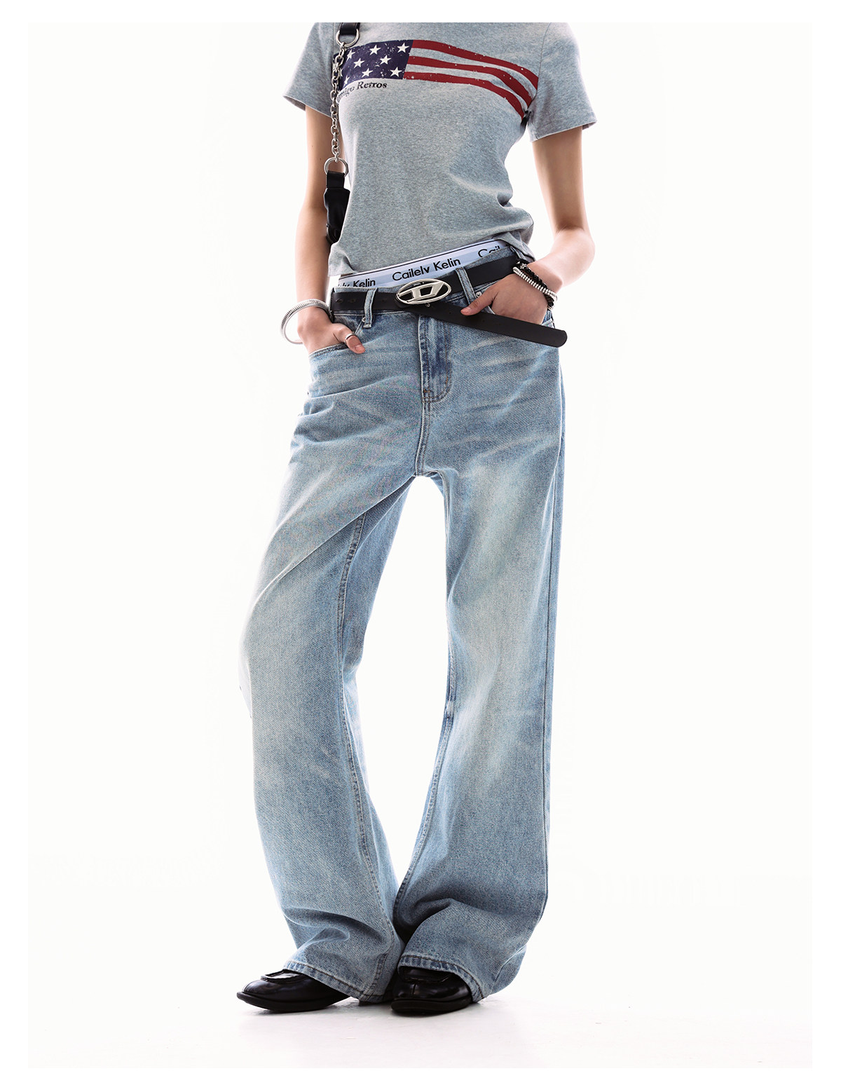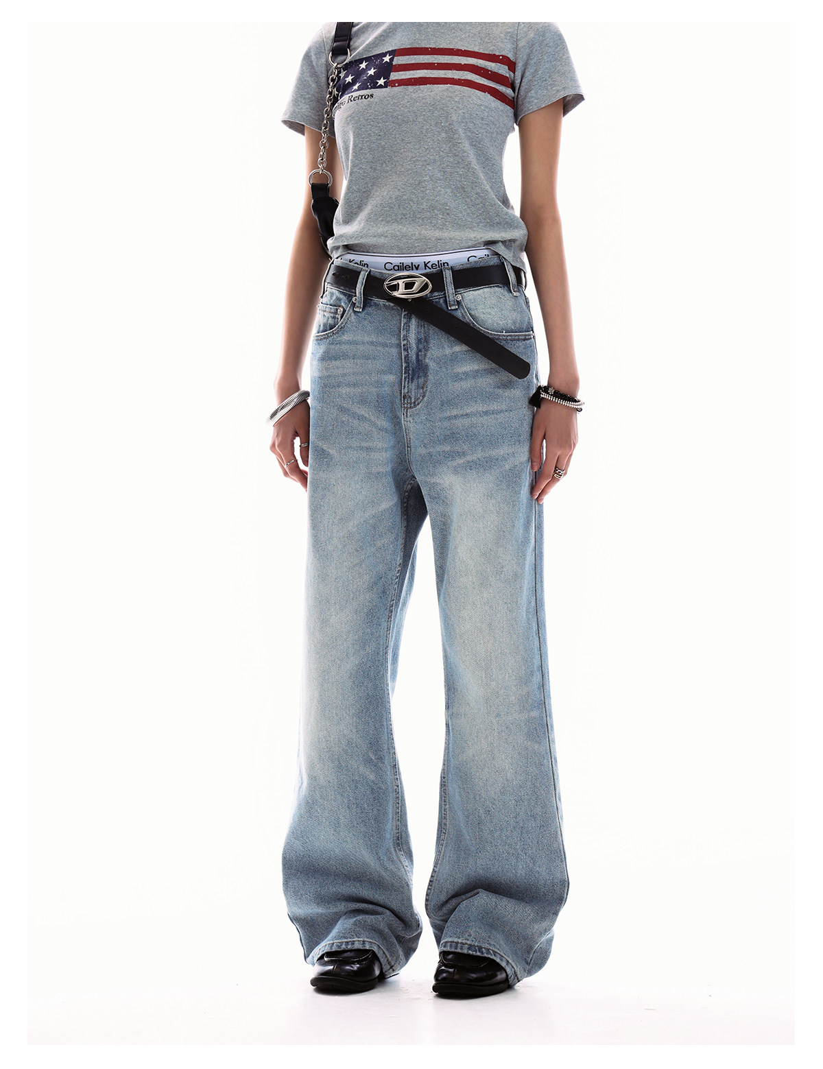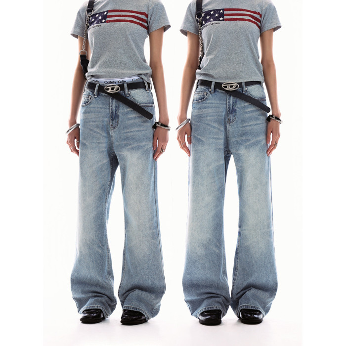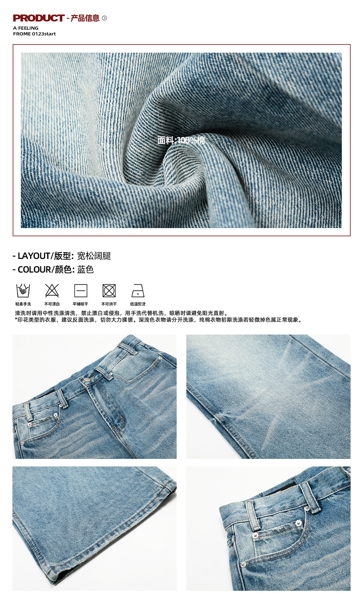 0123Start 水洗cleanfit牛仔褲男女寬鬆美式復古潮牌休閒直筒褲子