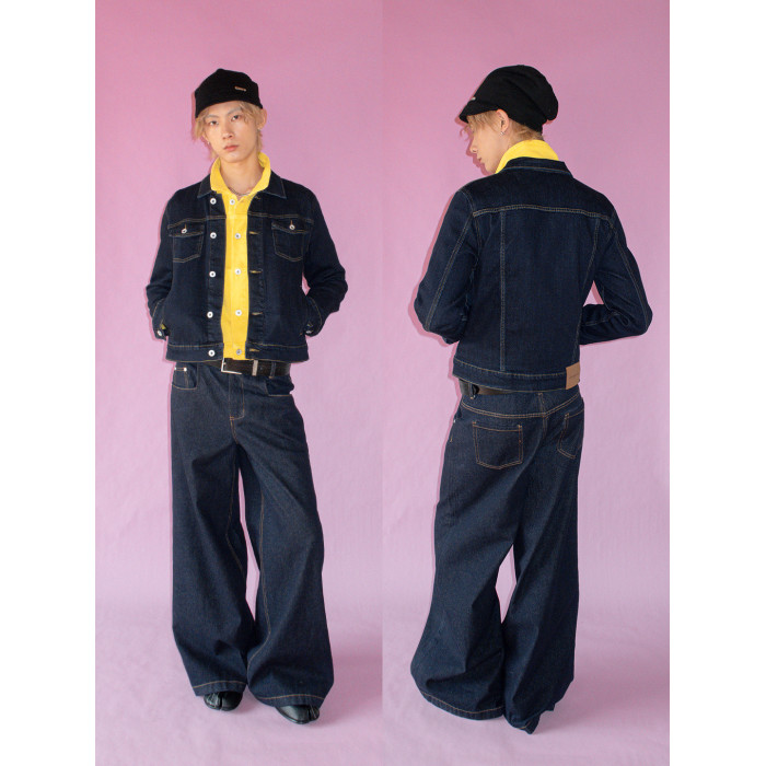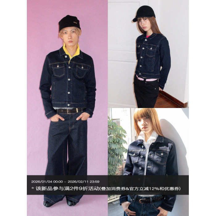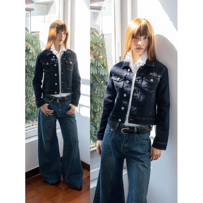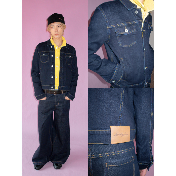 FUNKYFUN 原色牛仔小版型短款開衫繙領夾克外套