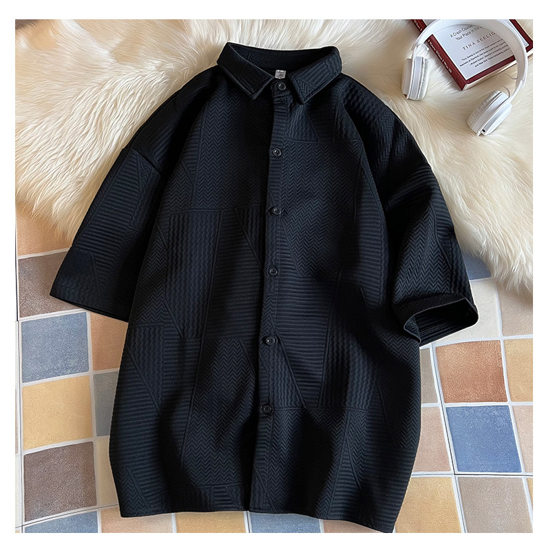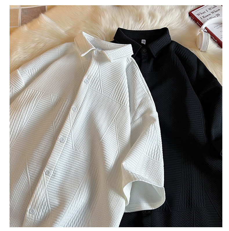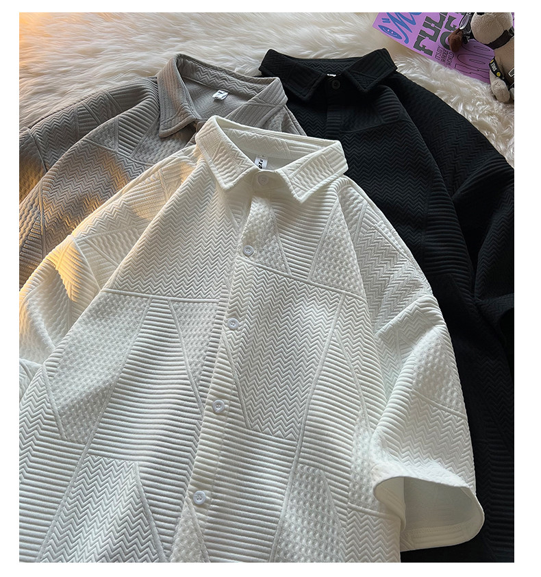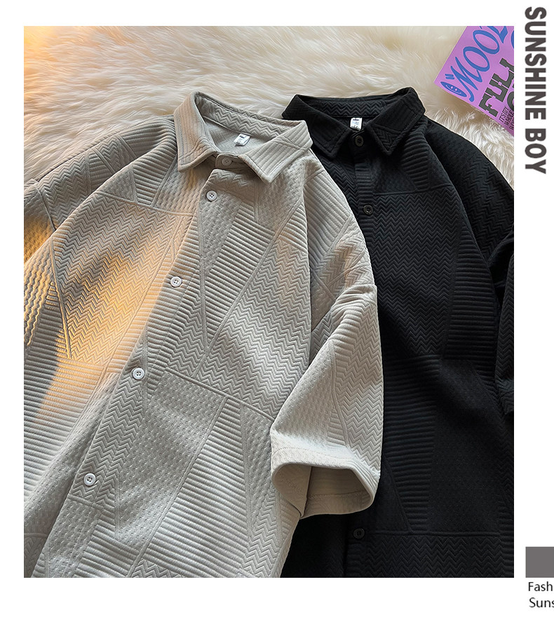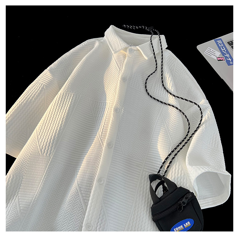 高街復古重磅提花短袖襯衫男潮牌加肥加大碼胖人簡約半袖襯衣外套