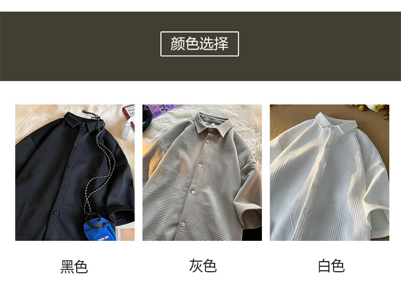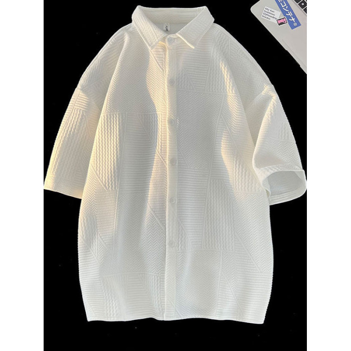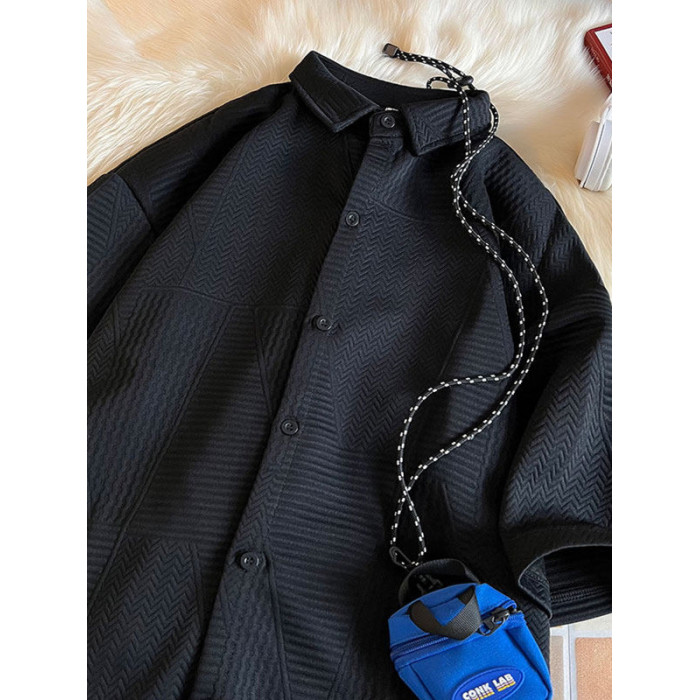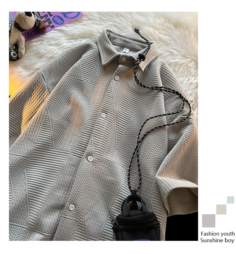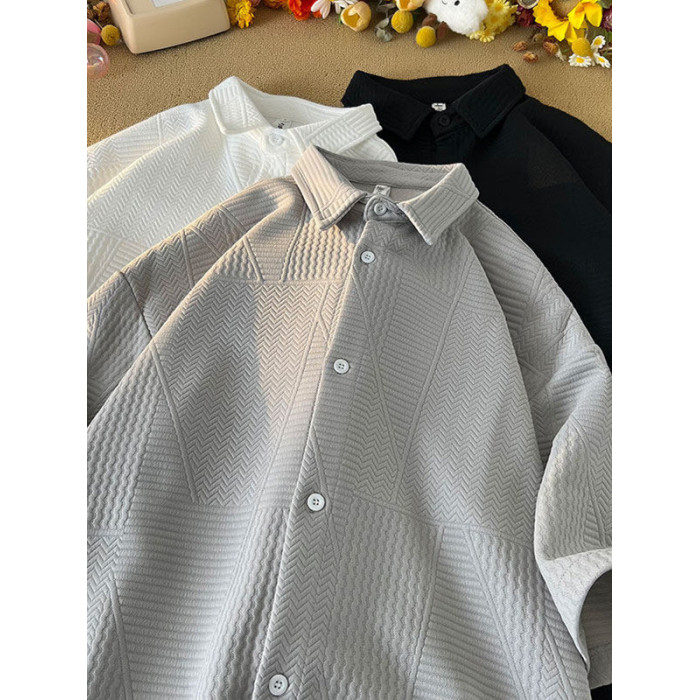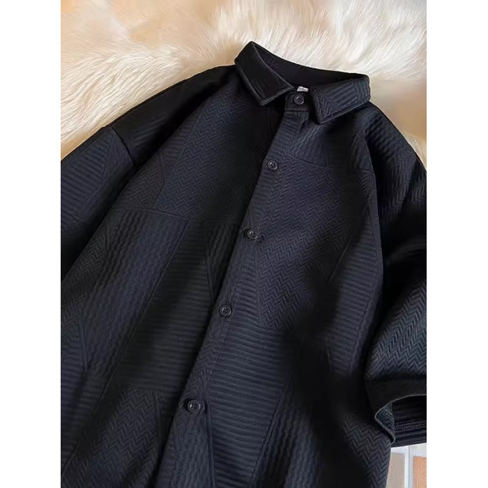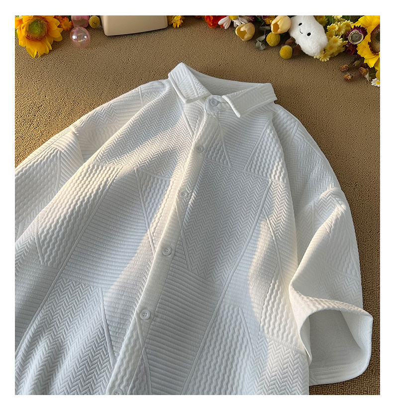 高街復古重磅提花短袖襯衫男潮牌加肥加大碼胖人簡約半袖襯衣外套