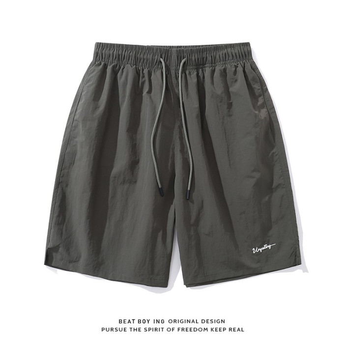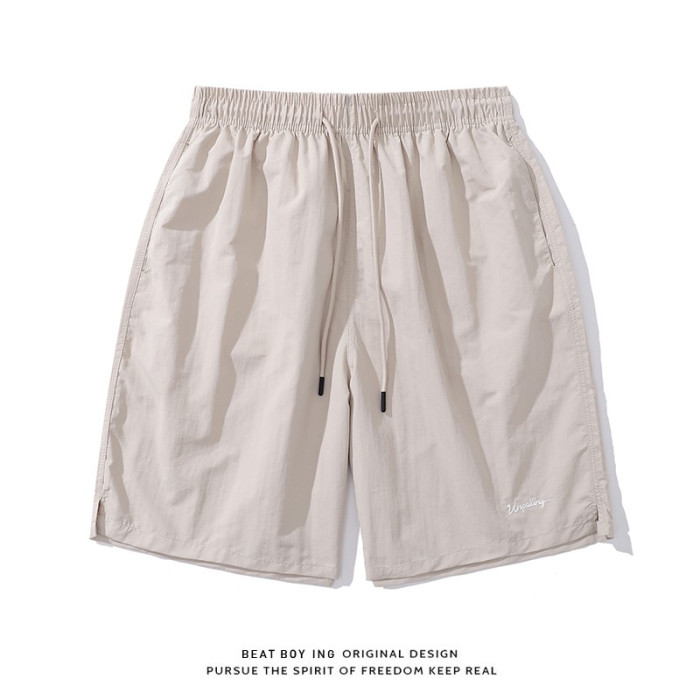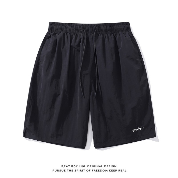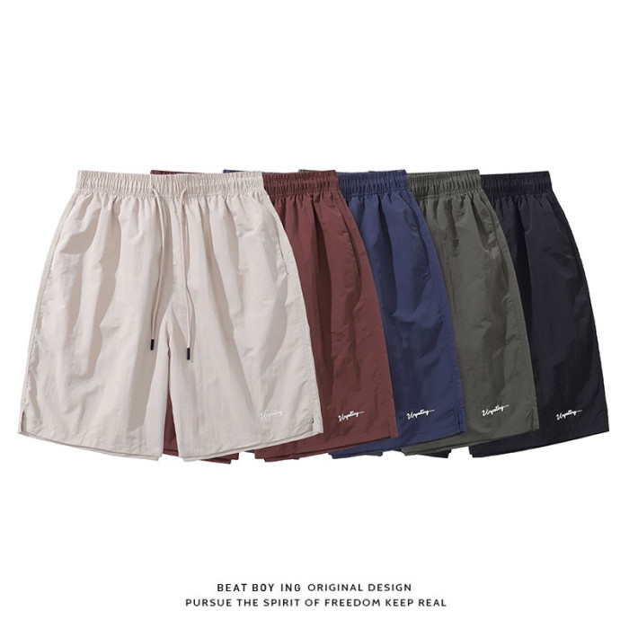 美式夏季輕薄速乾純色百搭基礎廓形寬鬆運動休閒五分沙灘短褲男女