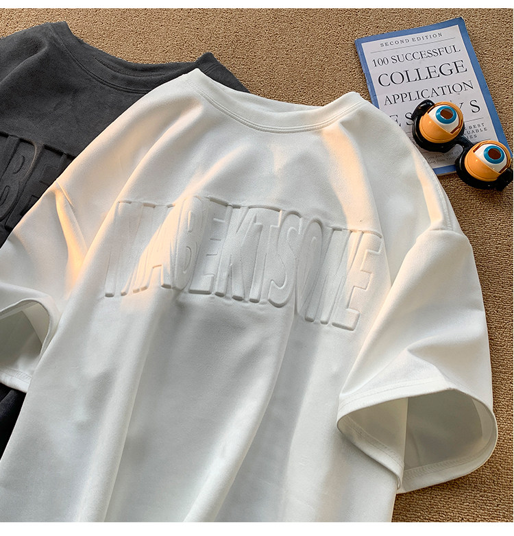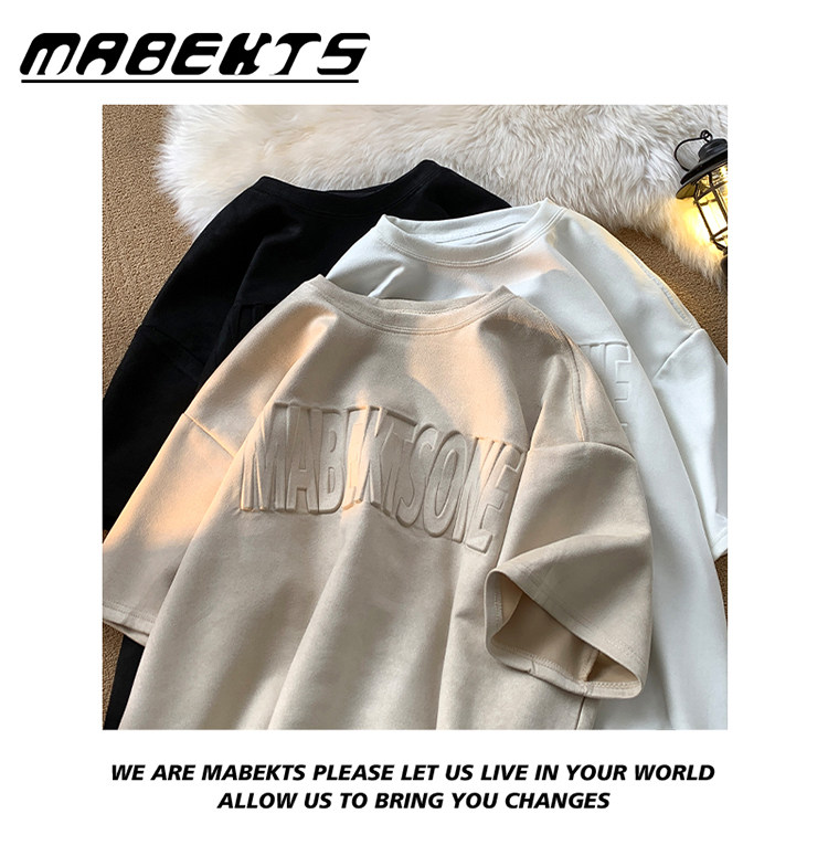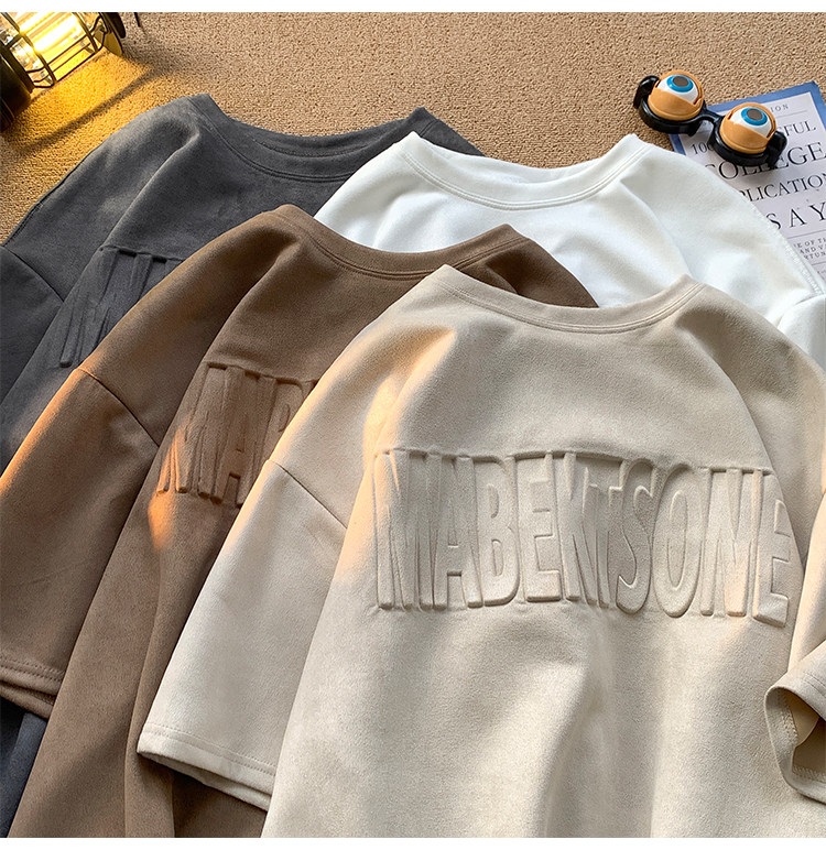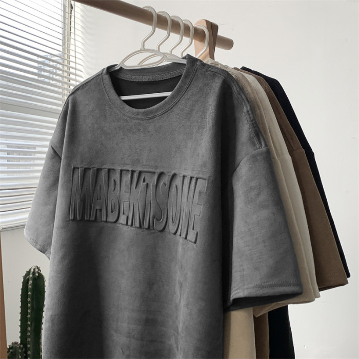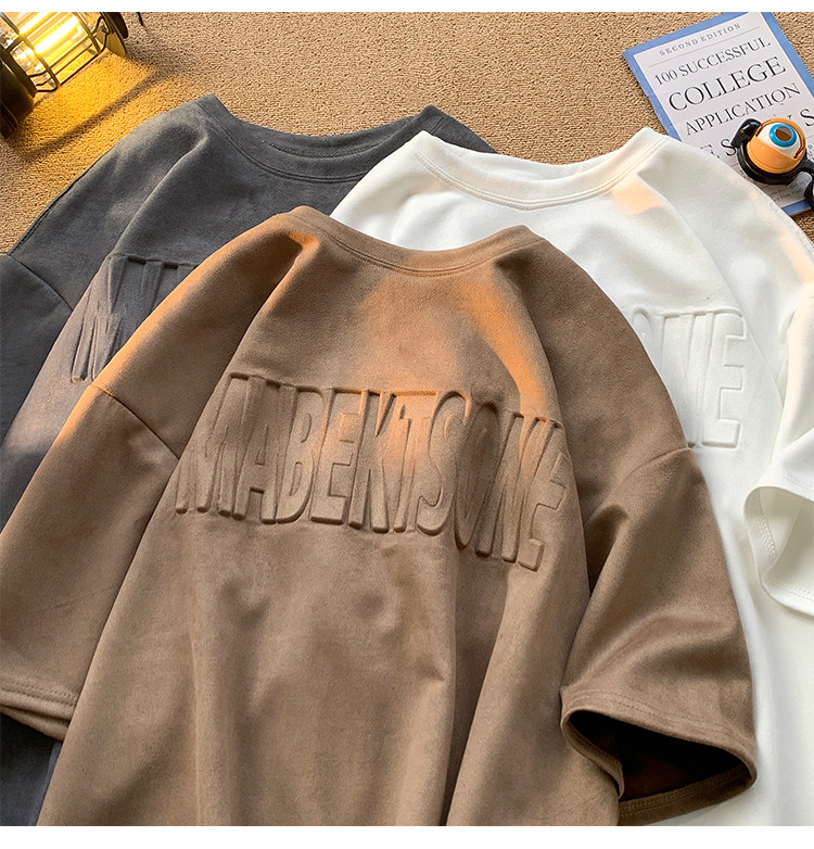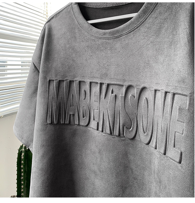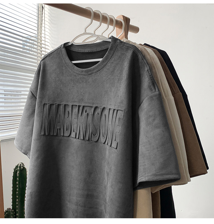 美式潮牌復古重磅320g麂皮絨短袖t恤男立體鋼母高街半袖體恤
