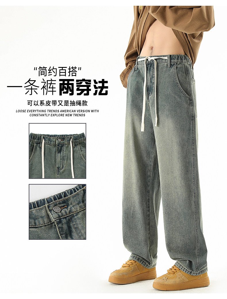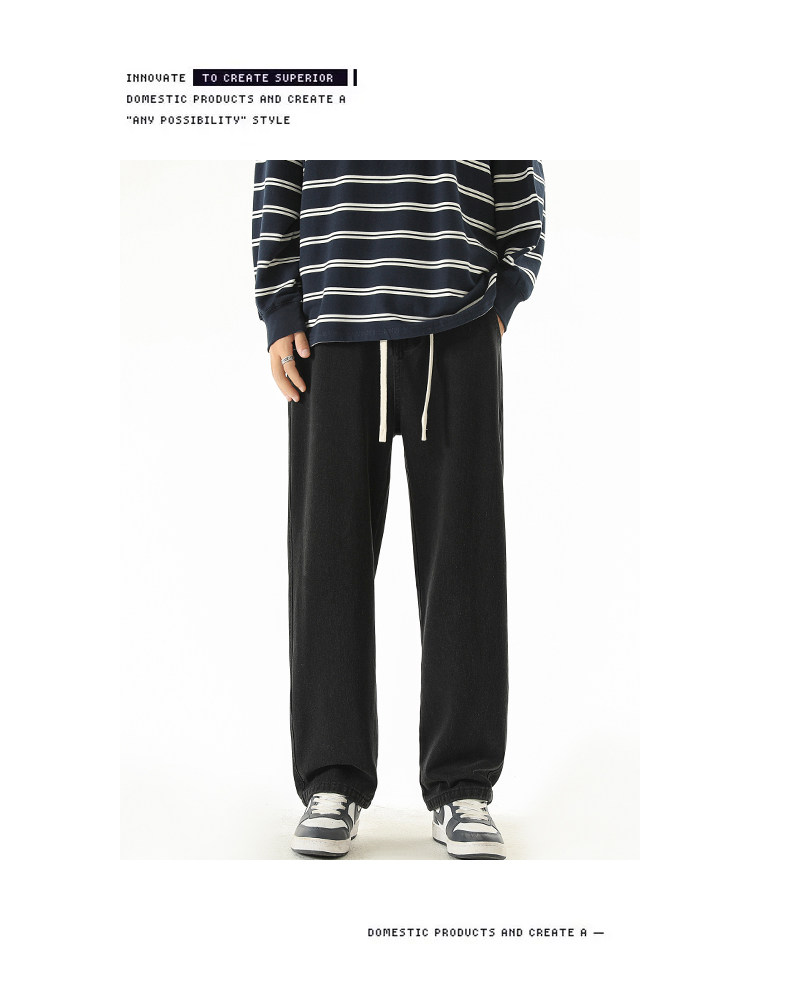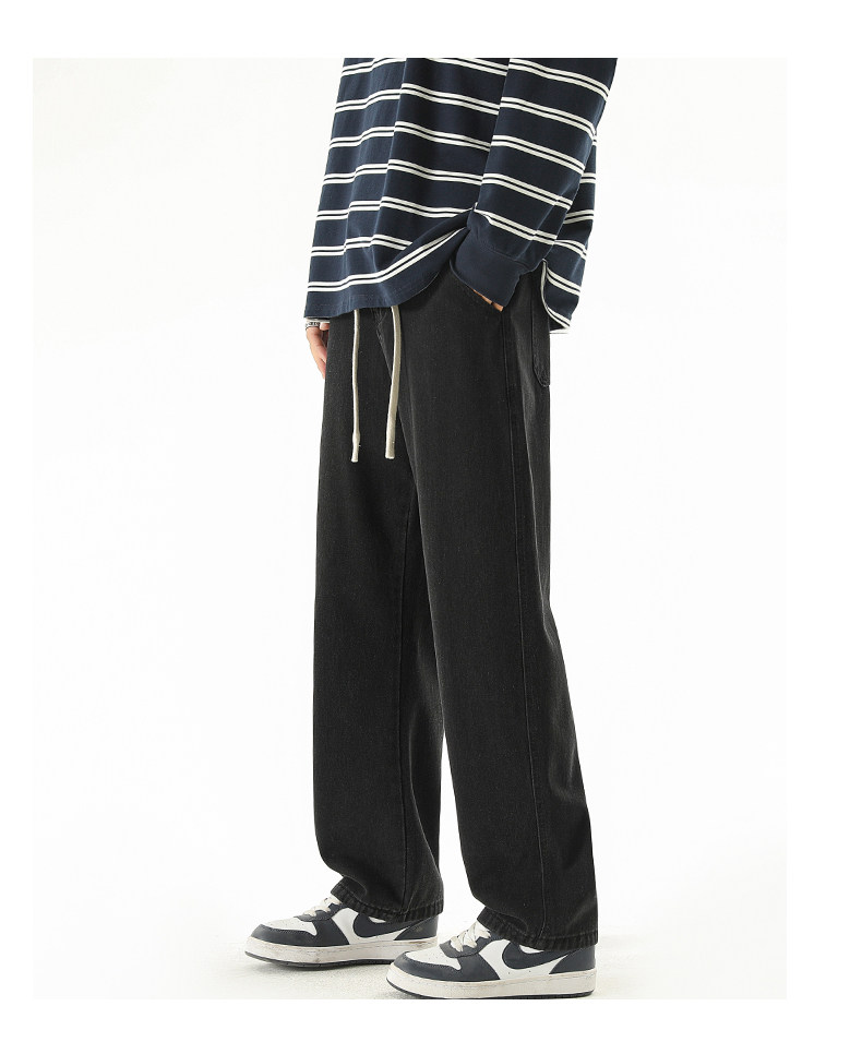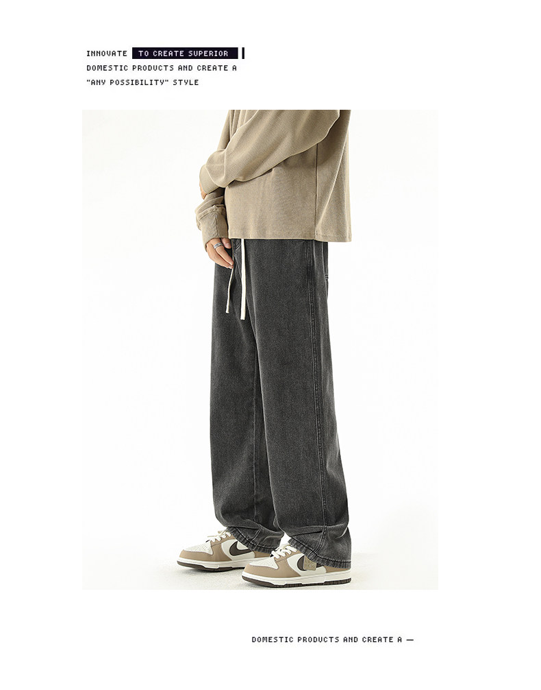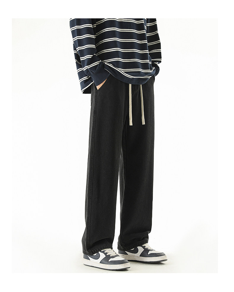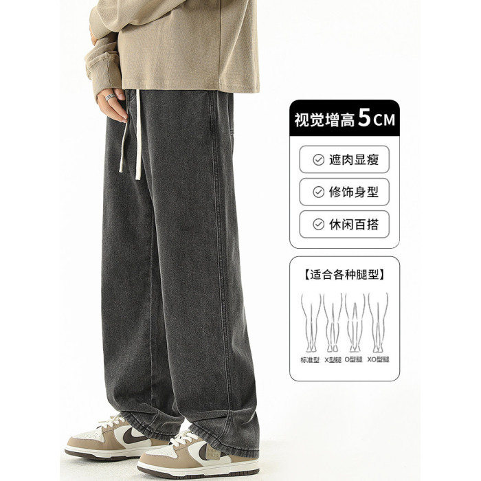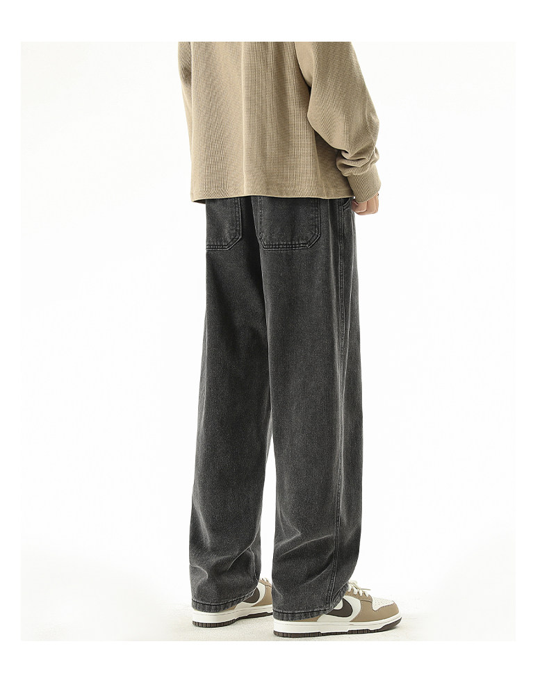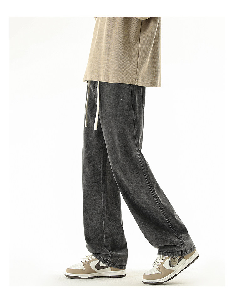 秋冬款牛仔褲男款直筒寬鬆拖地休閒濶腿褲2026新款男生黑色長褲子